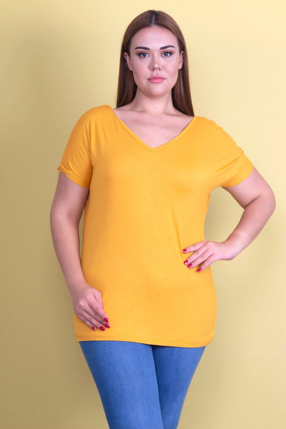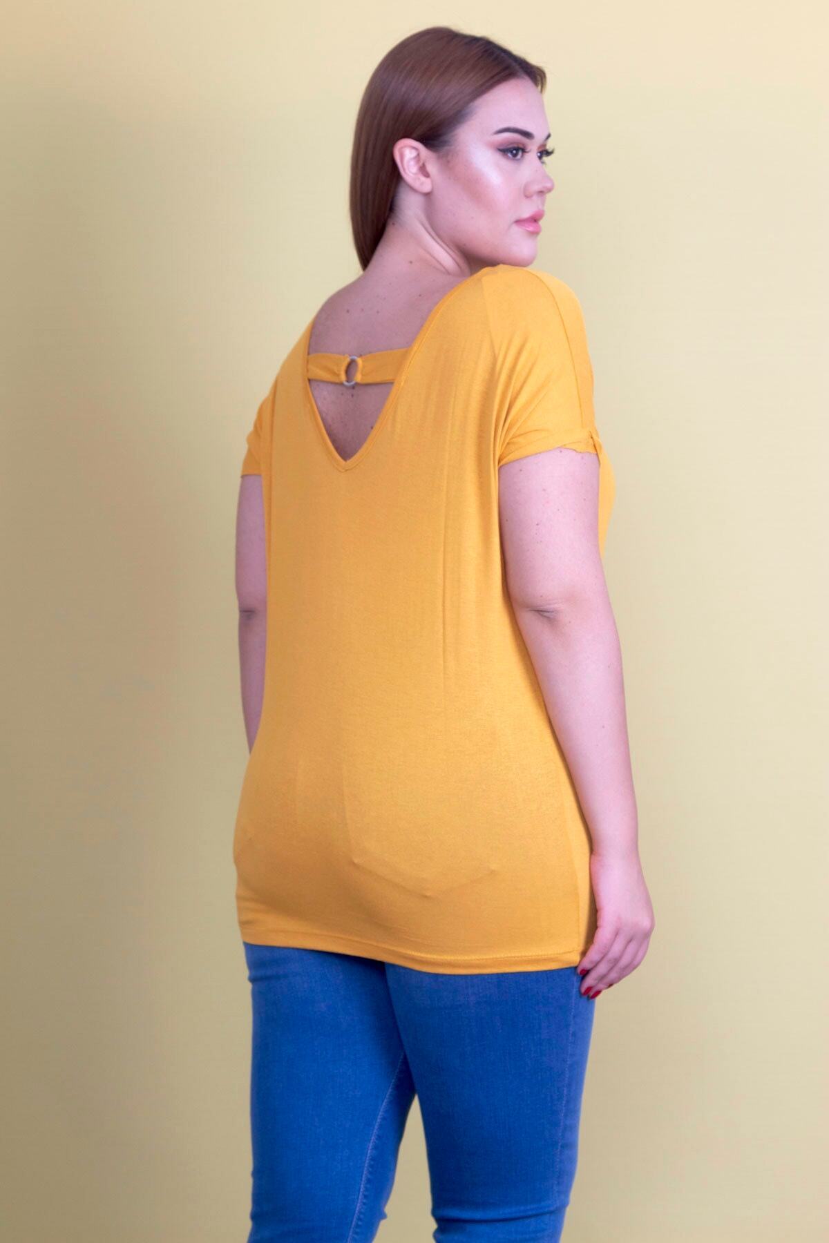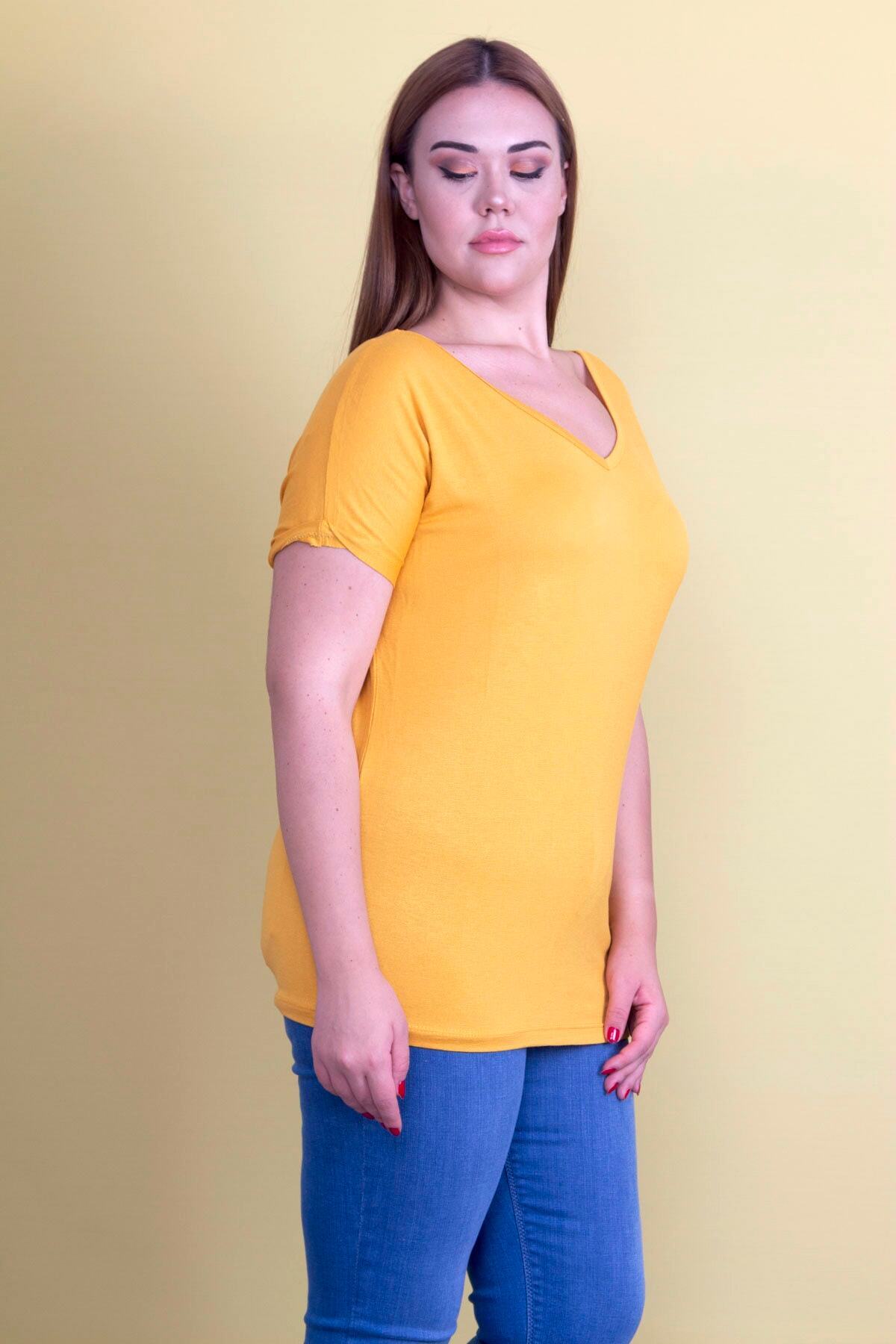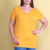 تُنیک زرد خردلی زنانه بزرگ با یقه باز در پشت. کد 1742229725