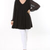 در نهایت، این بلوز مشکی با آستین توری و جلوی پلیسهدار گزینهای مناسب برای هر بانوی خوشسلیقهای است که به دنبال یک پوشش مدرن و در عین حال راحت میگردد. این لباس به سادگی با شلوارهای جین، دامنها و حتی شلوارکها قابل ست کردن است و به شما این امکان را میدهد تا در هر زمانی به راحتی و با اعتماد به نفس تمام، ظاهر شوید.