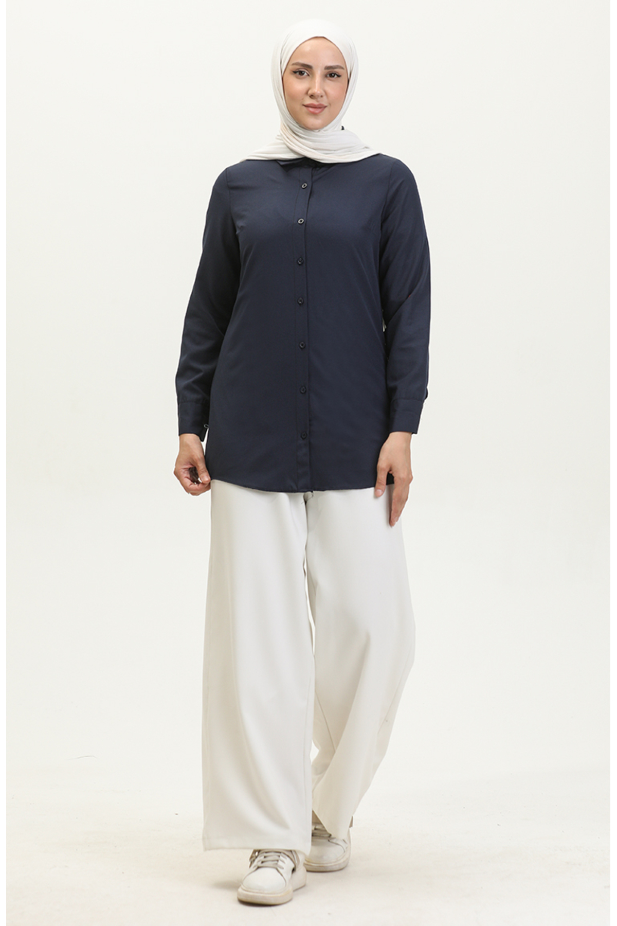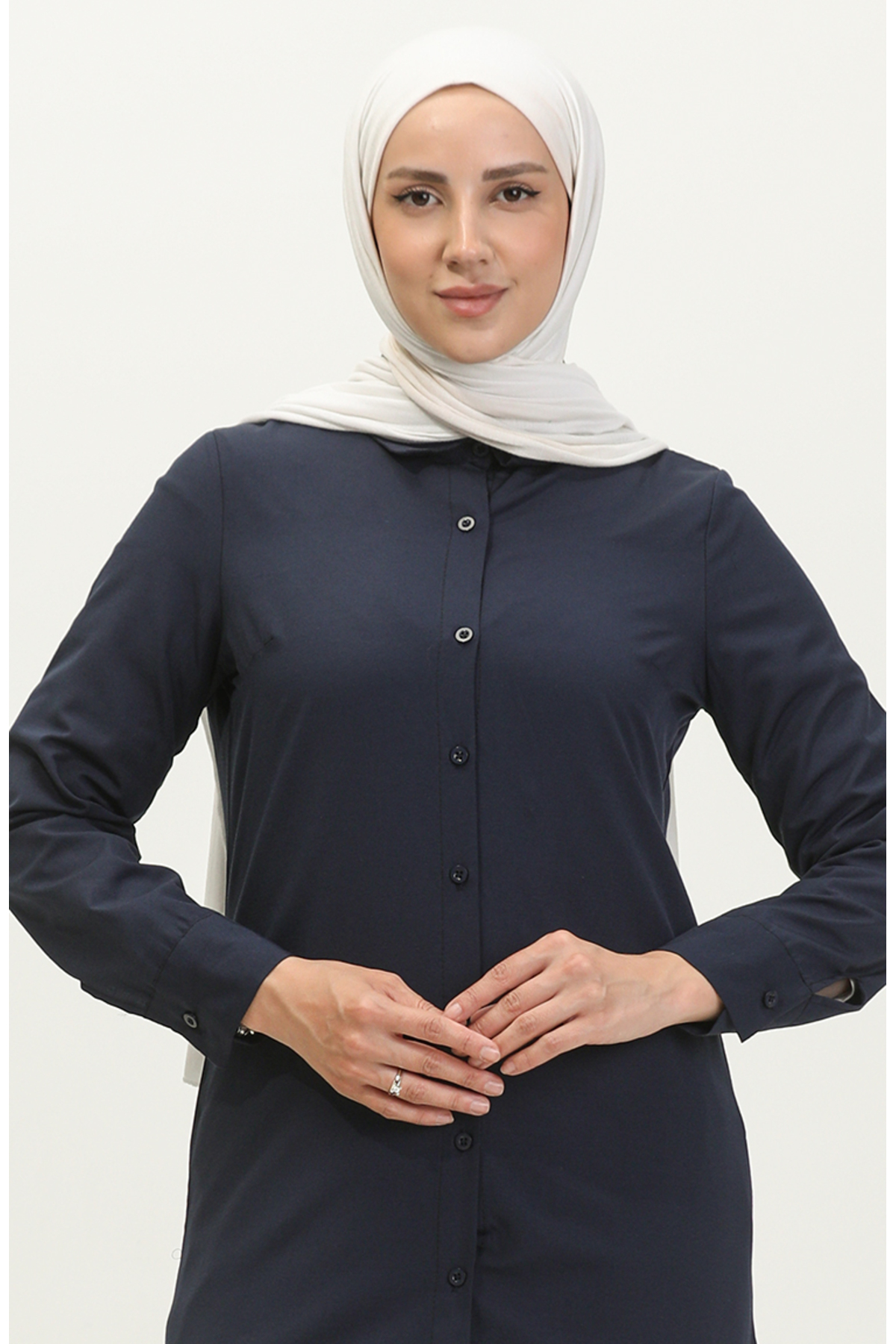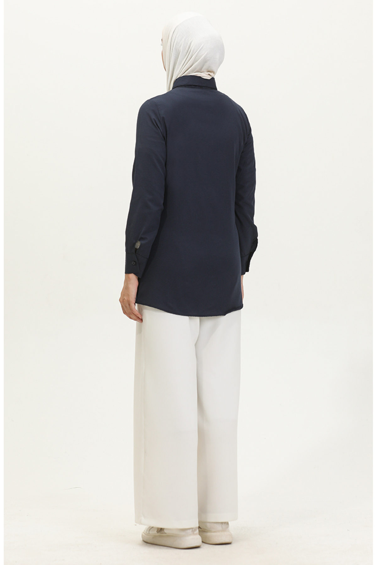 این تونیک با دکمههای زیبای خود جلوهای خاص و متمایز به خود گرفته است. دکمهها به عنوان جزئیات طراحی میتوانند زیبایی بیشتری به تیپ شما ببخشند و به راحتی در انتخاب یک تیپ روزمره با آن کمک کنند. رنگ سرمهای این تونیک نیز باعث میشود که به راحتی با رنگهای دیگر ترکیب شود و گزینهای ایدهآل برای استفاده در مهمانیها یا دورهمیها باشد.
