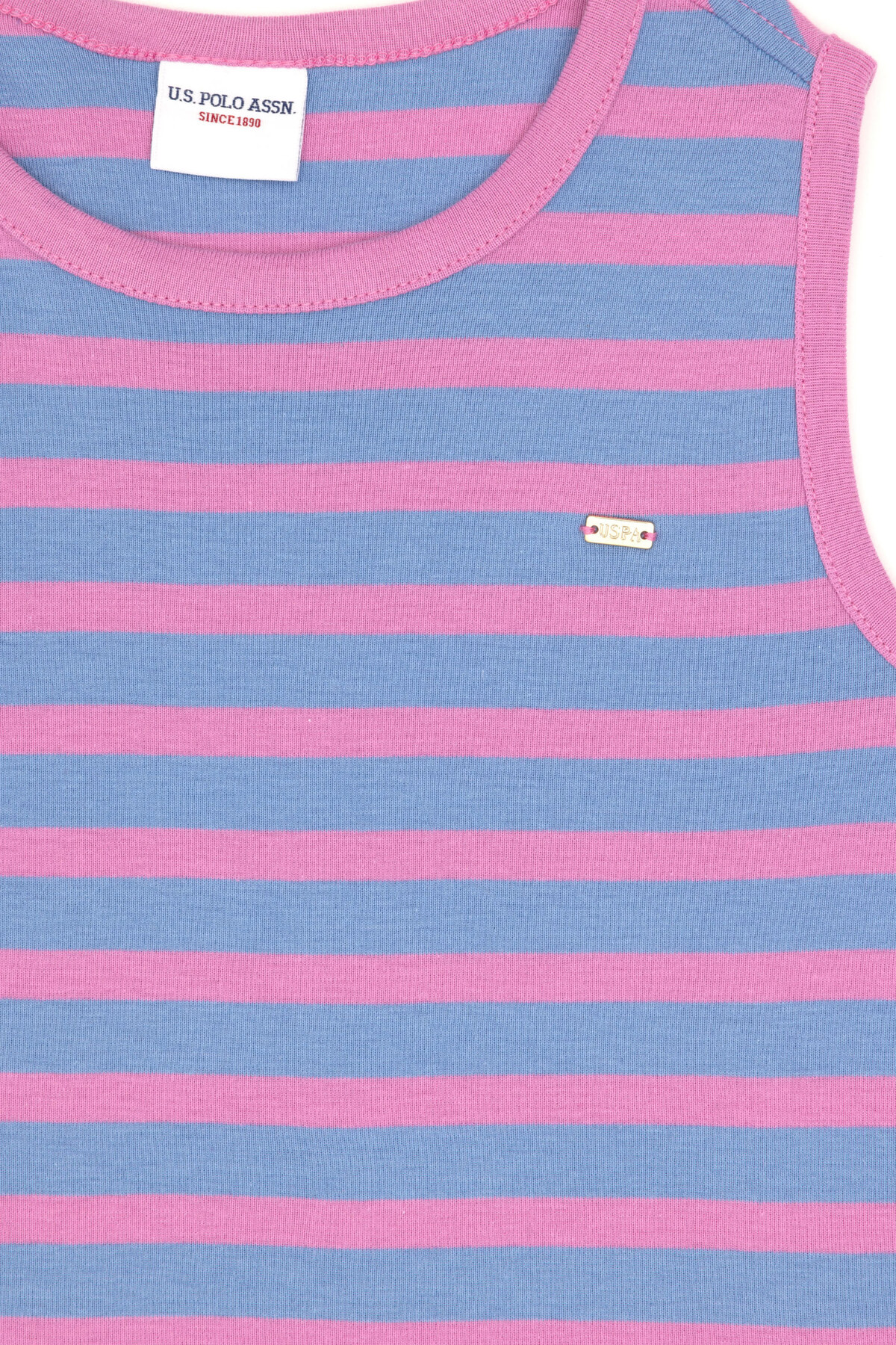 تیشرت آستیندار کجراه دخترانه به رنگ آبی تیره با یقه گرد برند U.S. Polo Assn.