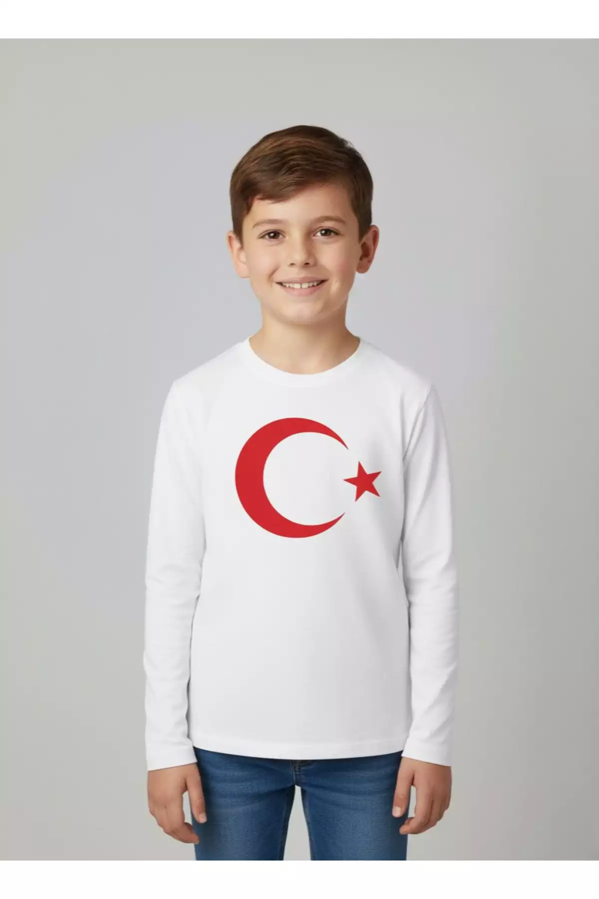 تیشرت آستین بلندی با طرح پرچم ترکیه و تصویر ماه و ستاره برای بچهها پسر و دختر برند secret touch