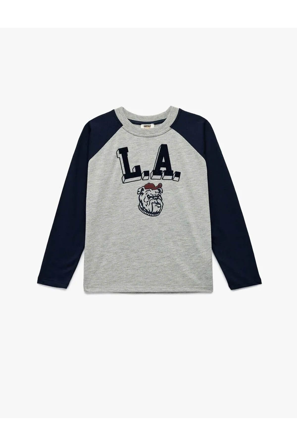 تیشرت آستین بلند خاکستری با طرح کلاسیک برای پسران 6WKB10237TK برند Koton