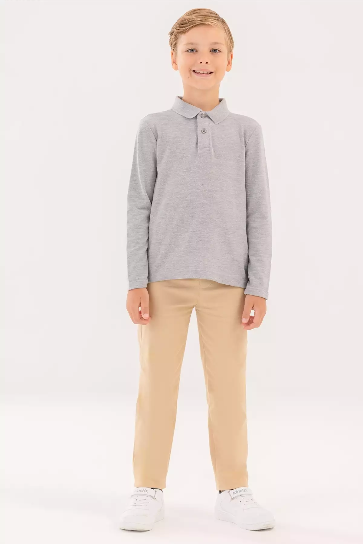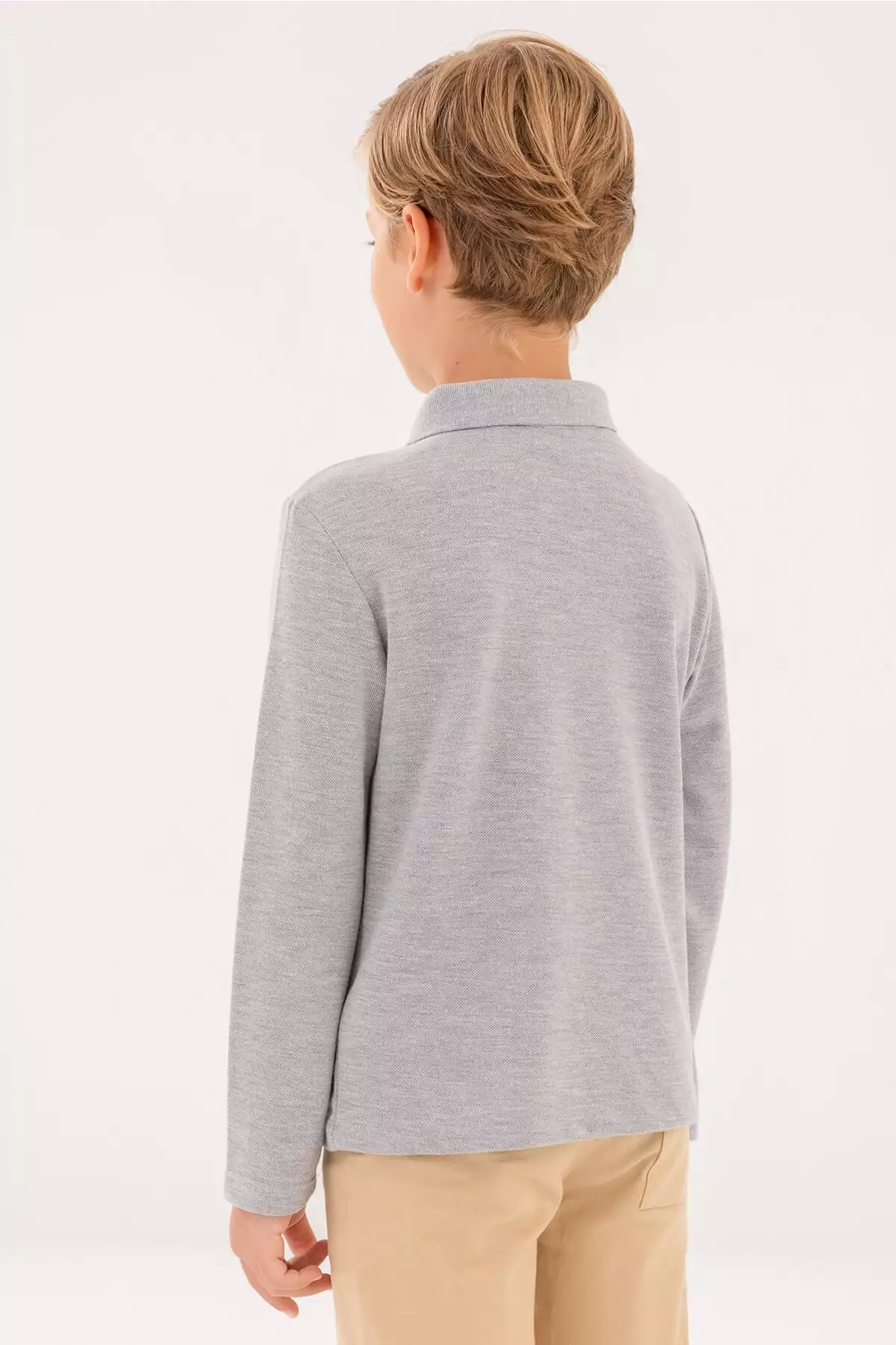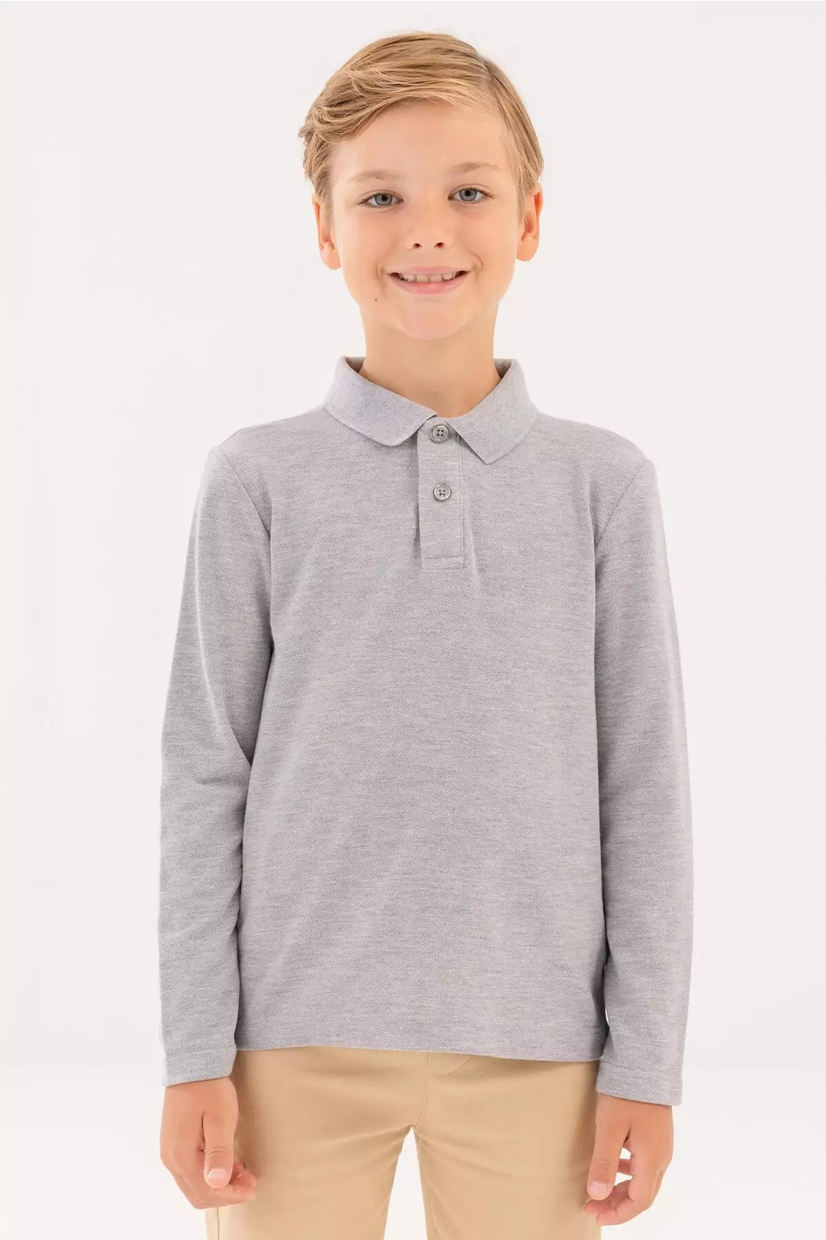 تیشرت آستین بلند پسرانه مدل Ku Basıc کد 15kds04 رنگ خاکستری ملانژ برند Kinetix