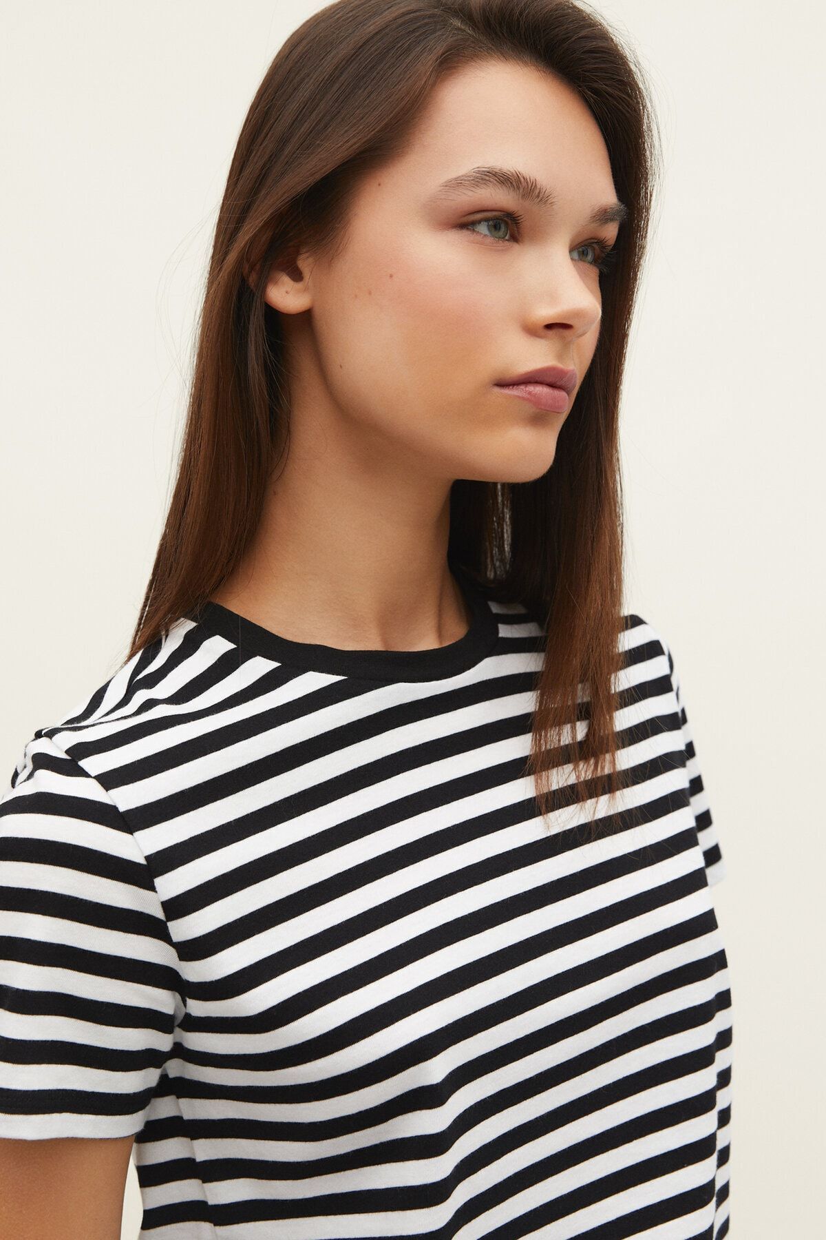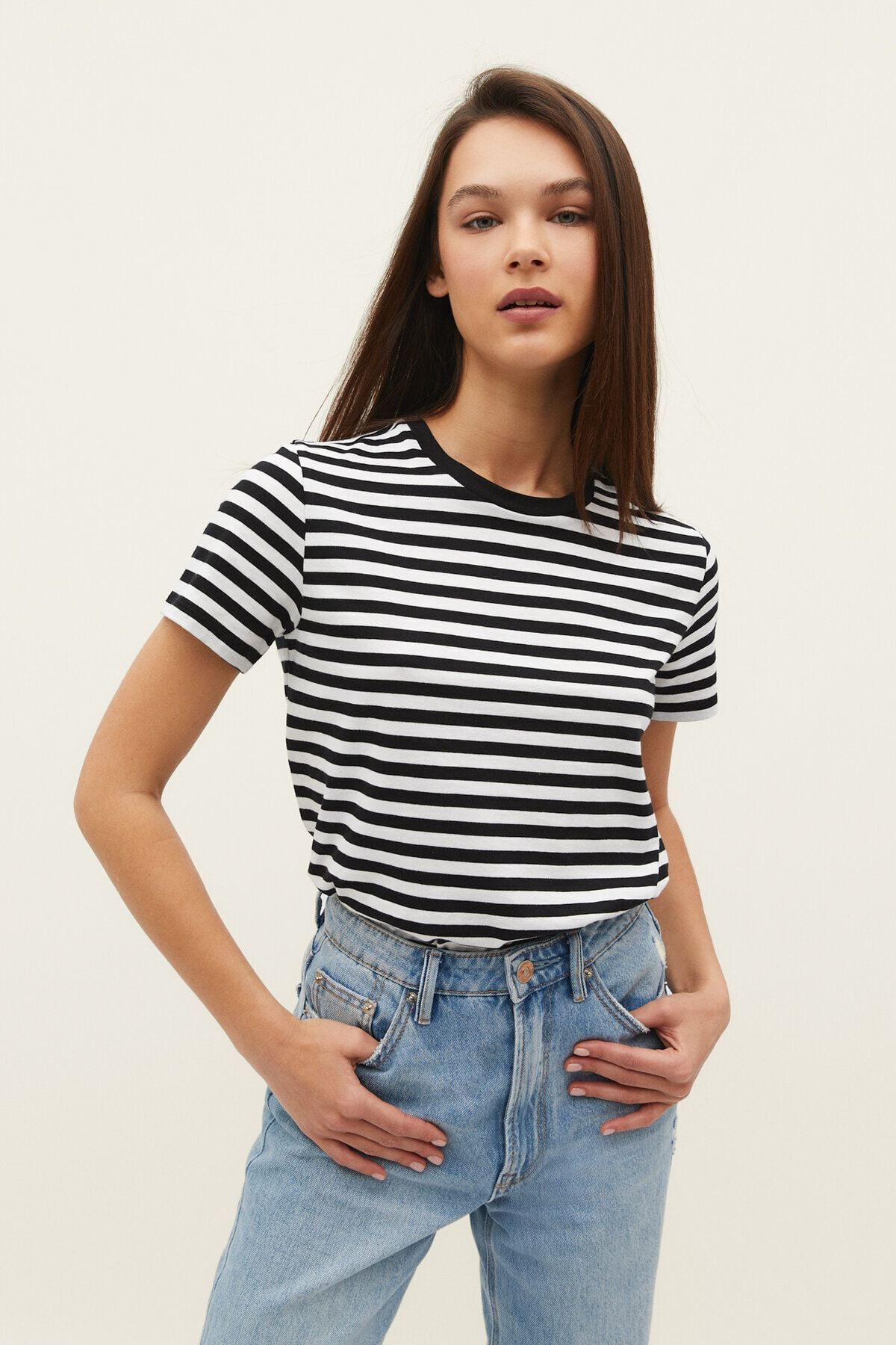این تیشرت دارای الگوی راهراه جذاب است که به سادگی میتواند به تیپ شما جلوهای مدرن و متمایز ببخشد. رنگهای متنوع راهراه این محصول به شما این امکان را میدهد که آن را با دیگر لباسهای خود به راحتی ترکیب کنید. همچنین، طراحی آستین کوتاه این تیشرت باعث میشود تا در روزهای گرم تابستانی احساس راحتی کنید و احساس خنک بودن کنید.