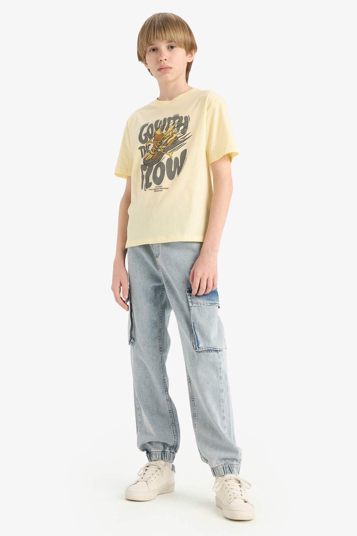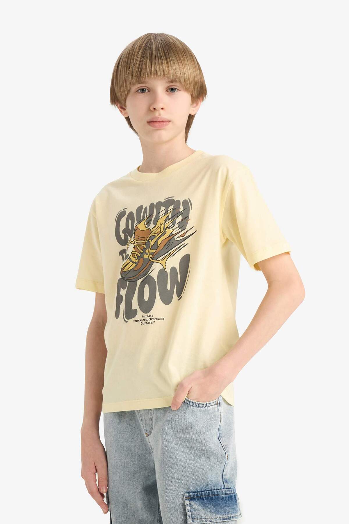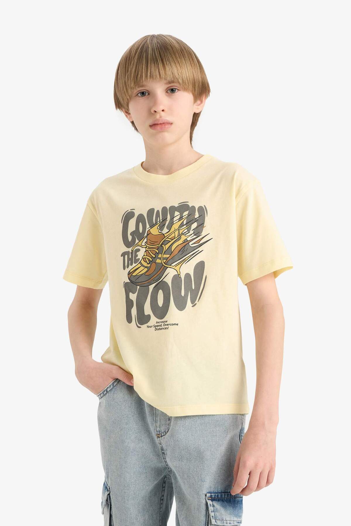 تیشرت آستین کوتاه یقه گرد مدل E6312A825HS از برند معروف Defacto برای پسران طراحی شده است. این تیشرت با کیفیت بالا و طراحی زیبا، گزینهای مناسب برای استفاده روزمره است.
