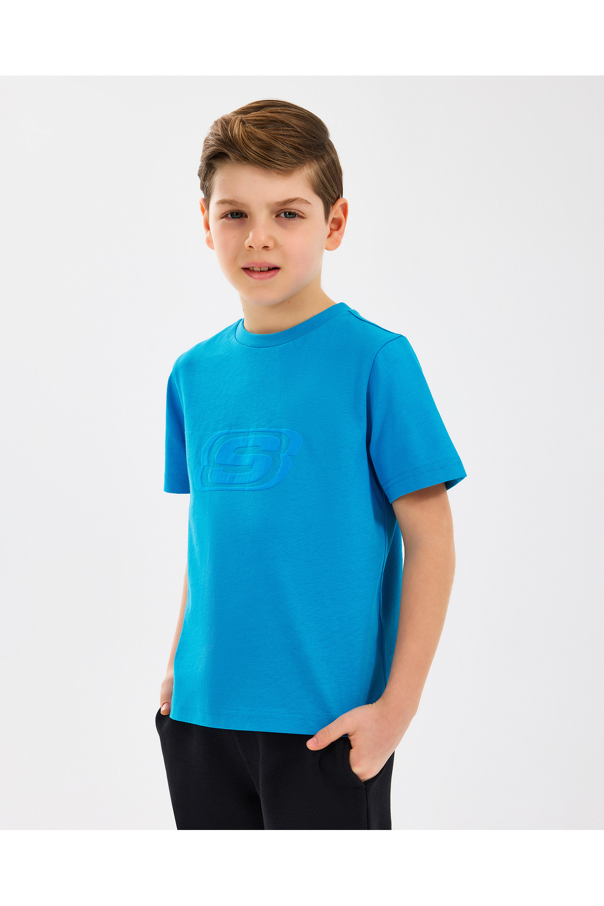 تیشرت اصلی بزرگ برای پسران به رنگ آبی سرمه ای و از برند معتبر Skechers، گزینهای مناسب برای جوانان و نوجوانان است.