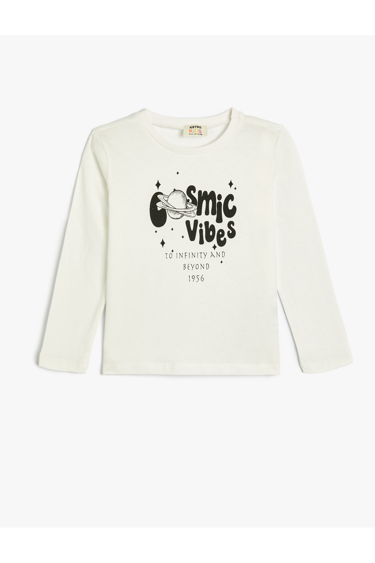 تیشرت با طرح شعار، آستین بلند، یقه گرد از جنس پنبه برند Koton
