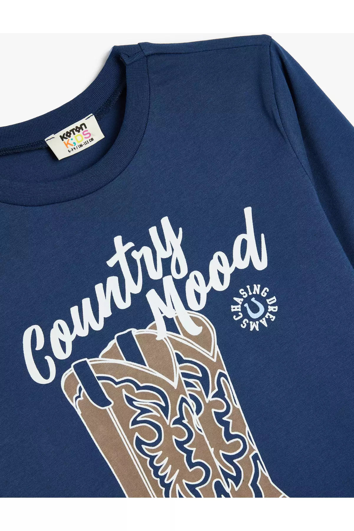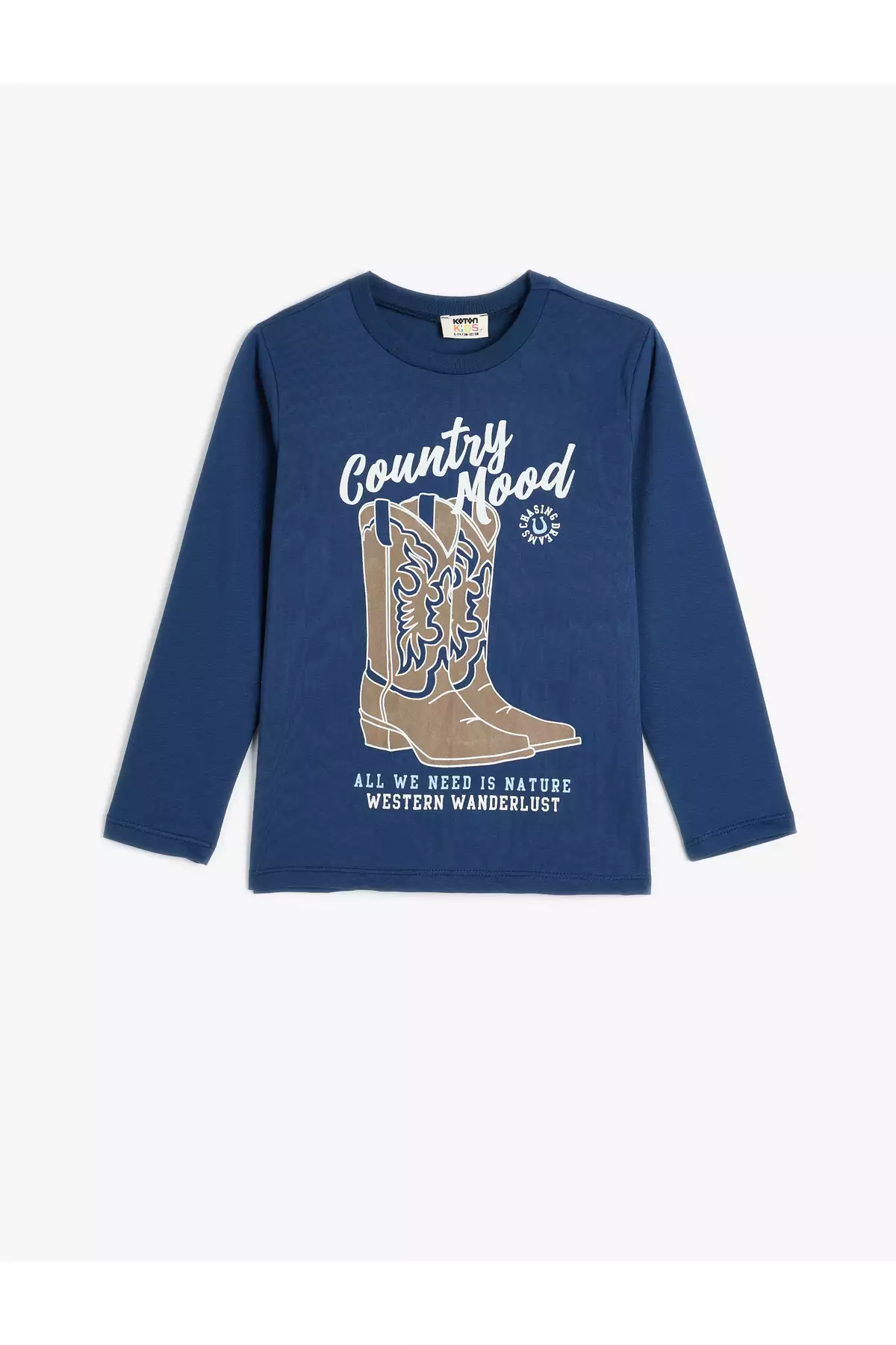 تی‌شرت بلند آستین با طرح چکمه‌های کاوبوی و یقه گرد از جنس پنبه برند Koton - 857546231