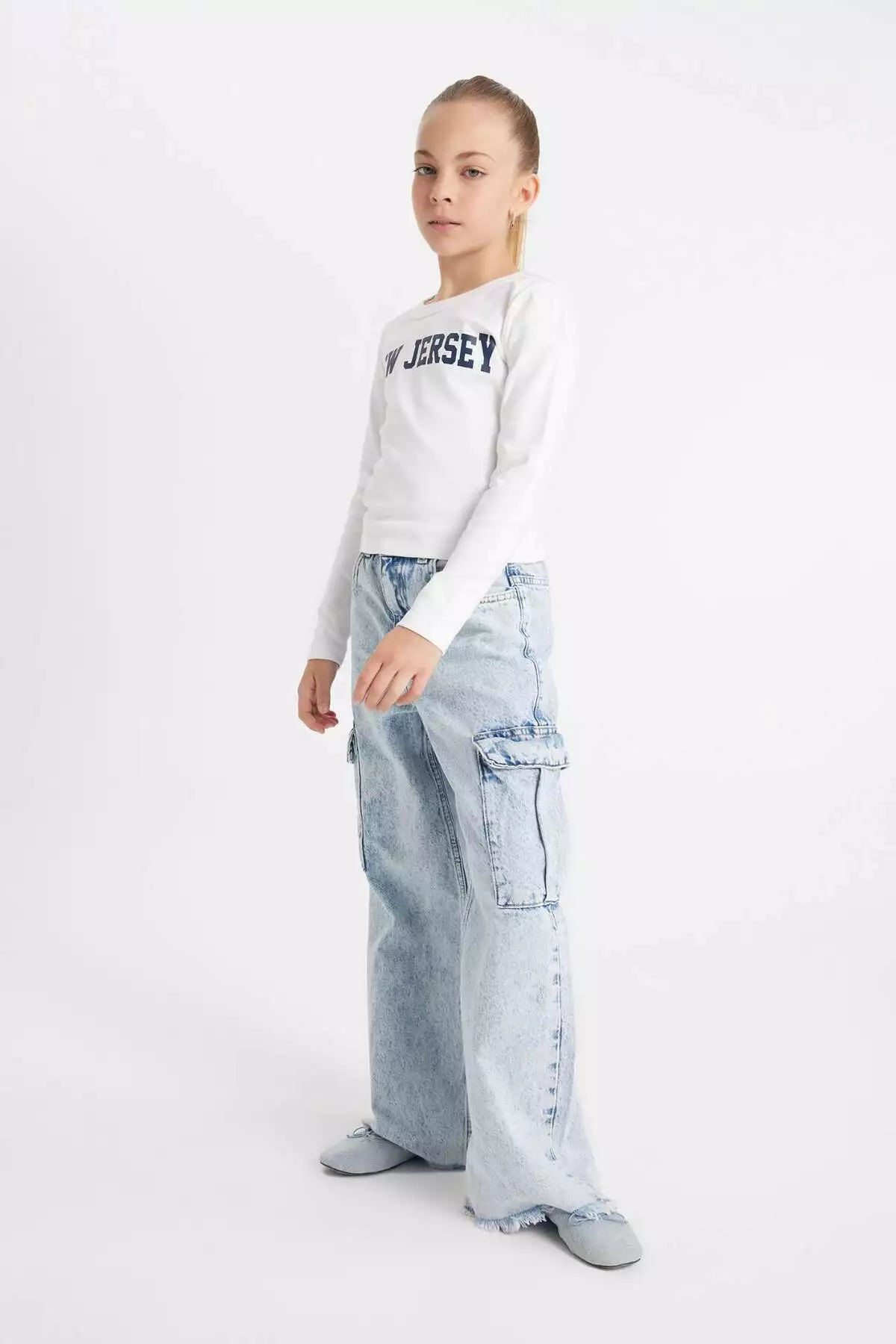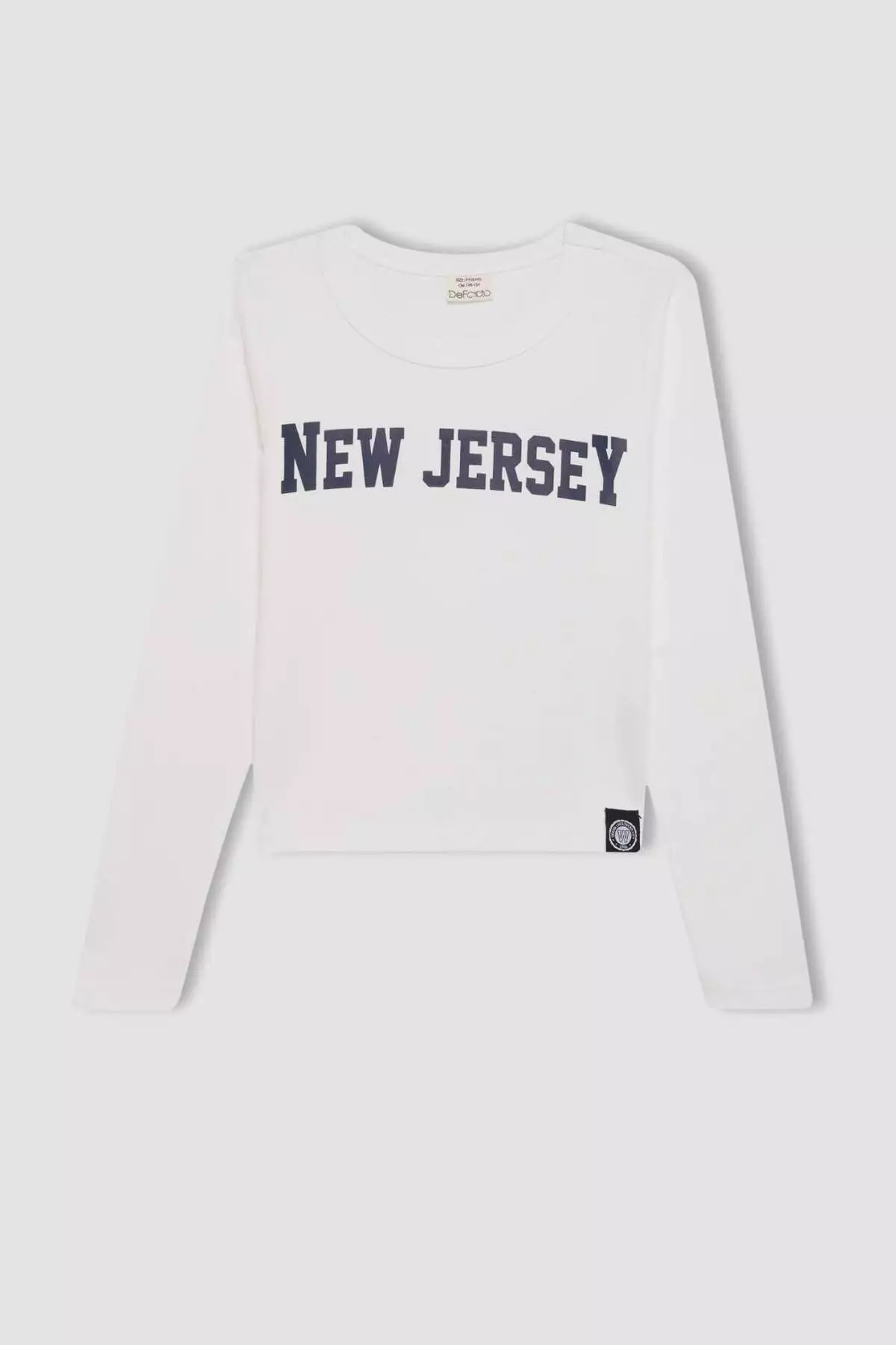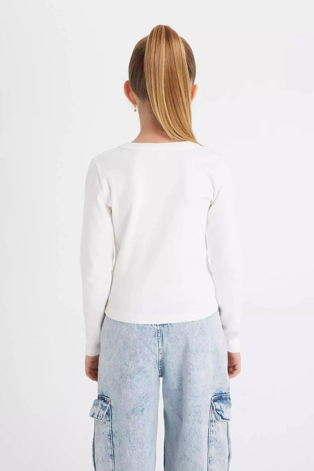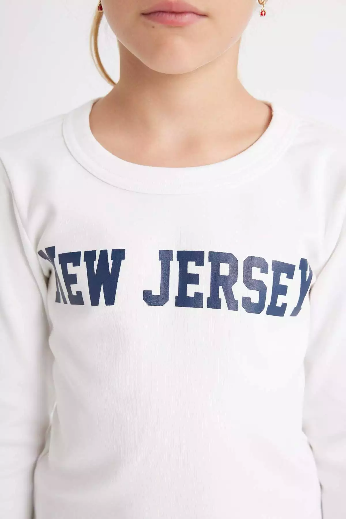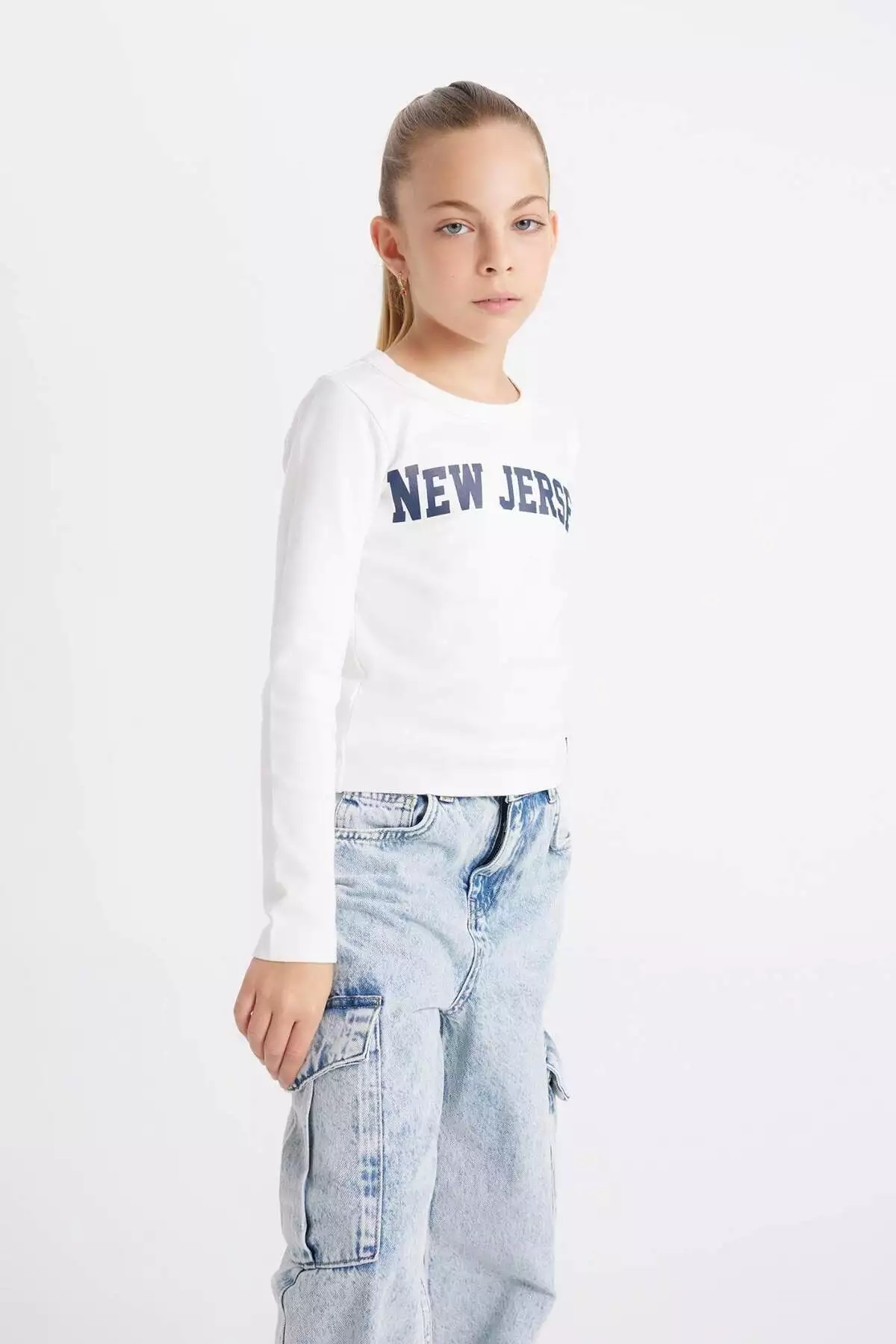 تیشرت بلند آستین با یقه دوچرخهای و طرح چاپی برای دختر بچهها برند Defacto