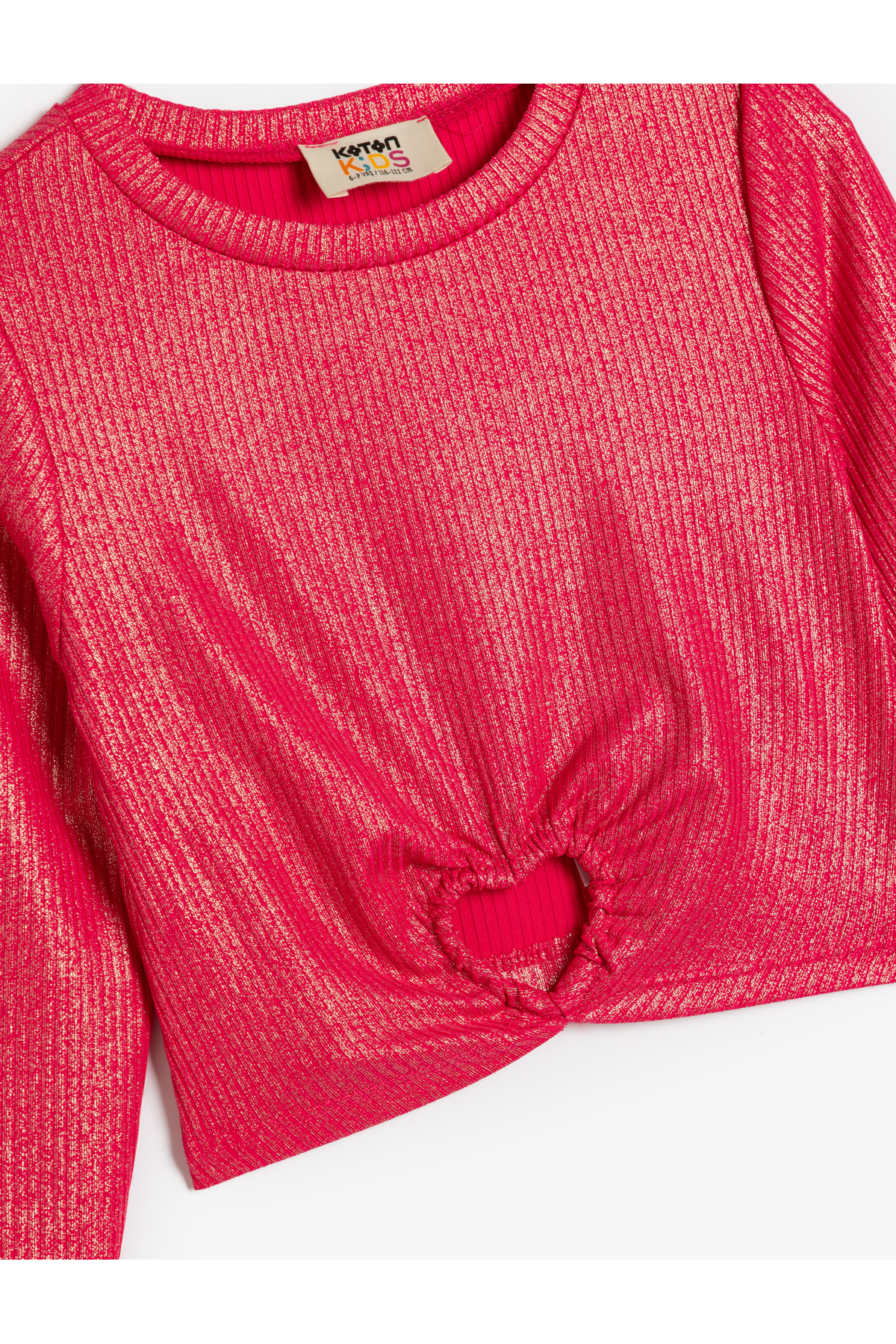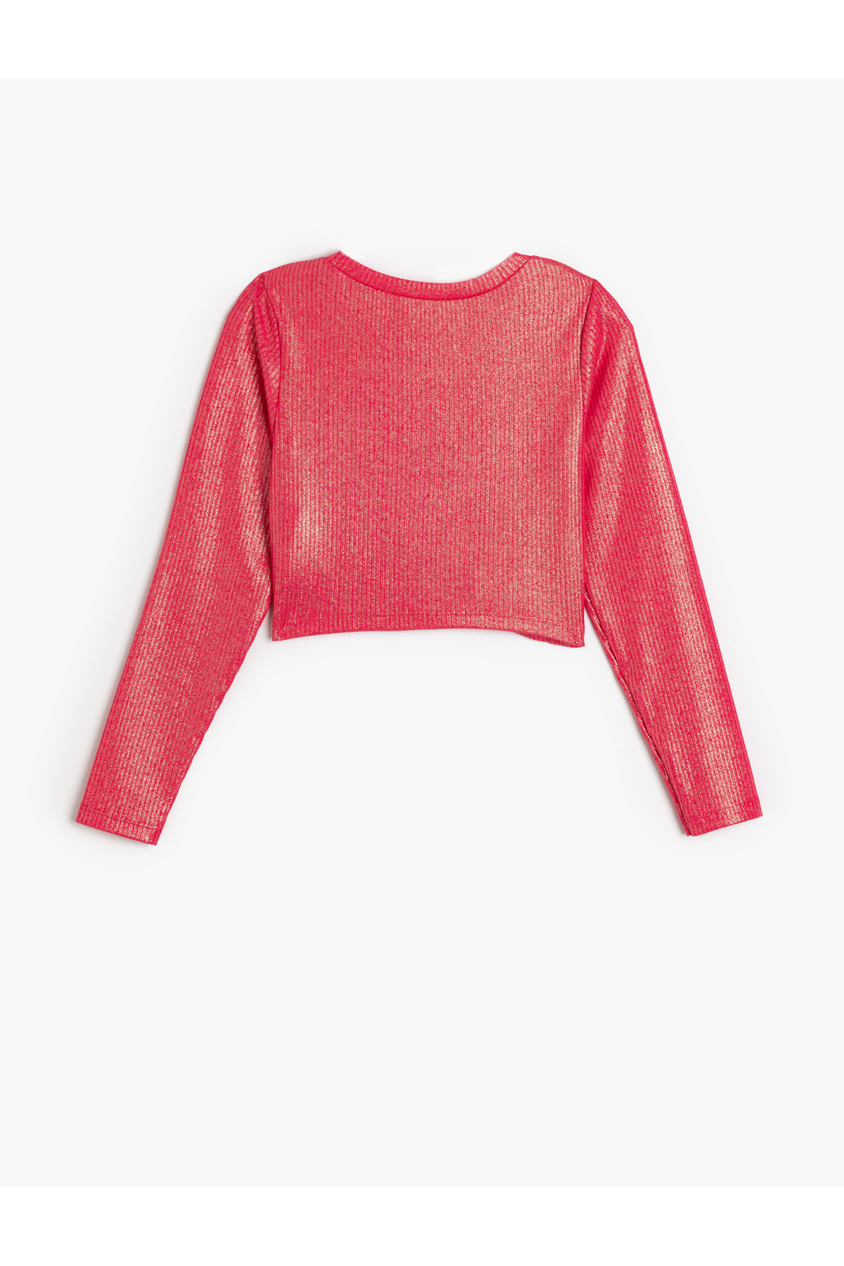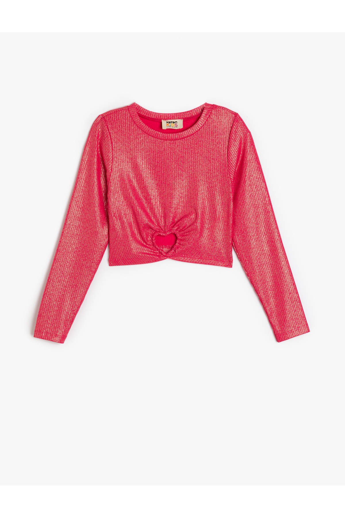 تیشرت بلند آستین یقهگرد با جزئیات قلب و براق برند Koton