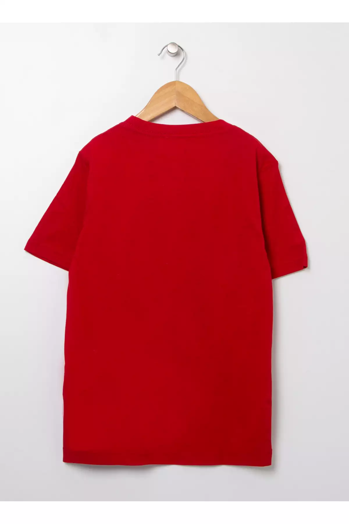 رنگ قرمز این تیشرت به زیبایی با طرح چاپی هماهنگ شده و ظاهری شیک و مدرن به آن بخشیده است.