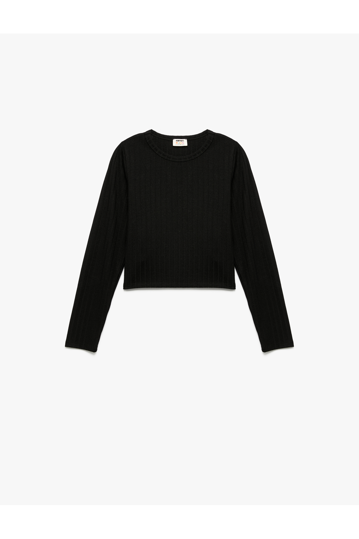 تیشرت بیسیک یقه گرد با آستین بلند از ترکیب ویسکوز برند Koton