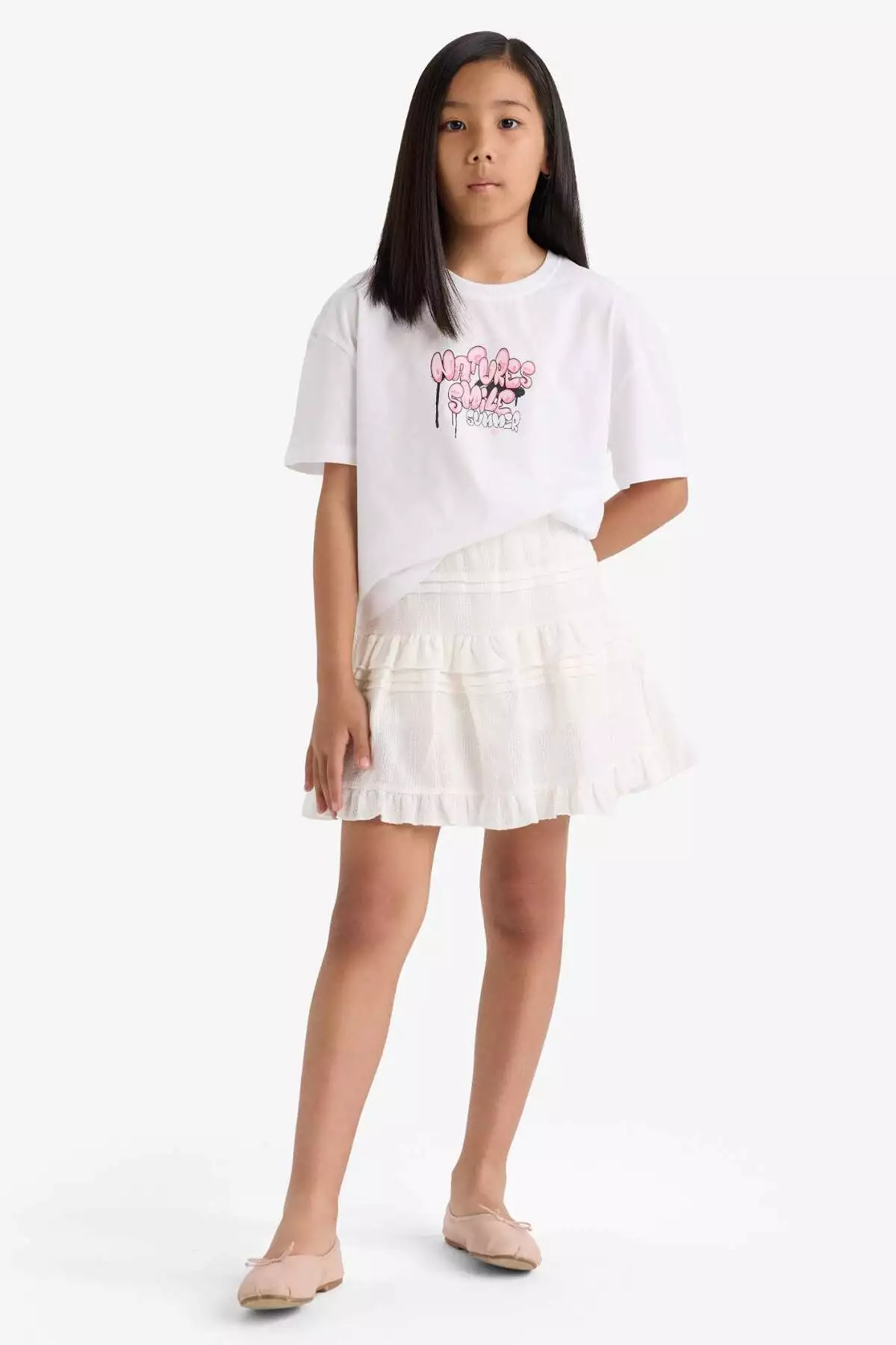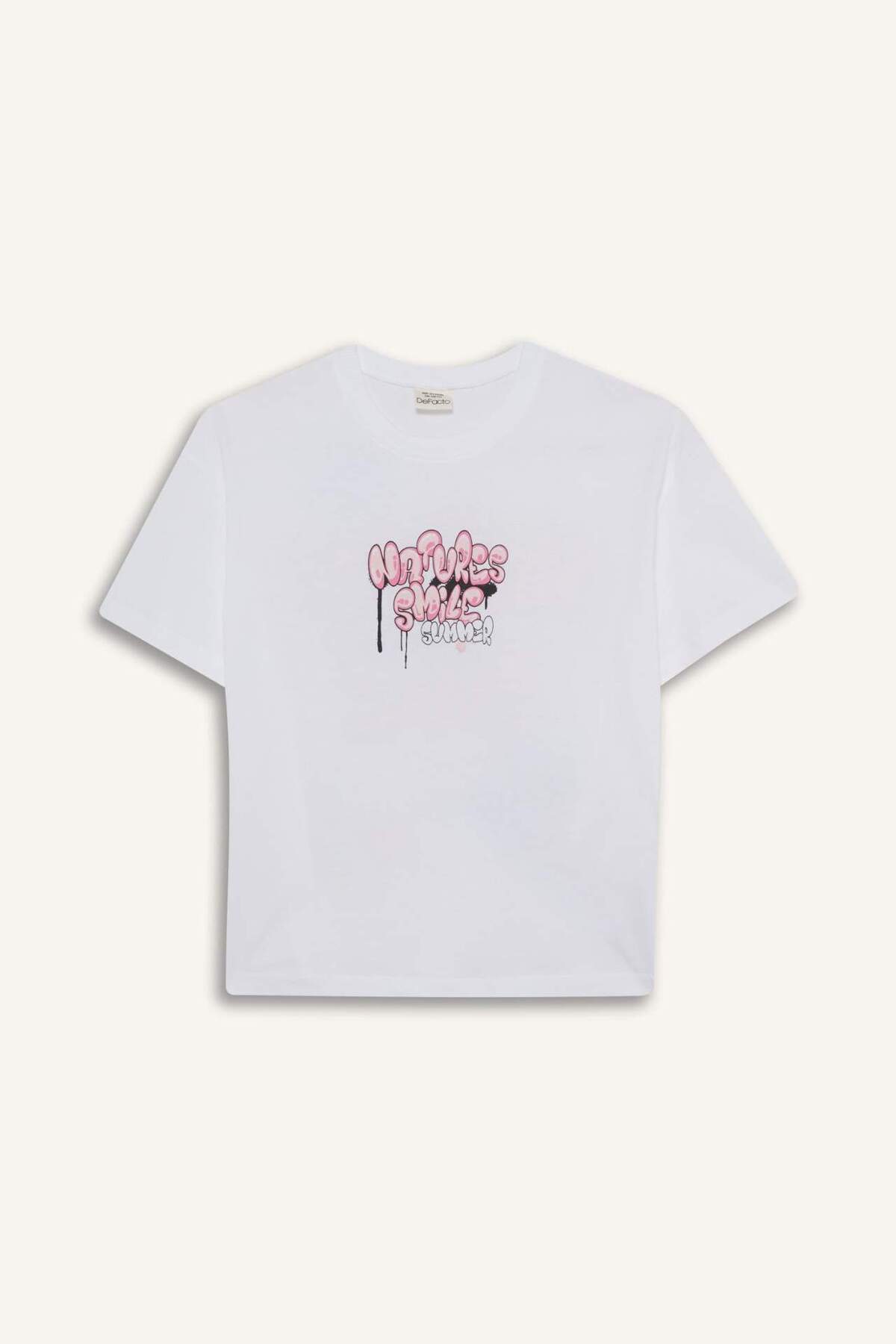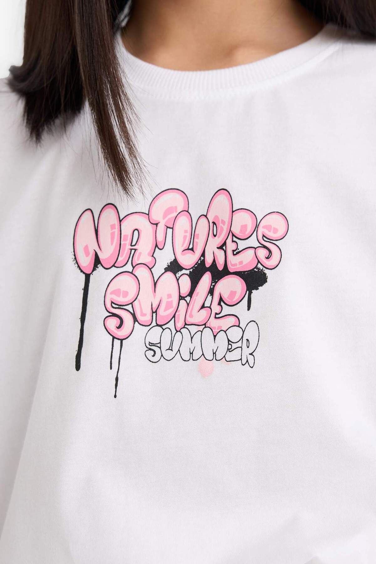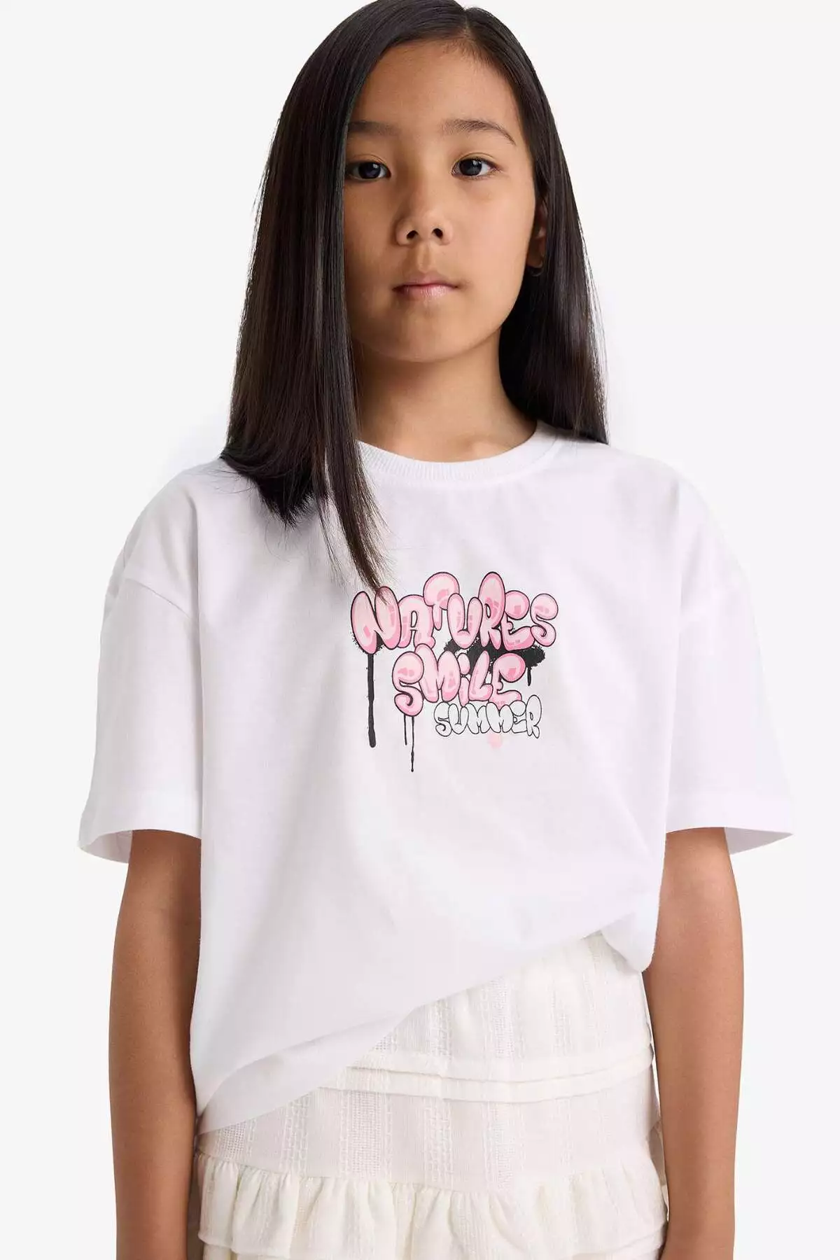تیشرت دخترانه آستین کوتاه و گشاد با یقه گرد و چاپ پشت E0367A825SM برند Defacto