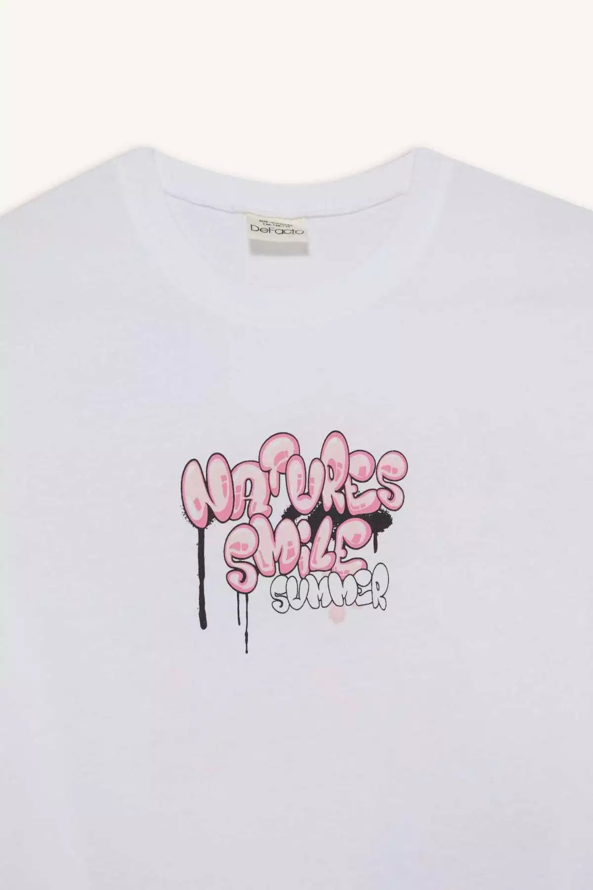 طرح چاپ شده در قسمت پشت تیشرت، به جذابیت آن افزوده و آن را به یک انتخاب عالی برای دختران جوان تبدیل میکند. همچنین، طول آستین آن به گونهای طراحی شده که مناسب برای هر سلیقهای باشد.