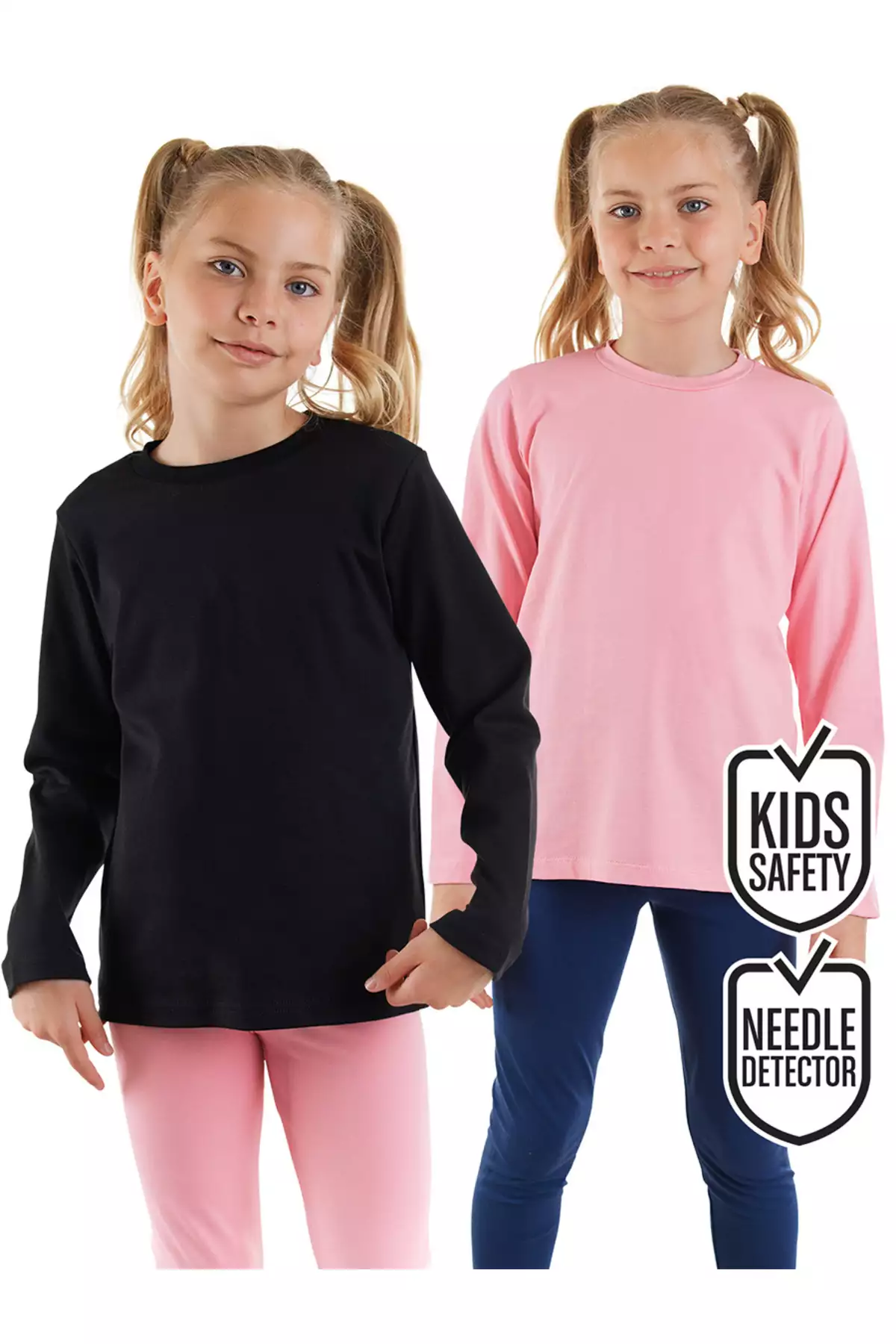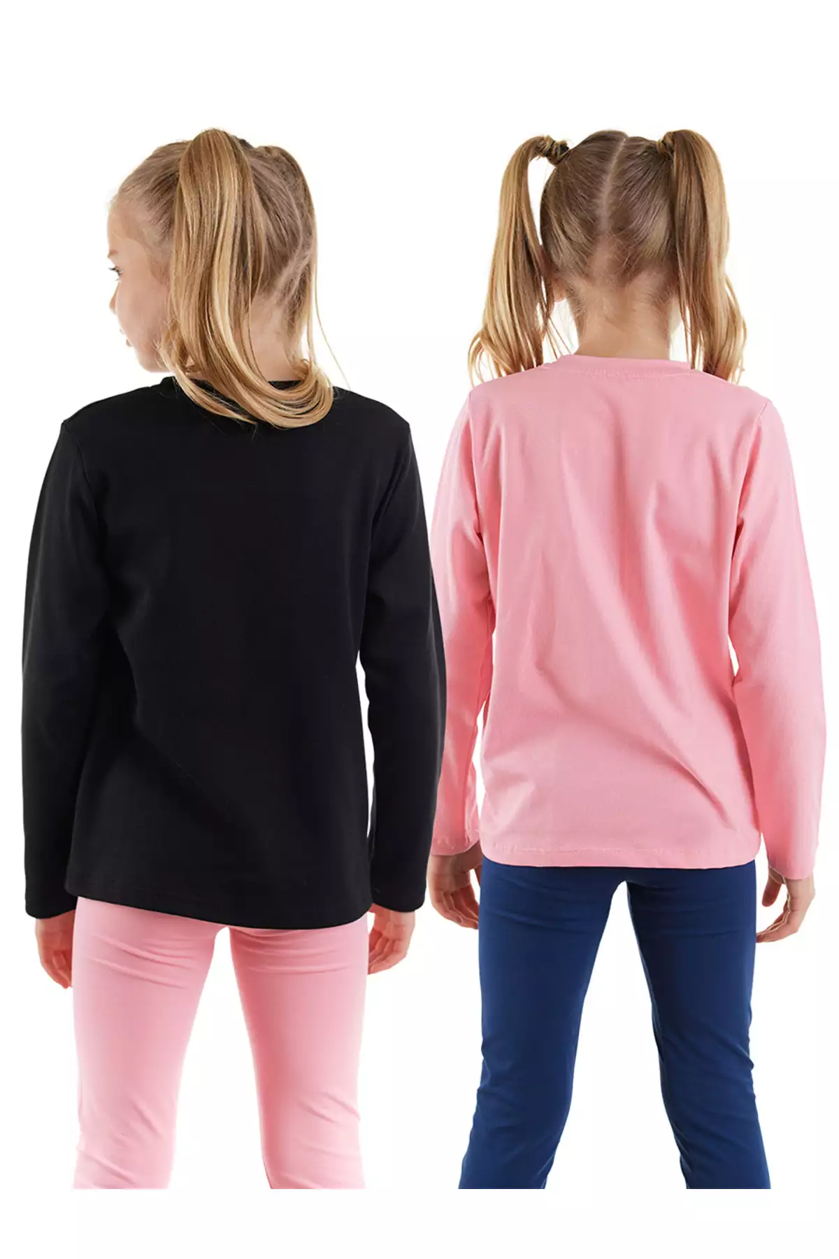 تیشرت دخترانه ۲ تکه مشکی و صورتی برند Denokids