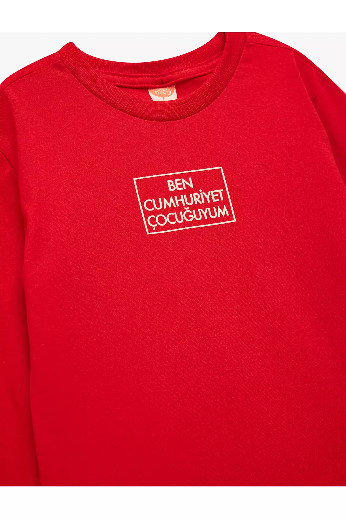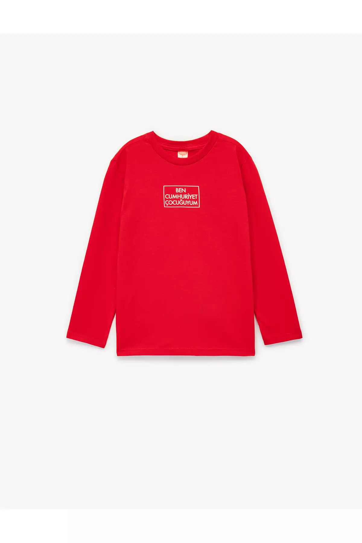 تیشرت دورگرد نخی با آستین بلند و طرح جمهوری برند Koton