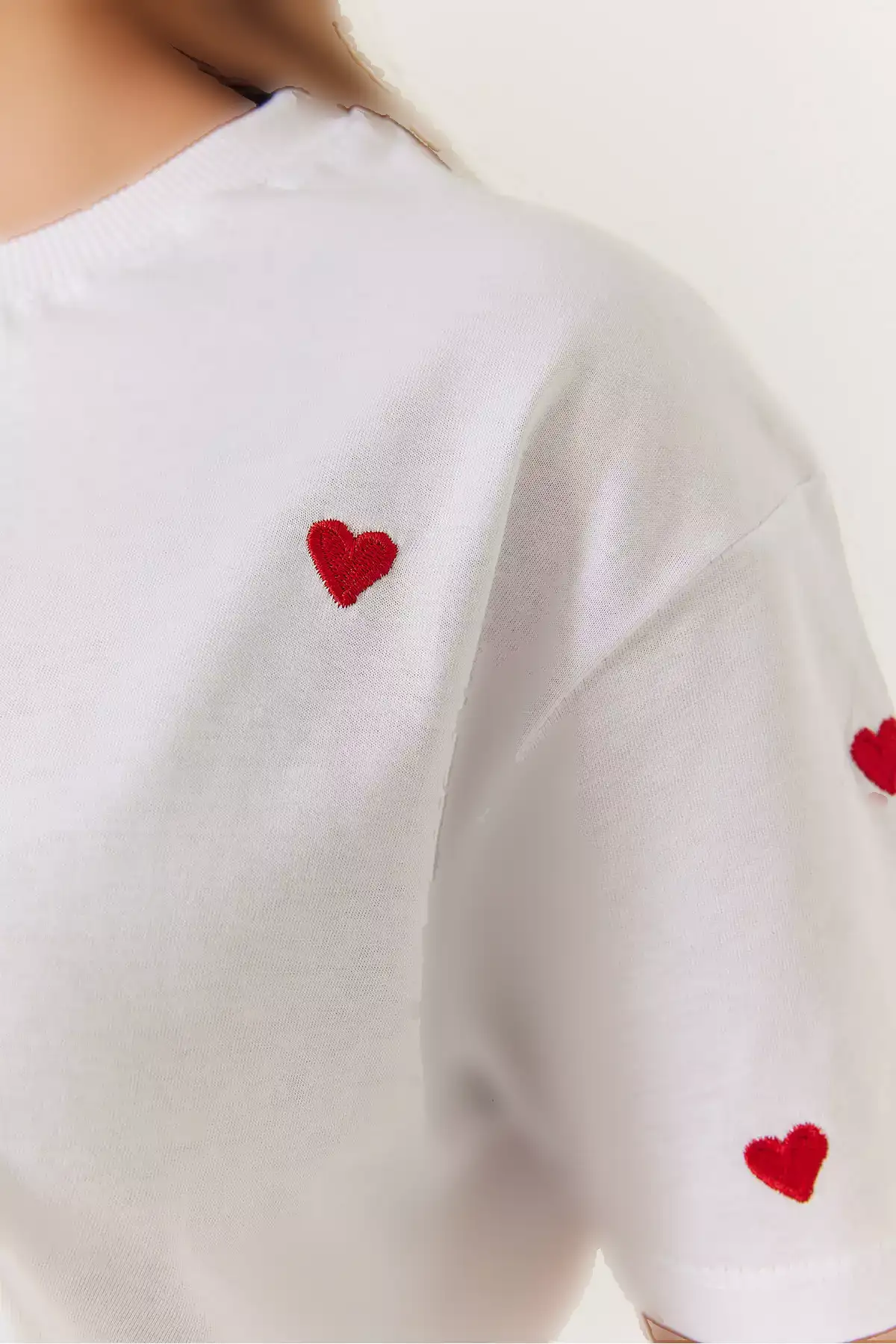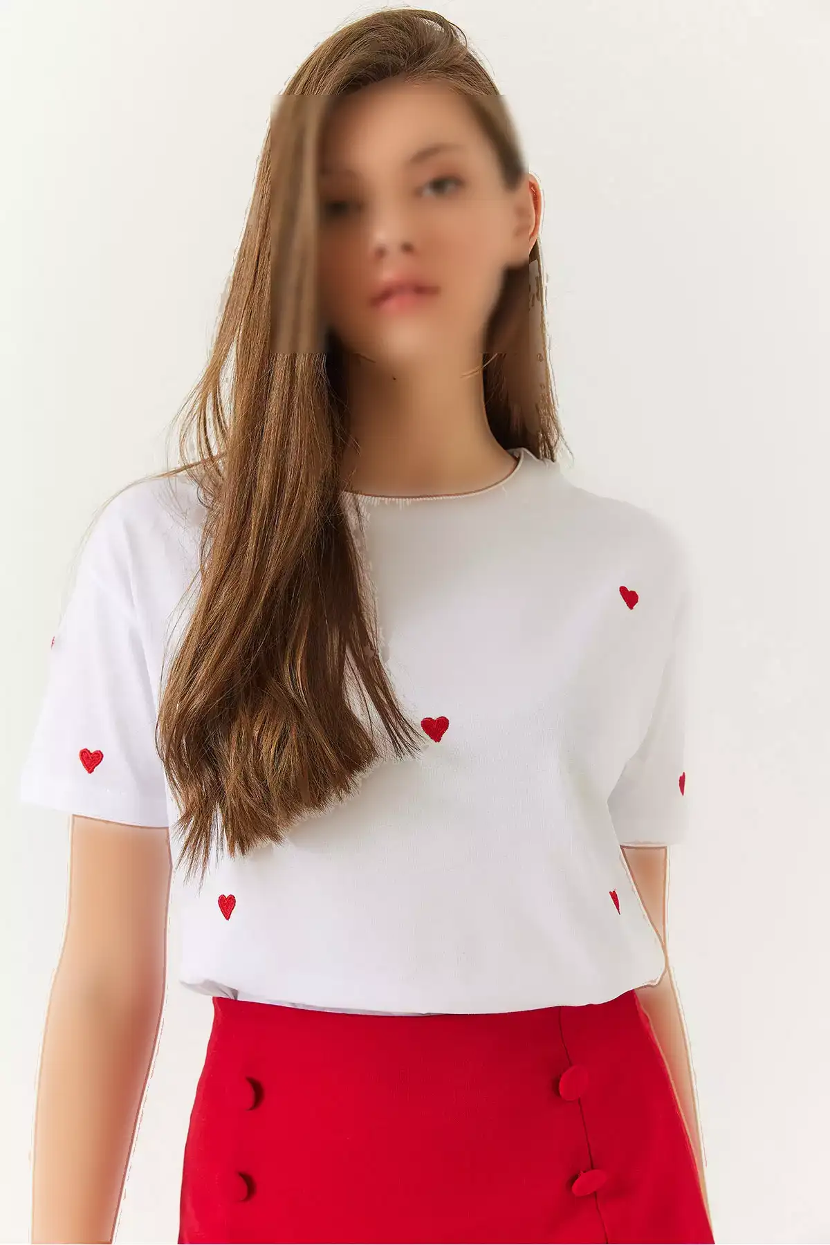 تیشرت زنانه با گلدوزی قلب 60602004 برند Bianco Lucci