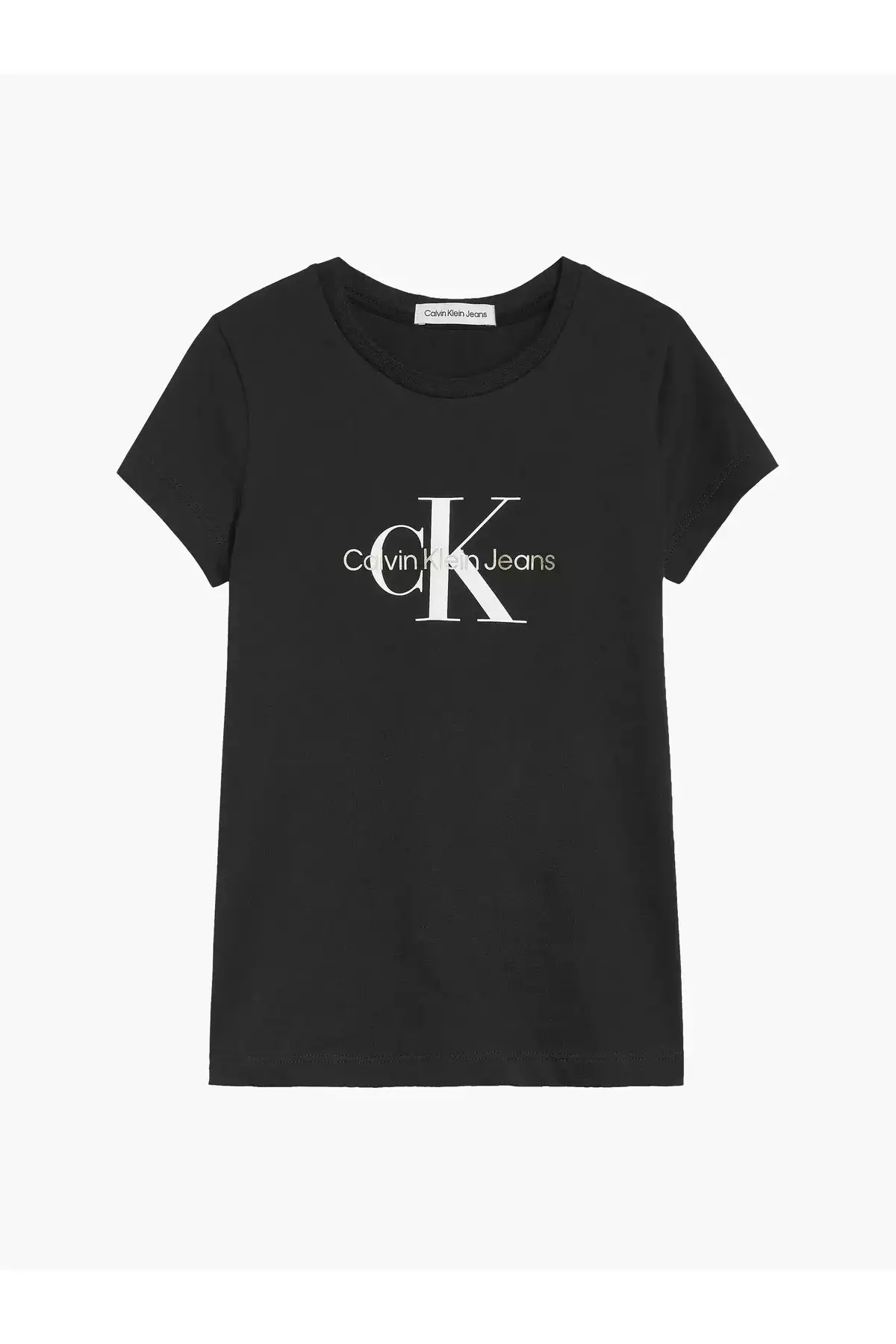 تیشرت زنانه سیاه با طراحی مونوگرام بازتابنده برند Calvin Klein