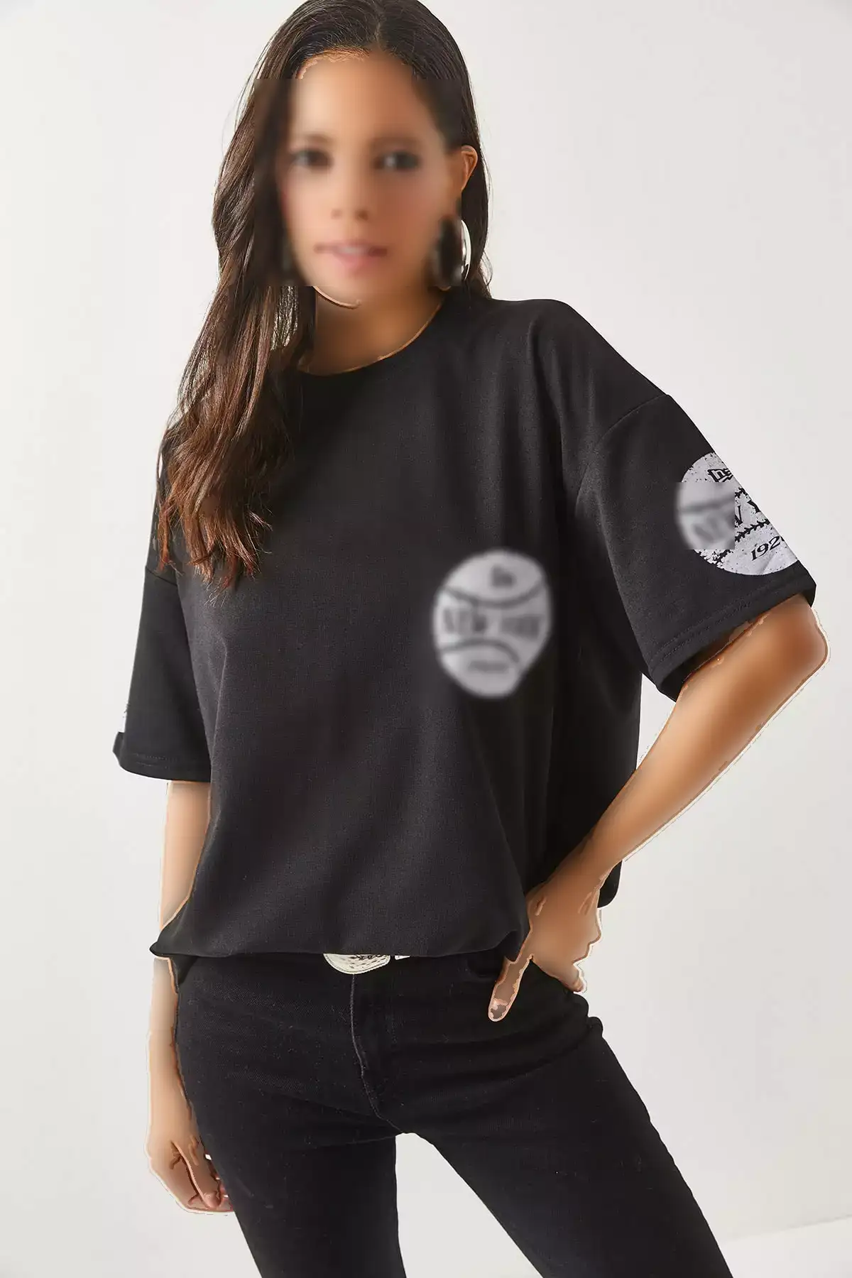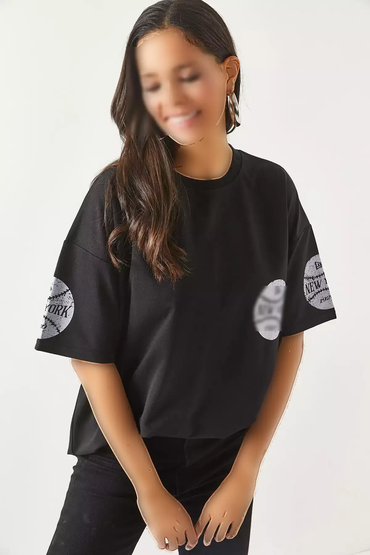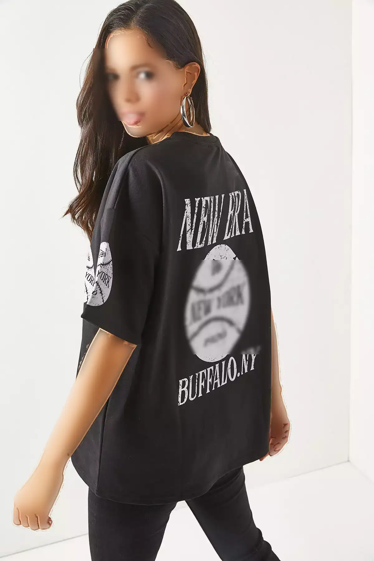 تیشرت زنانه نیویورک سیاه با چاپ جلو و عقب، دو تیکه، مدل اورسایز برند Olalook