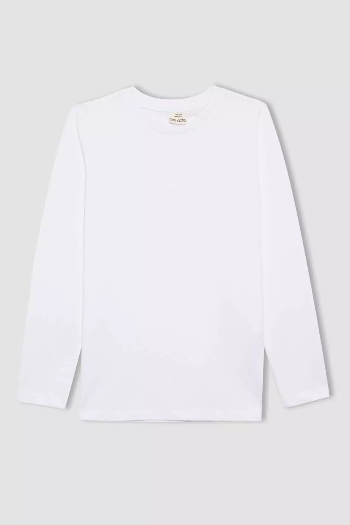 تیشرت ساده بلند آستین با یقه دوچرخهای برای پسر بچهها مدل B7771A8NS برند Defacto