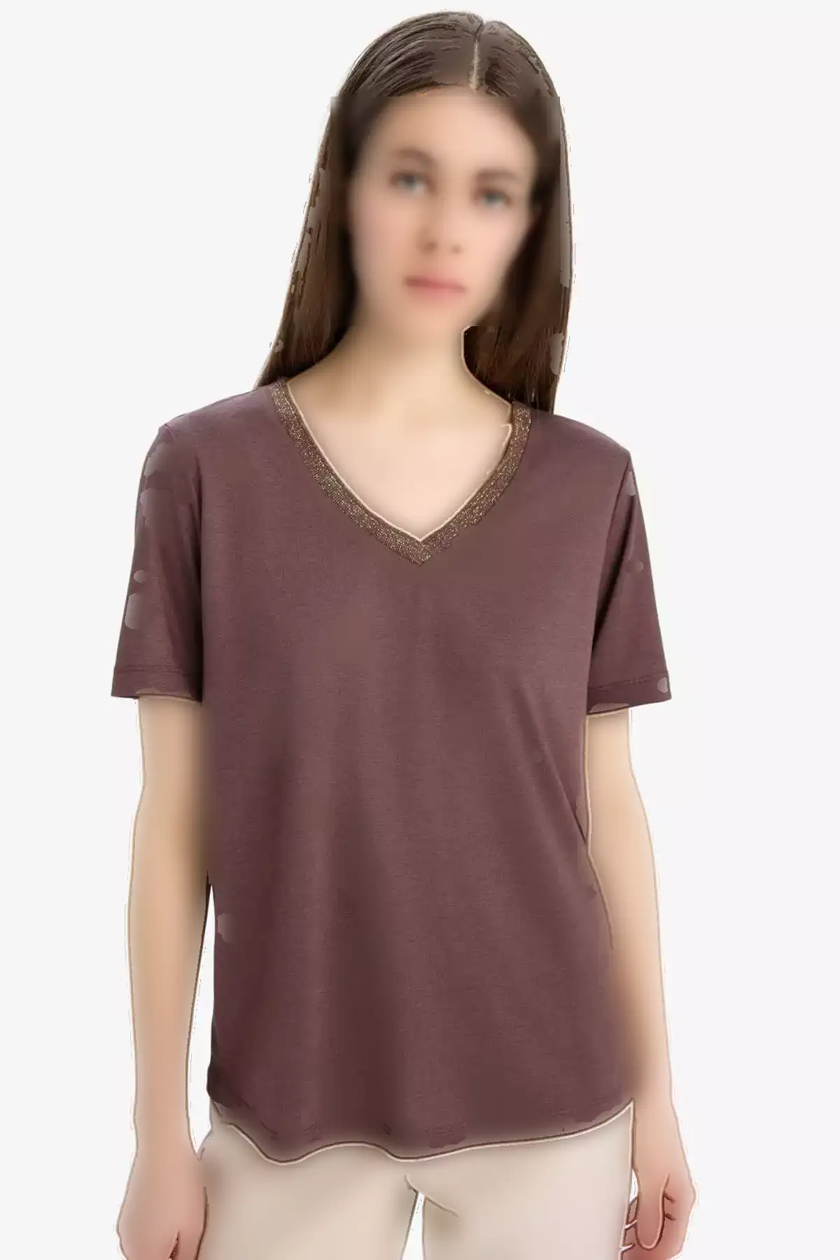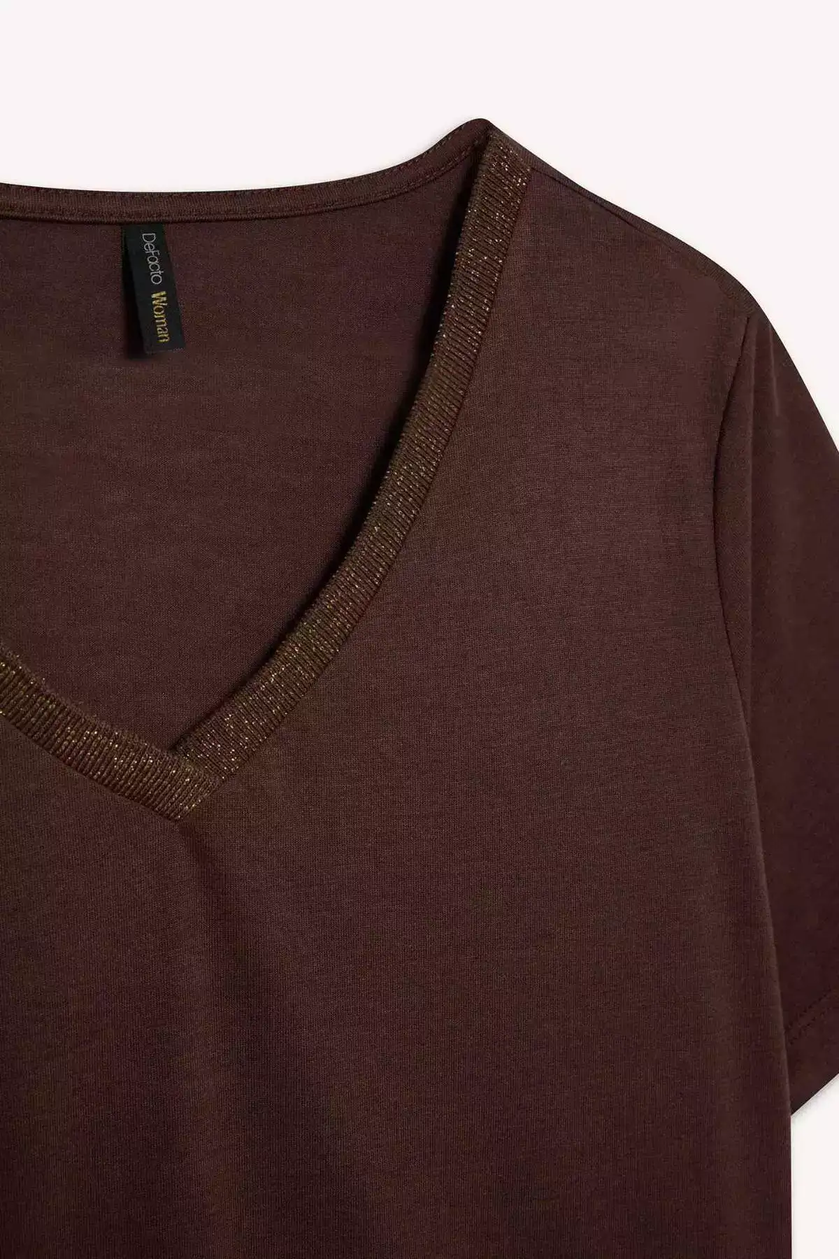 تیشرت ساده کوتاه آستین با برش معمولی و یقه V مدل K5057AZ25SP برند Defacto