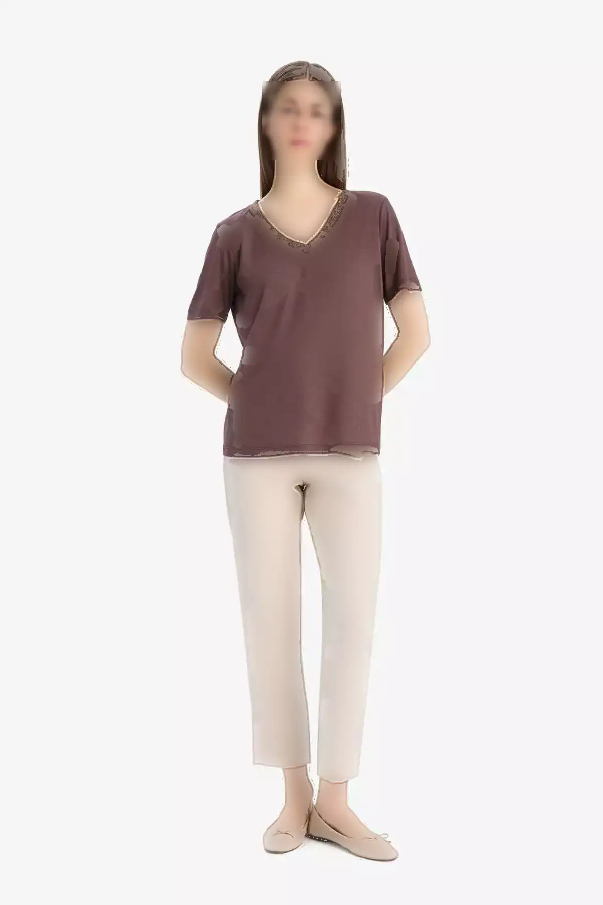 رنگ قهوهای این تیشرت به راحتی با سایر رنگها هماهنگ میشود و شما میتوانید آن را با شلوارهای مختلف ست کنید. از شلوار جین تا شلوار کتان، این تیشرت با هر چیزی سازگار است.