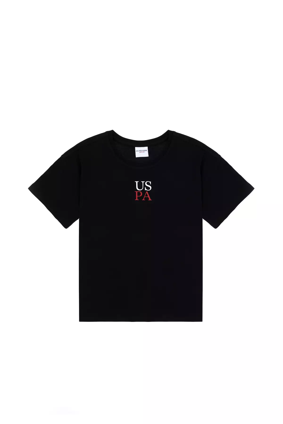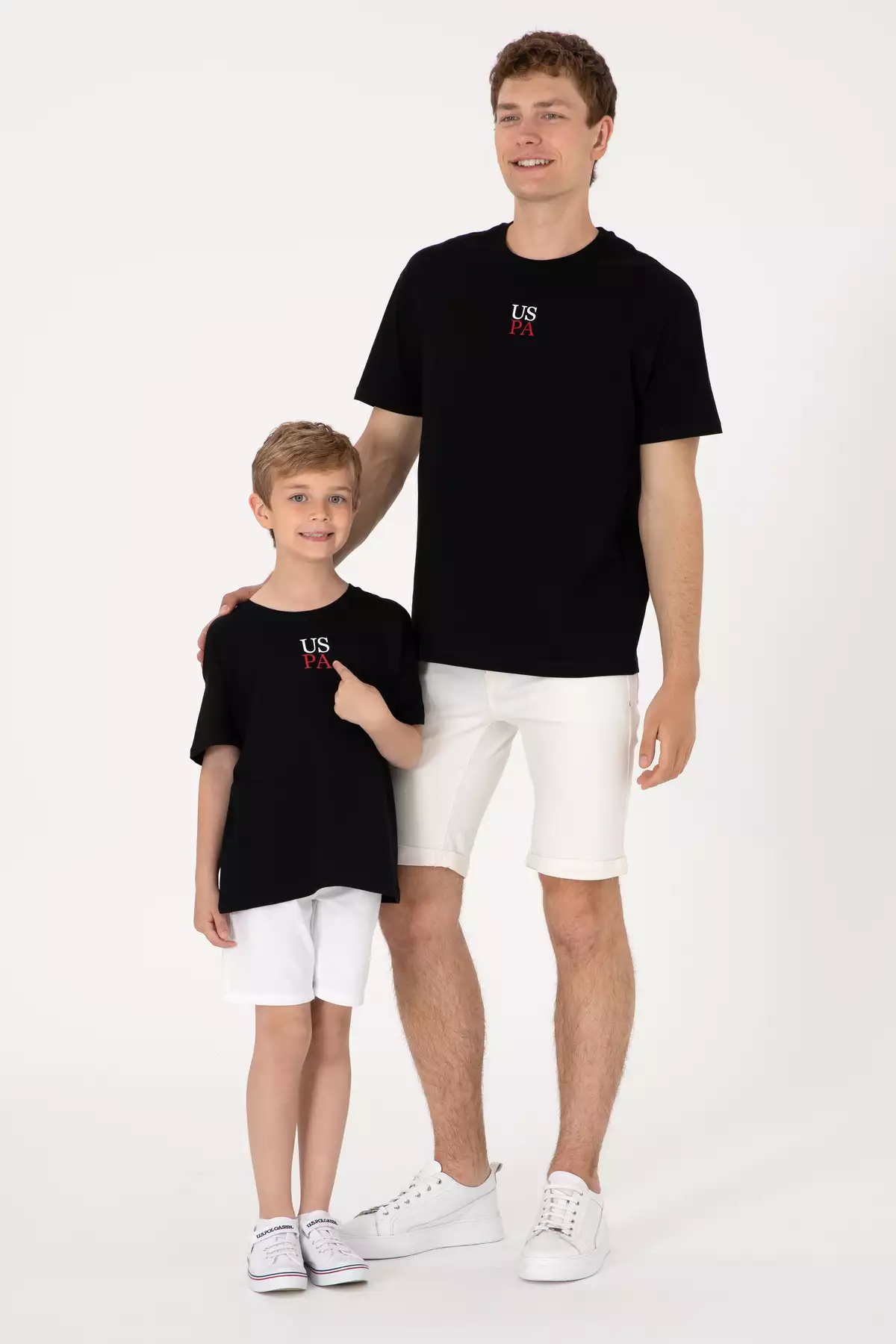 تیشرت سایز بزرگ یقه گرد مشکی مخصوص پسرانه از برند معتبر U.S. Polo Assn. طراحی شده است.