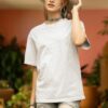 تیشرت متناسب پنبه ساده یقه گرد (راحت زنانه برند OXVİN کد 1720528040