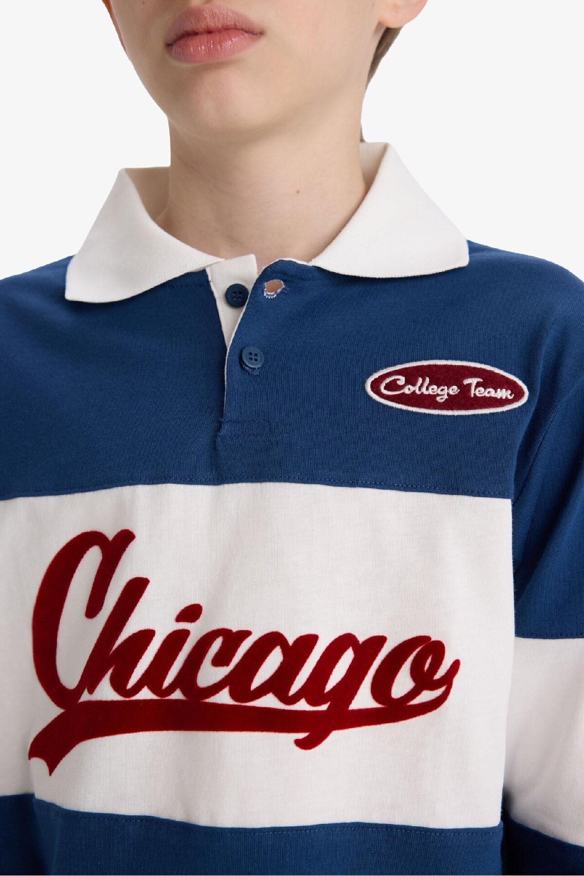 تی‌شرت مدرسه‌ای آستین‌بلند پولو یقه با طرح نازک مناسب برای پسران با برش گشاد برند Defacto - 971297055