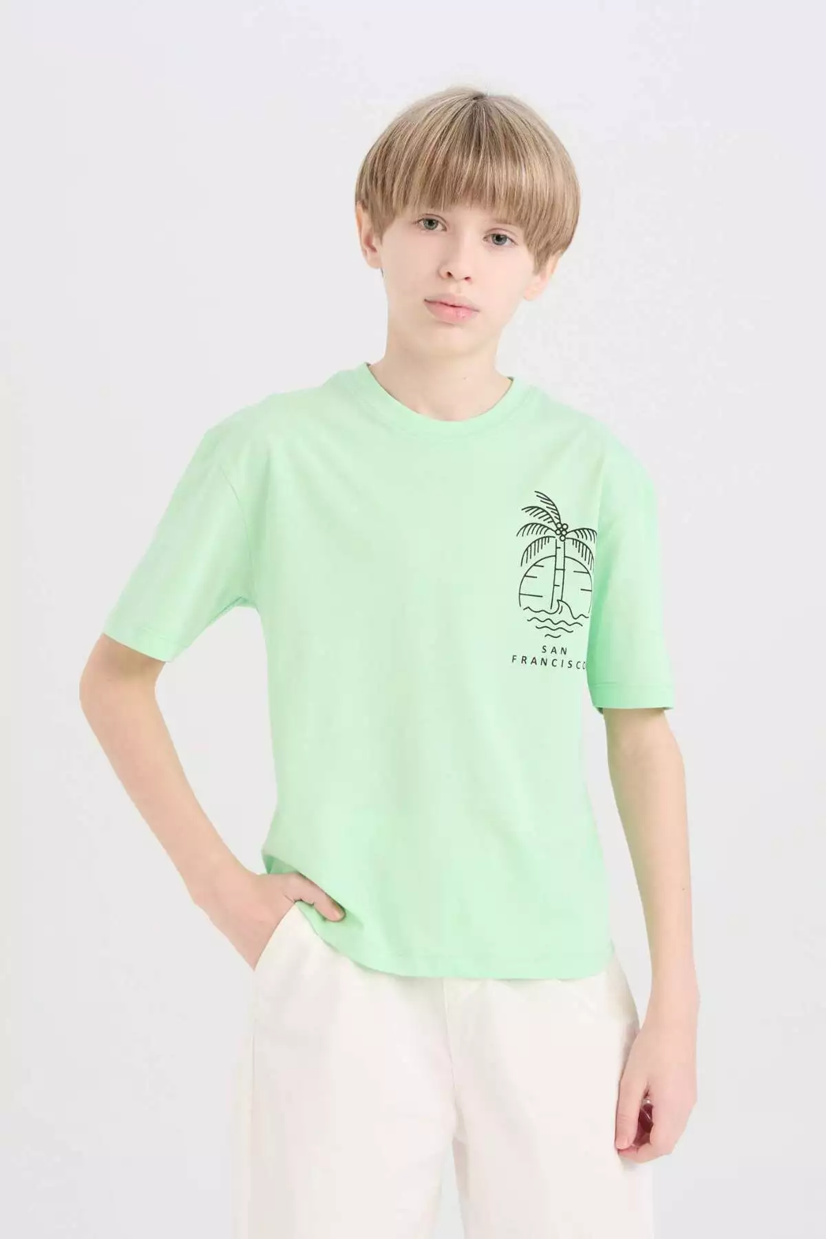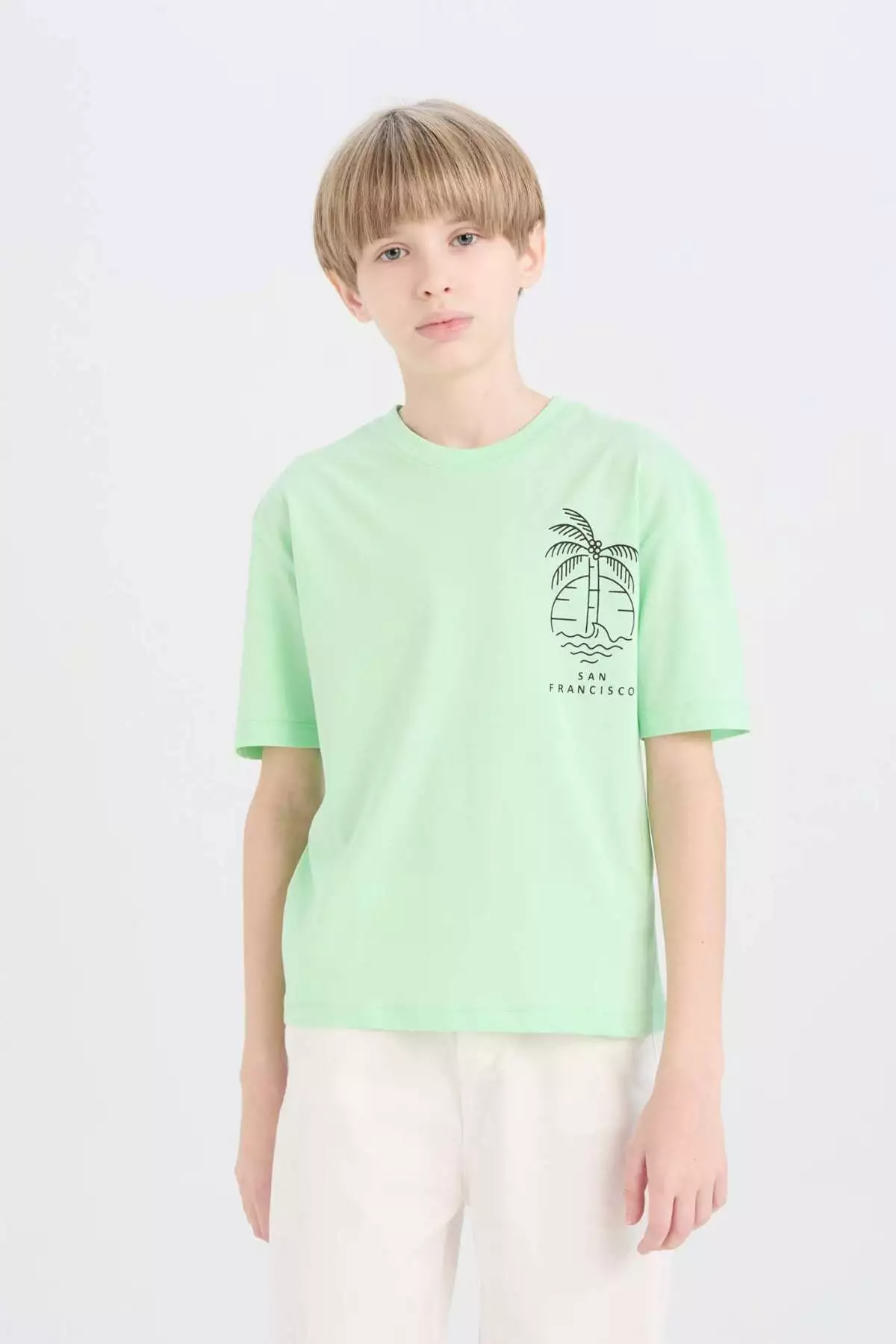 تیشرت مردانه بچهگانه با یقه گرد، آستین کوتاه و طرحدار، با اندازه بزرگ و گشاد مدل B6165A825SM برند Defacto