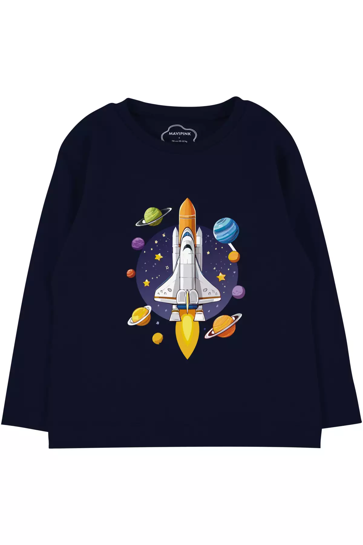 تیشرت نخی آستینبلند پسرانه با طرح فضاپیما برند Mavipink