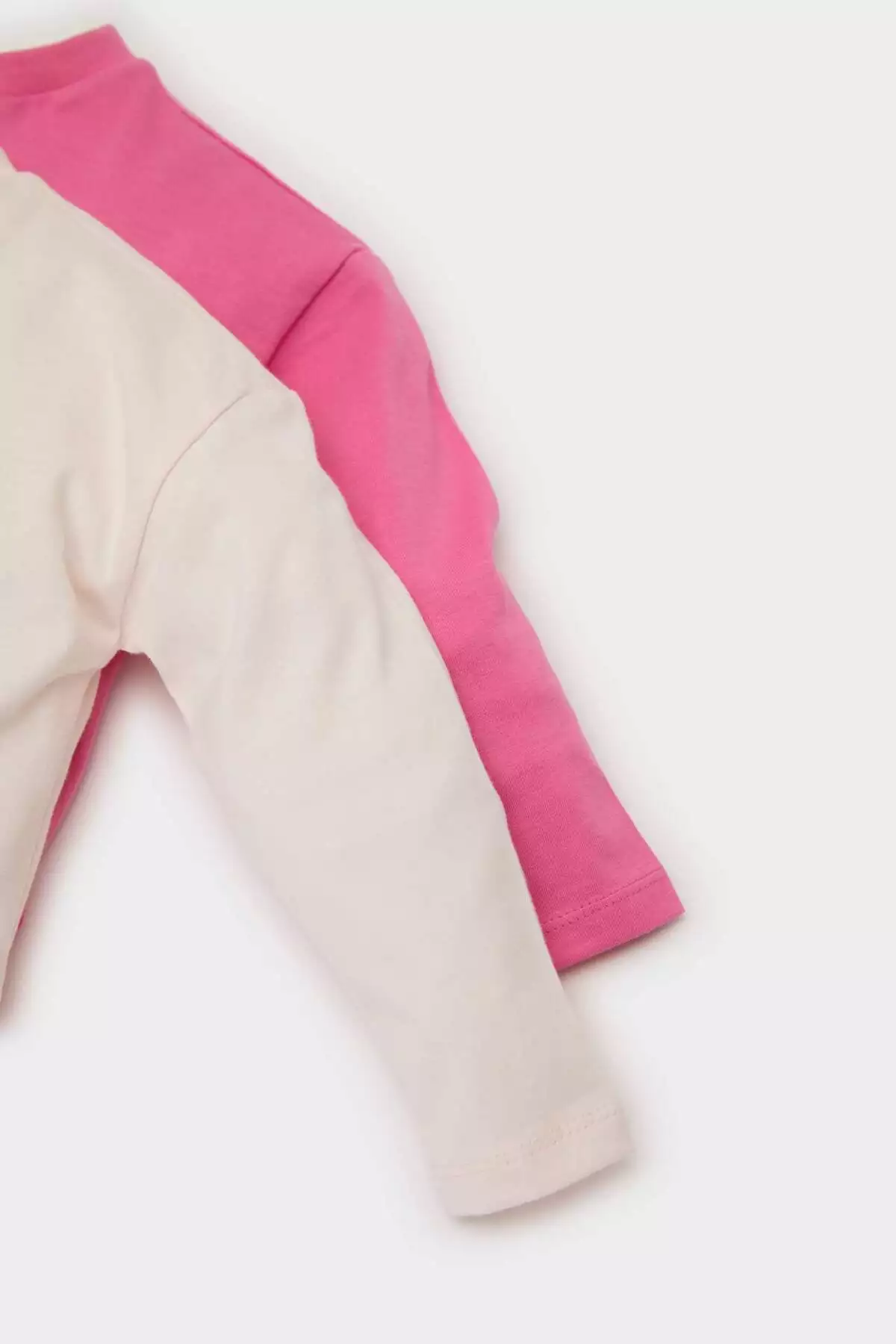 تیشرت های نوزاد دخترانه با یقه دوچرخهای و طرح دایناسور، دو عددی، آستین بلند E6362A525SP برند Defacto