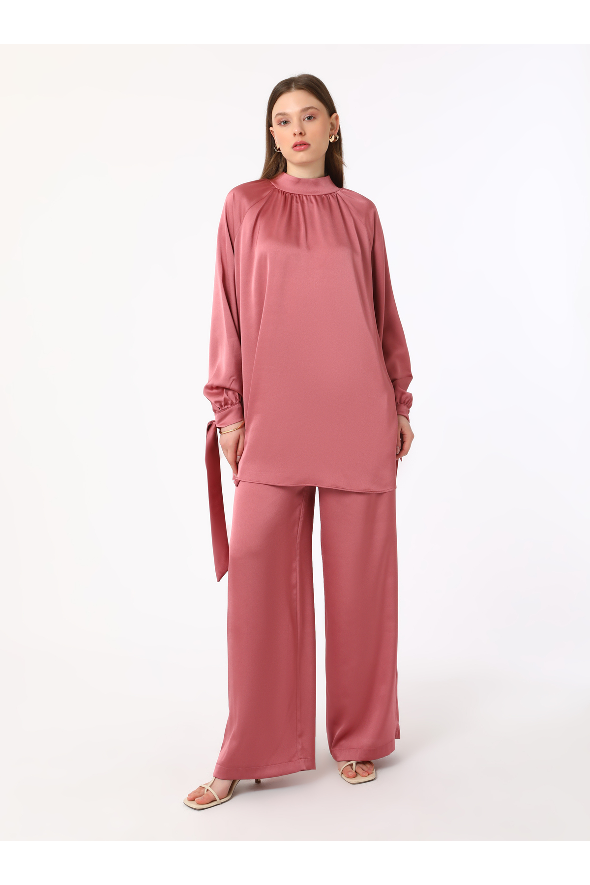 شلوار این ست دارای قد استاندارد و طراحی راحت است، که امکان حرکت آزادانه را برای شما فراهم میکند. همچنین، نبود جیب بر روی شلوار، به سادگی و زیبایی آن افزوده است.
