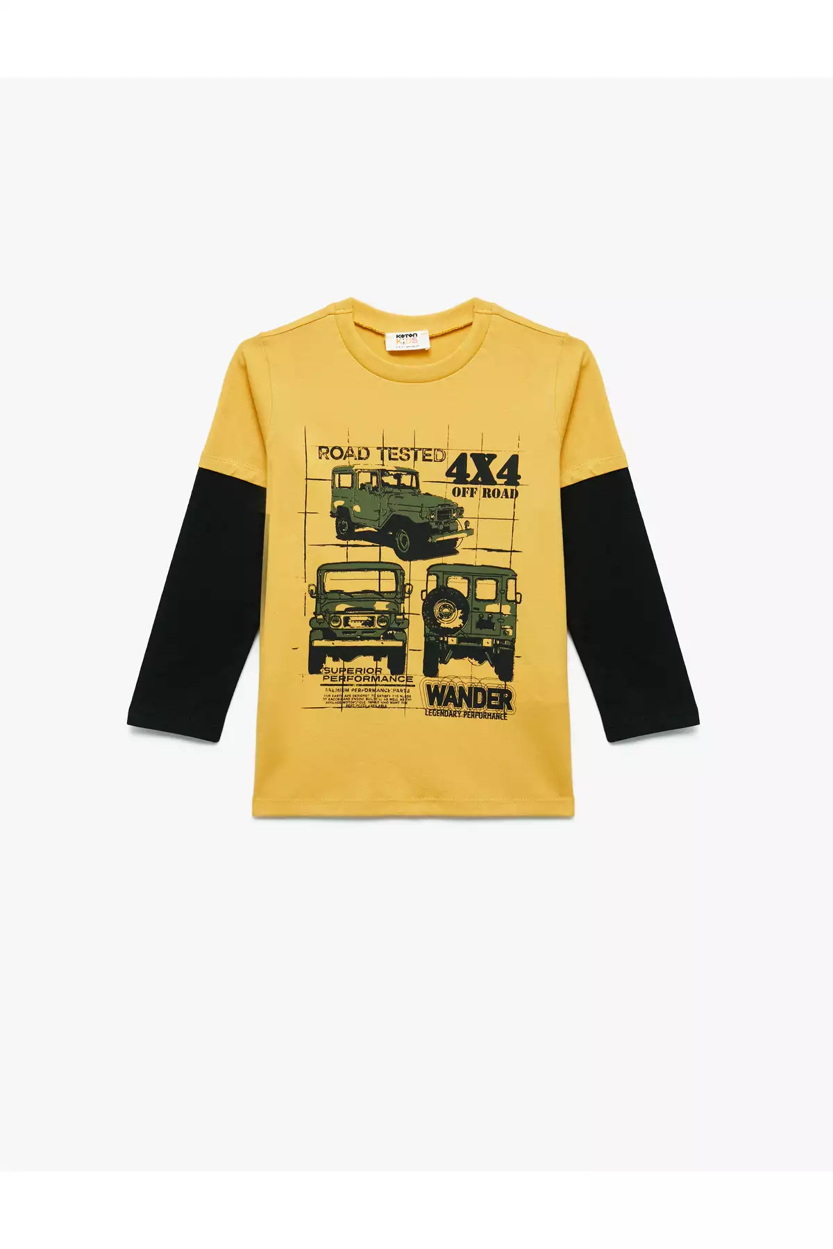 تیشرت پنبهای با طرح اتومبیل و یقه گرد، آستیندار بلند برند Koton