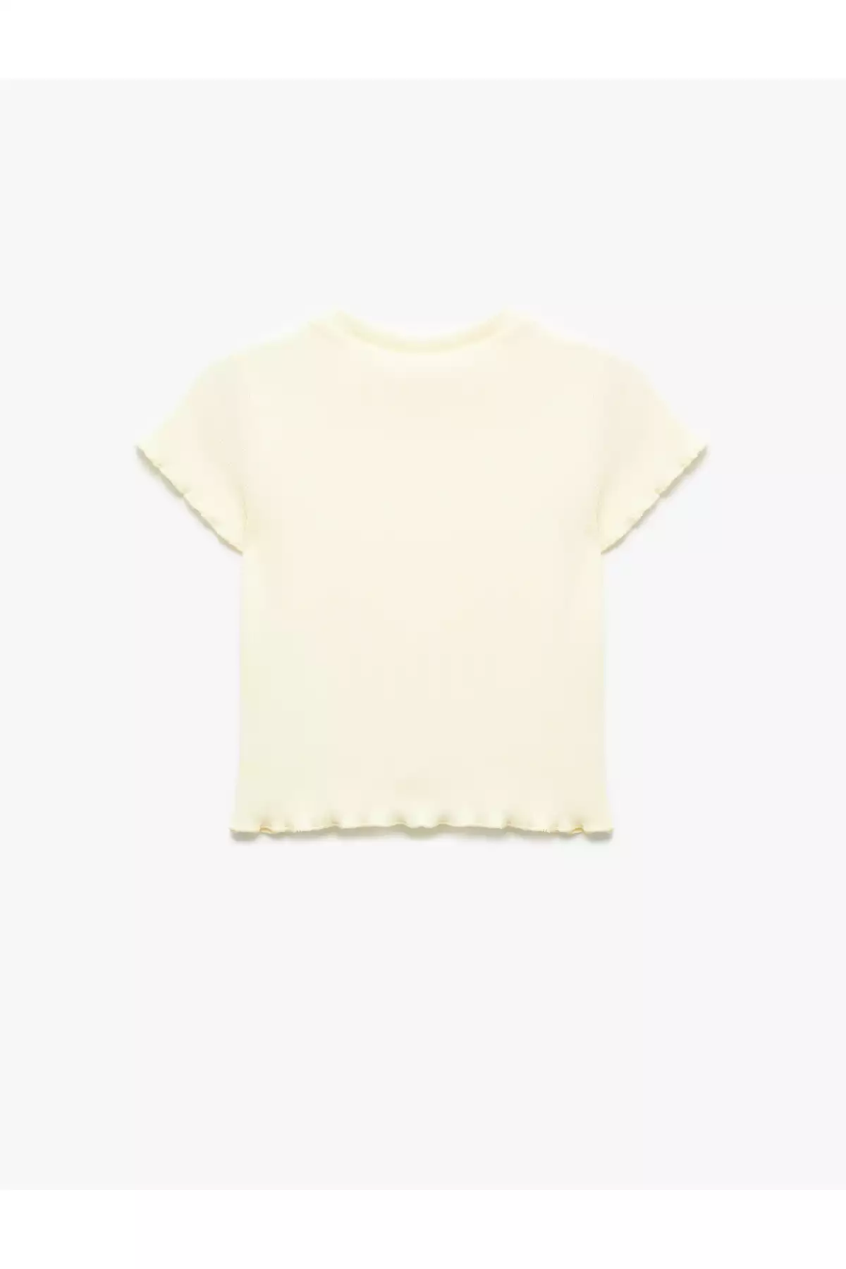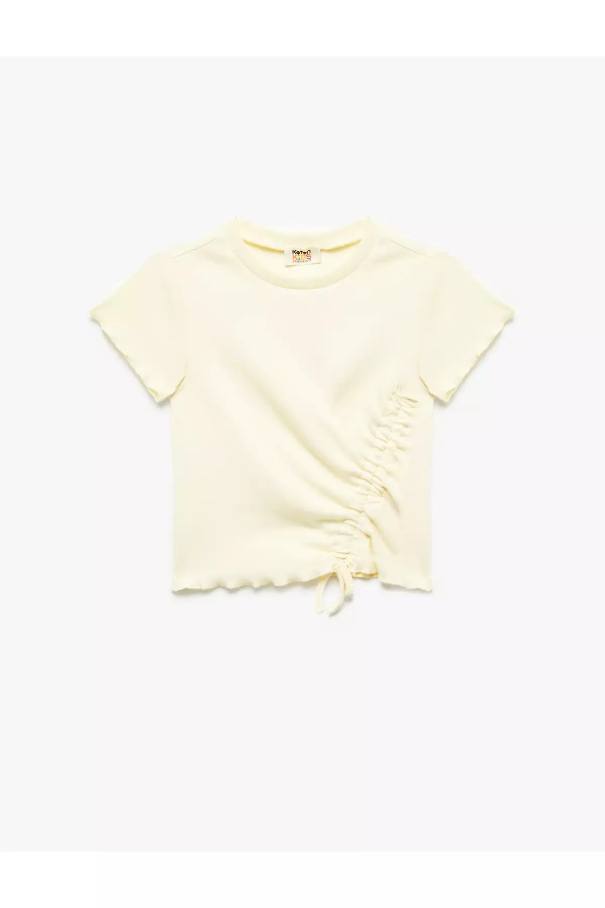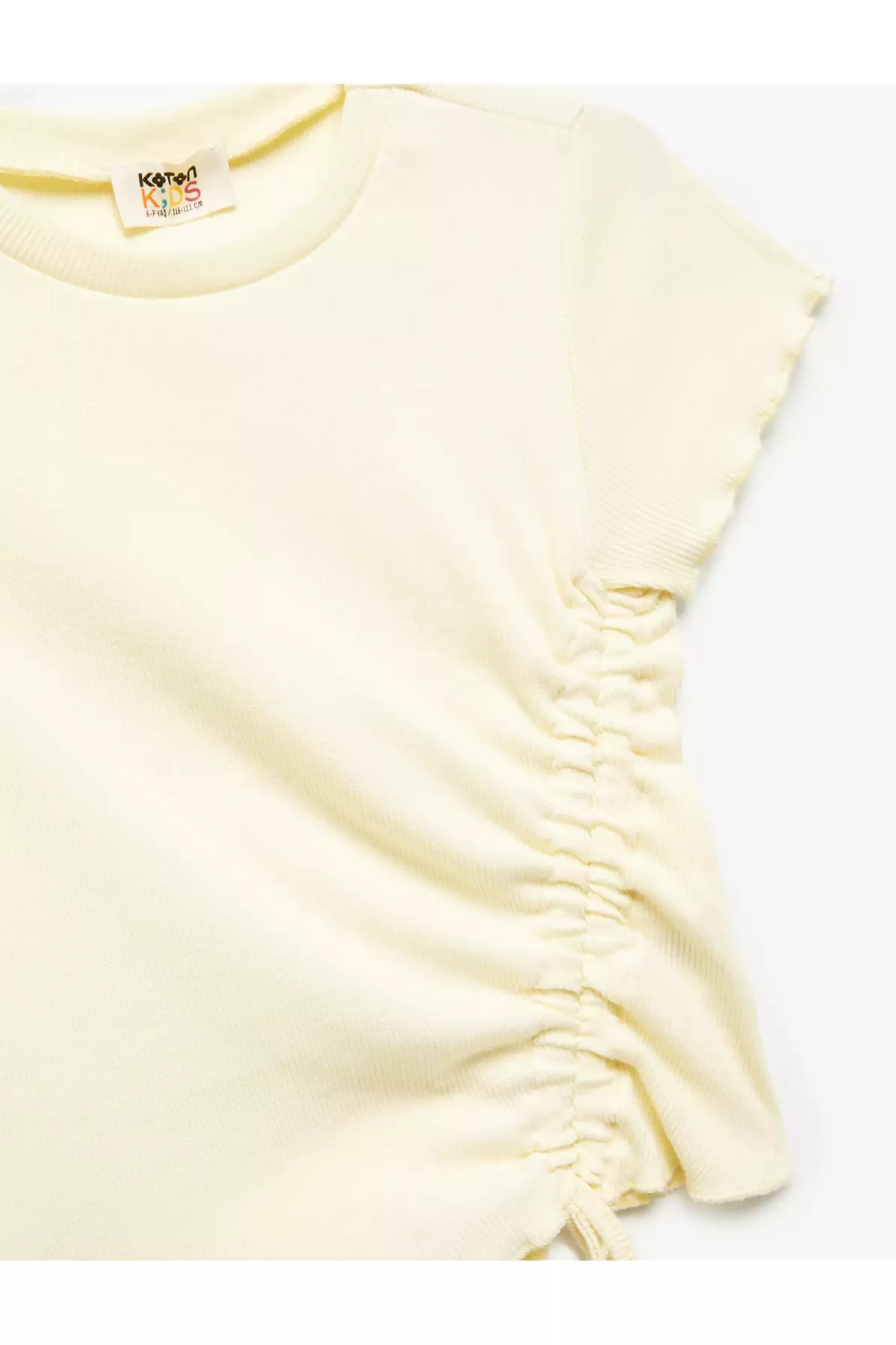 تیشرت کراپ کوتاه آستین‌دار یقه گرد با جزئیات چین دار پنبه‌ای برند Koton - 944546041
