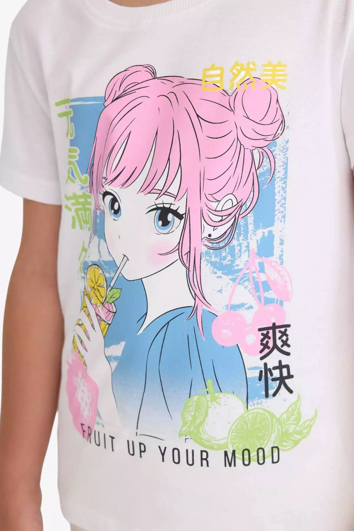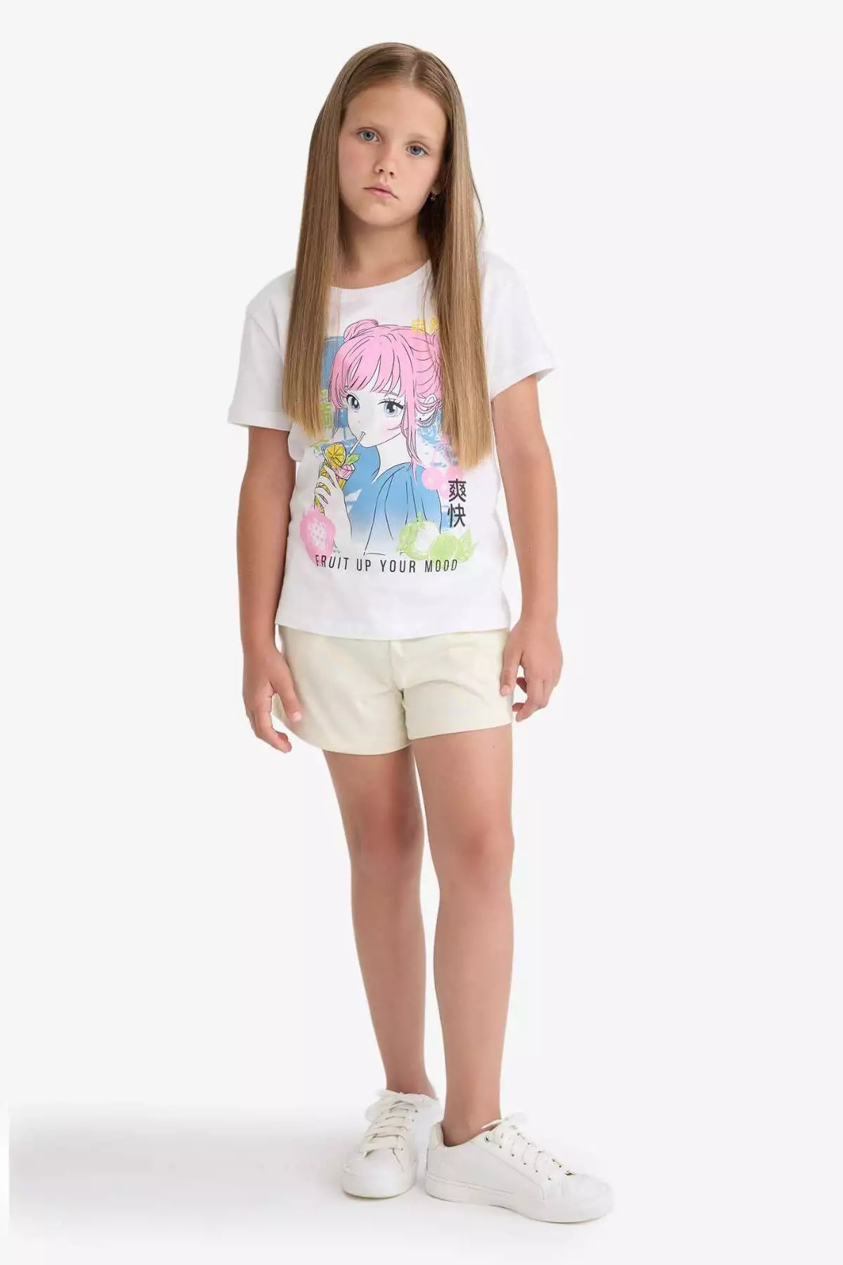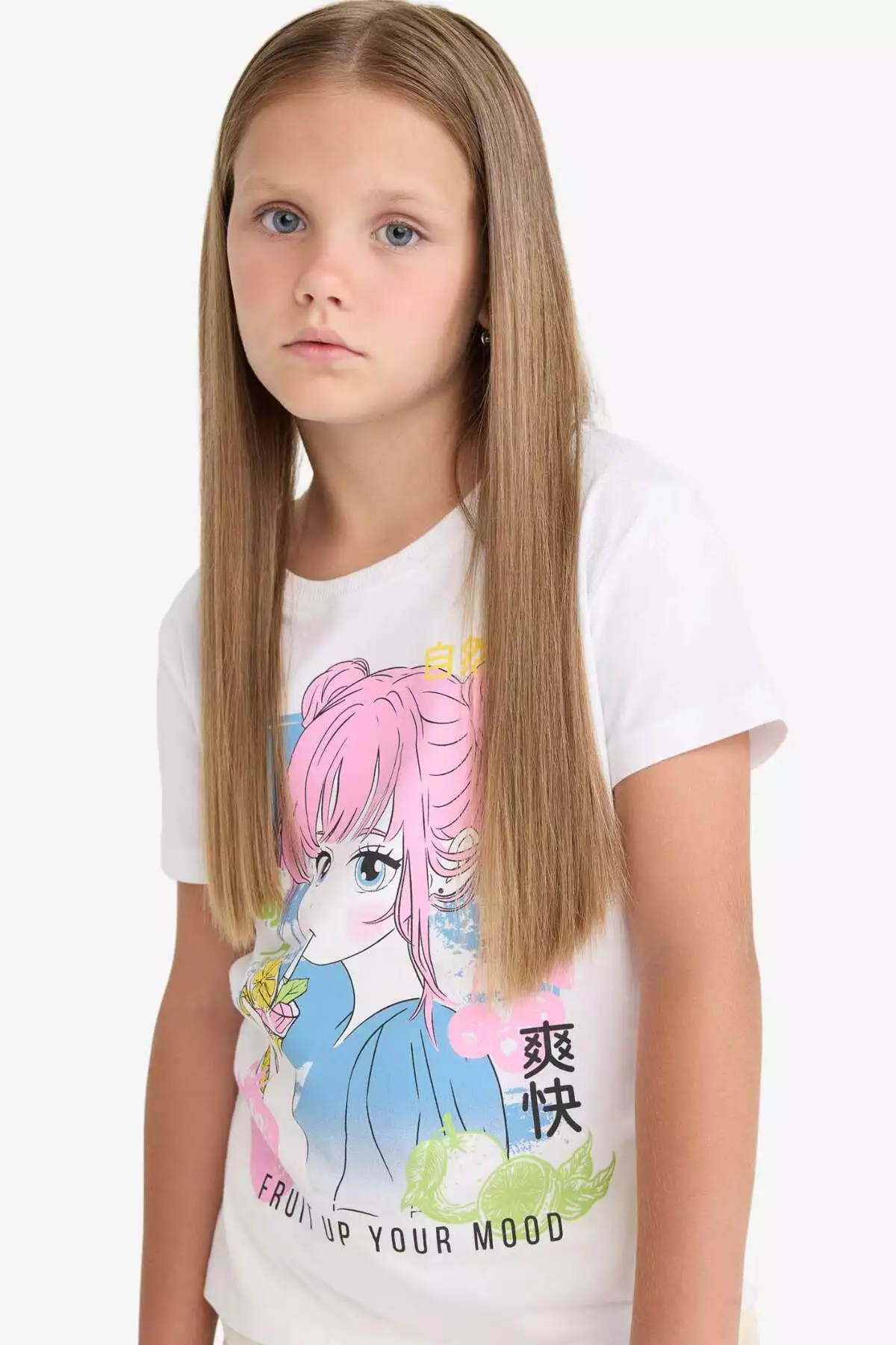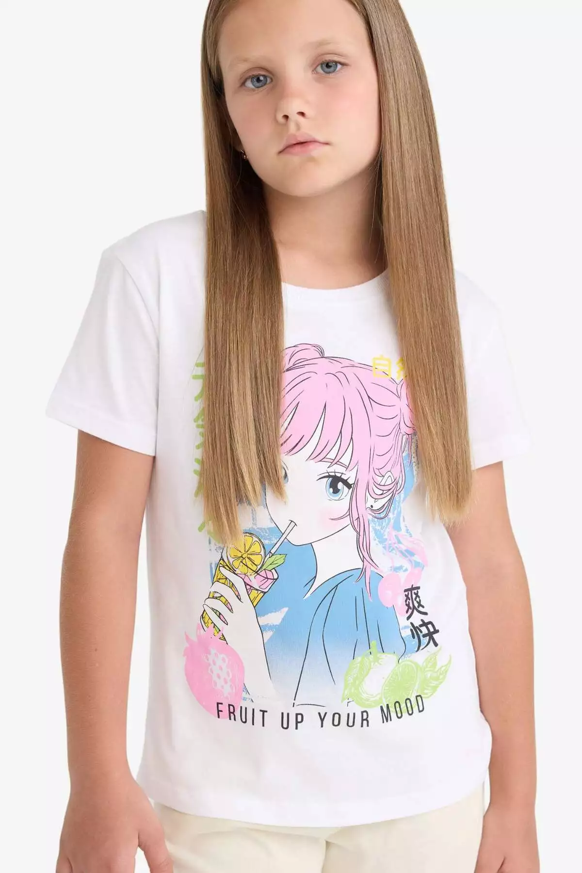 تیشرت کوتاهدست با یقه دوچرخهای و طرح انیمه برای دختر بچه برند Defacto