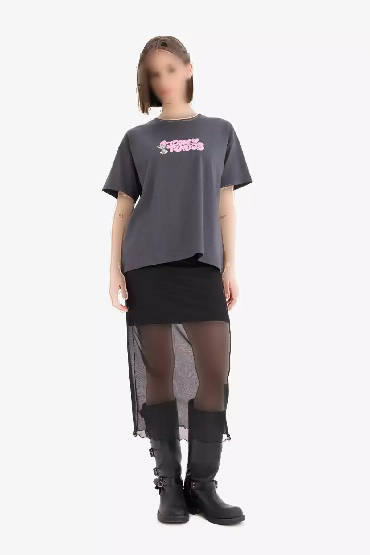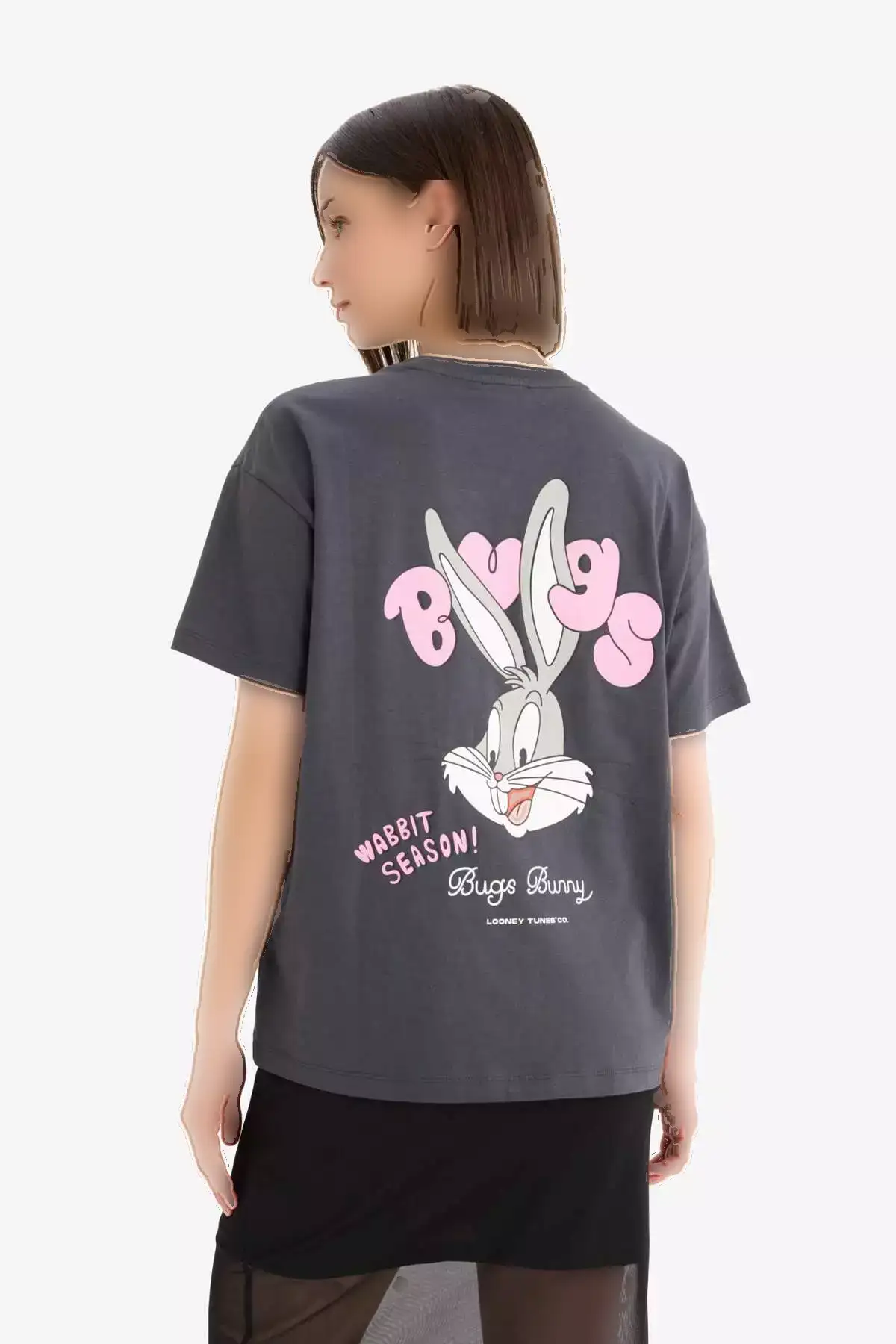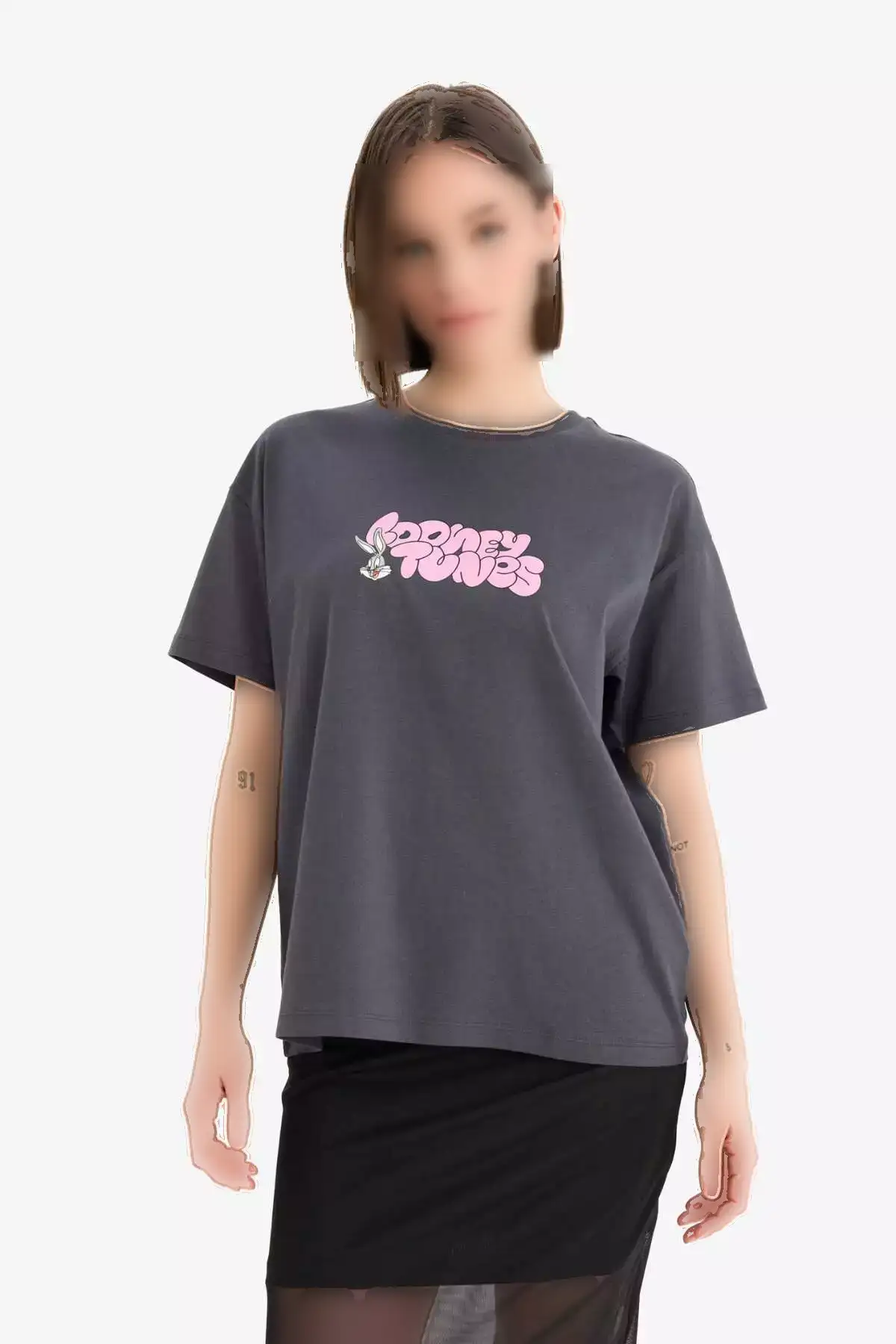 تی‌شرت کوتاه‌كم Sleeves طراحی شده با تصویر بزرگ لوونی تونز مدل E9847AX25AU برند Defacto - 969224164