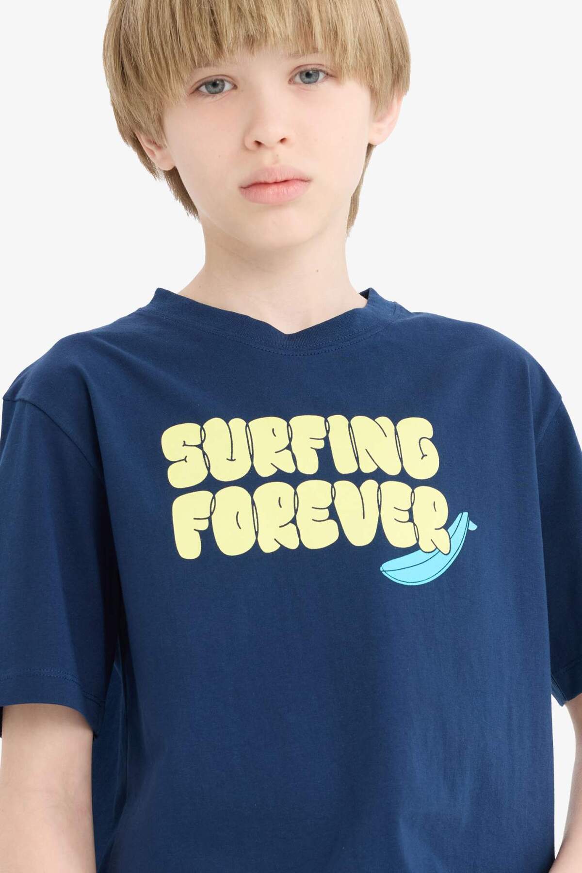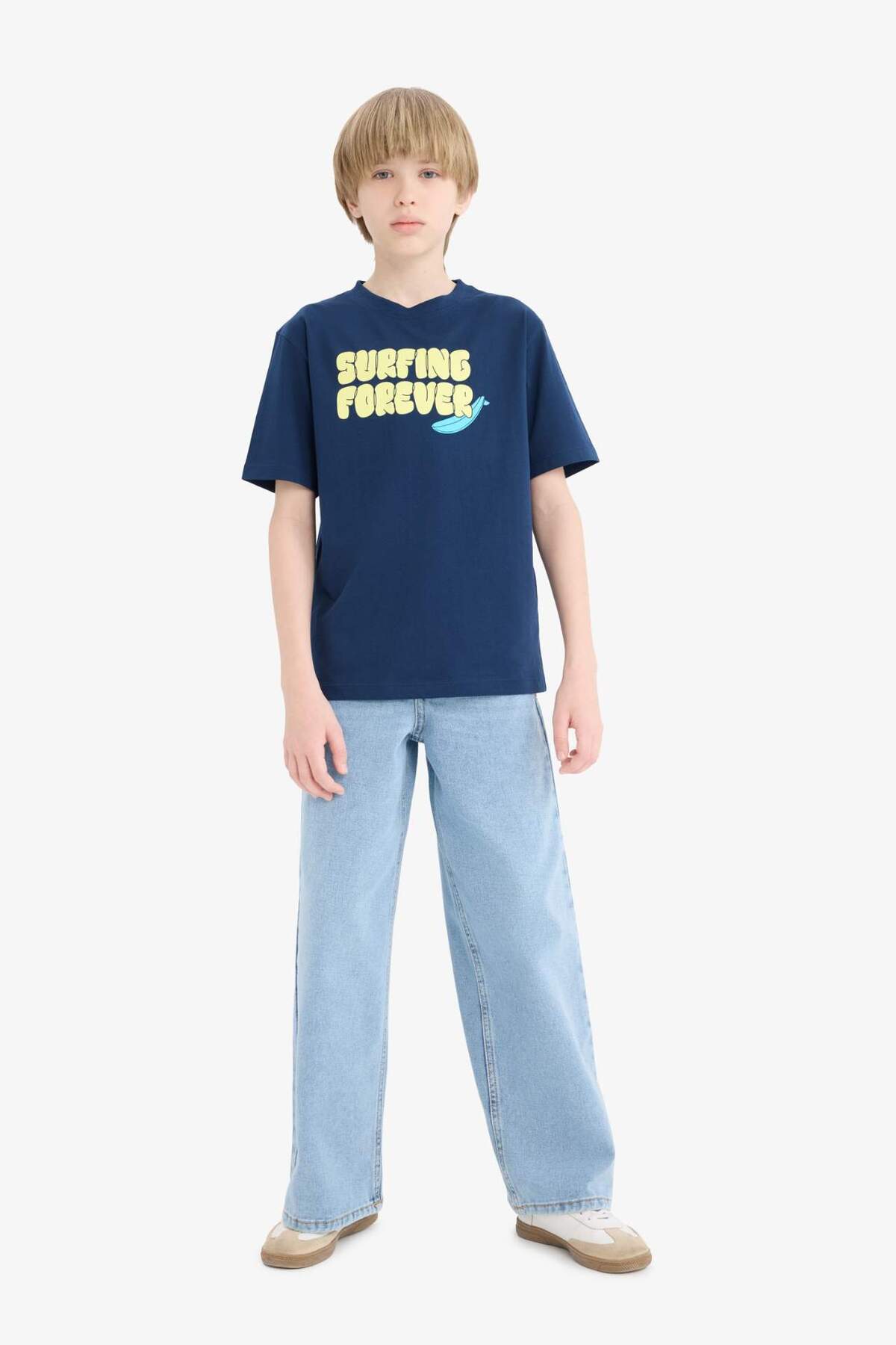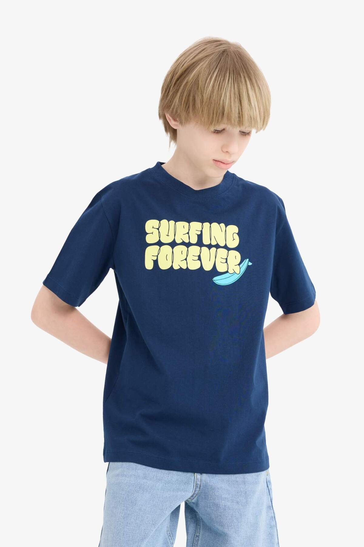 تیشرت کوتاه آستیندار با یقه دوچرخهای و طرح چاپی برای پسر بچهها مدل E0183A825HS برند Defacto
