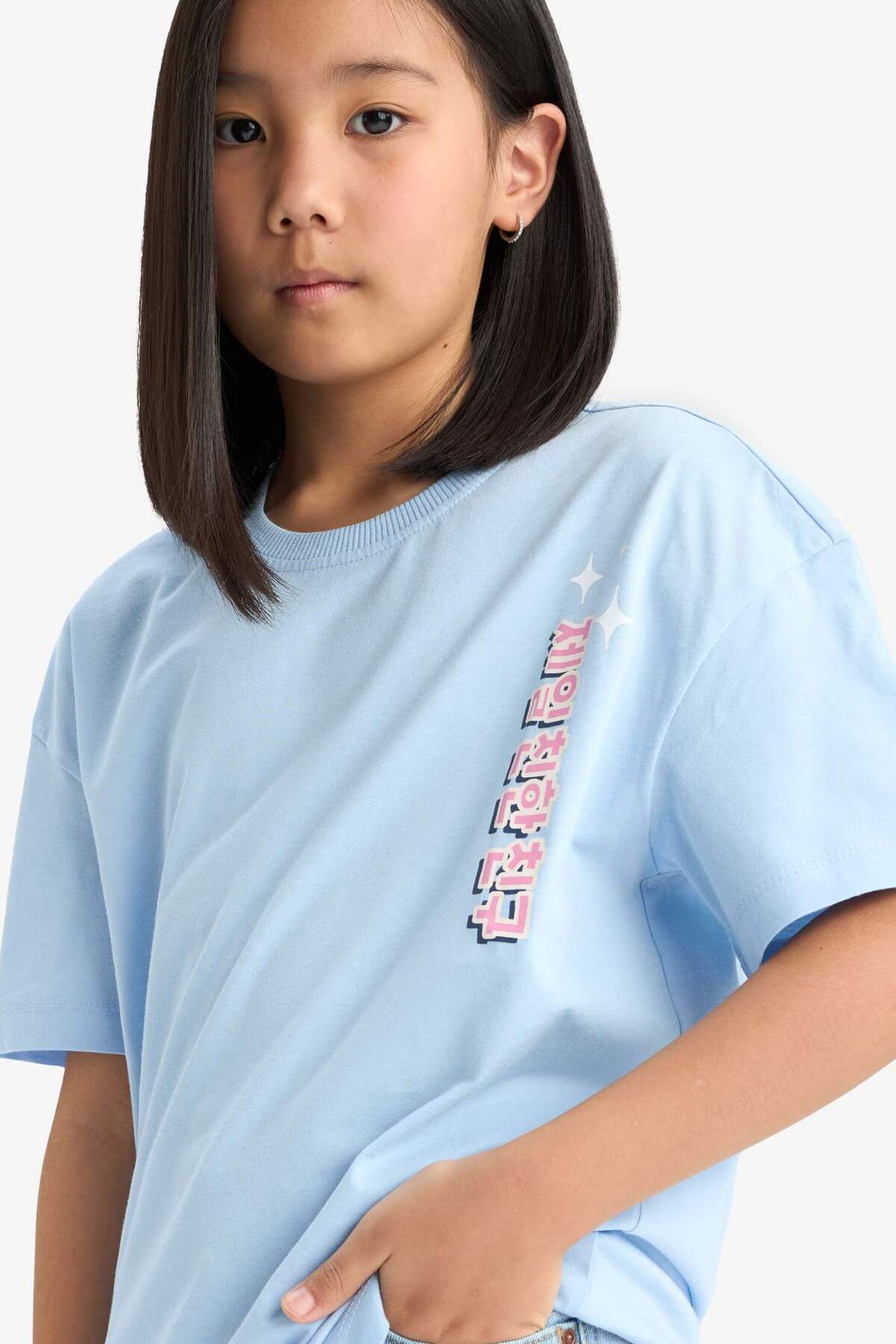 تیشرت کوتاه آستیندار دوچرخهای دخترانه با طراحی گرافیکی در پشت و برش بزرگ E0367A825SM برند Defacto