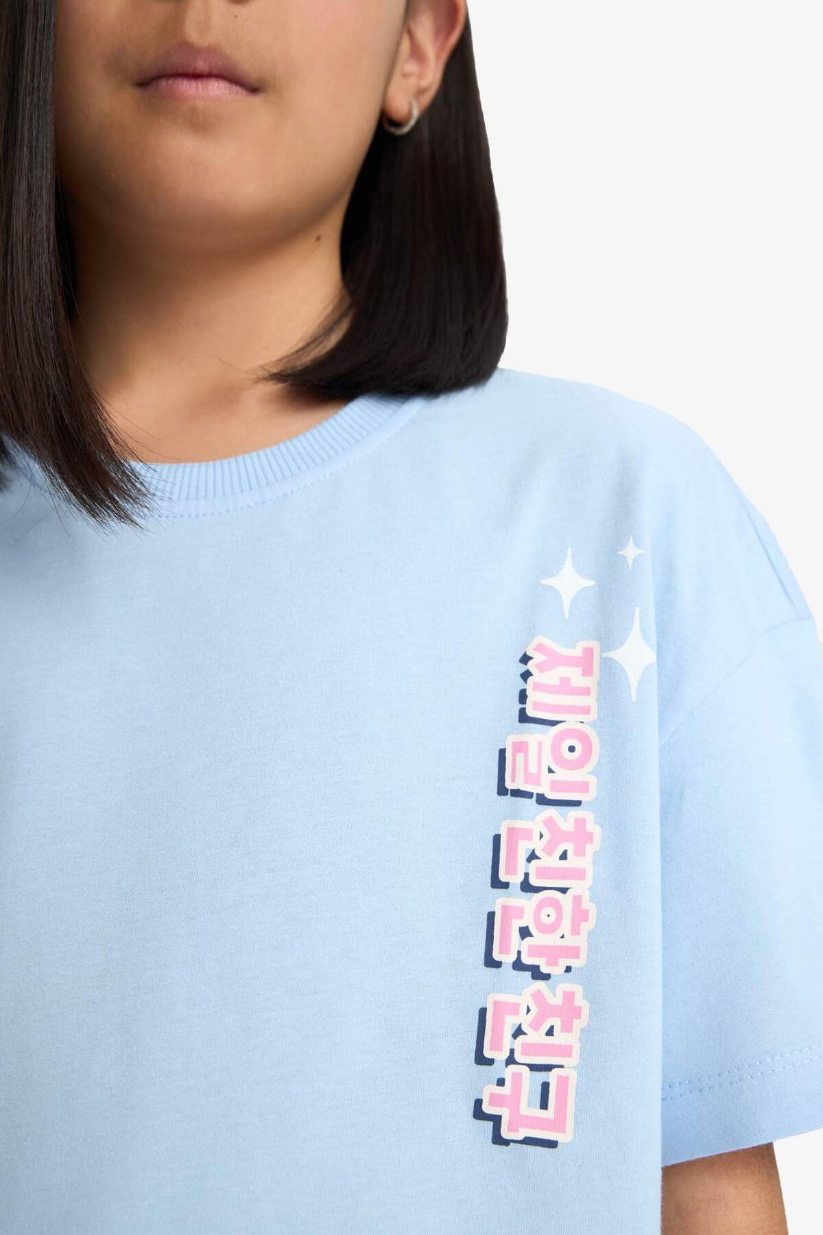 این تیشرت کوتاه آستیندار دخترانه از برند Defacto با طراحی گرافیکی منحصر به فرد در پشت، انتخابی ایدهآل برای فصلهای گرم سال است.
