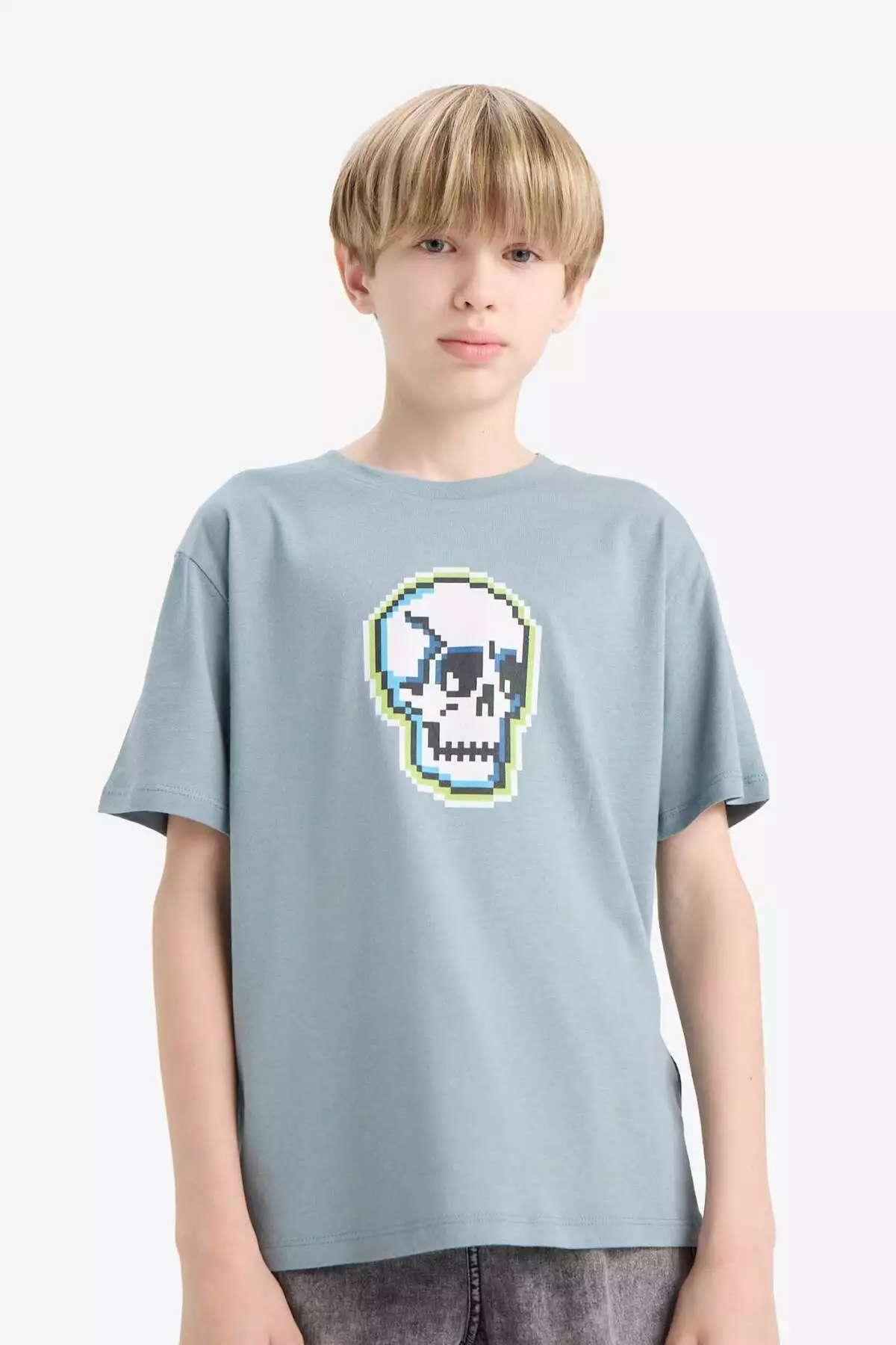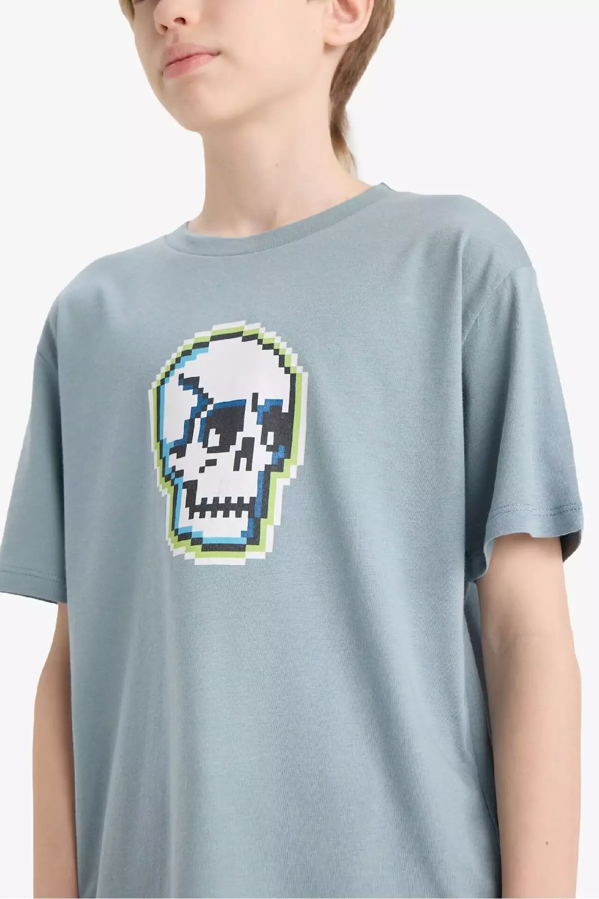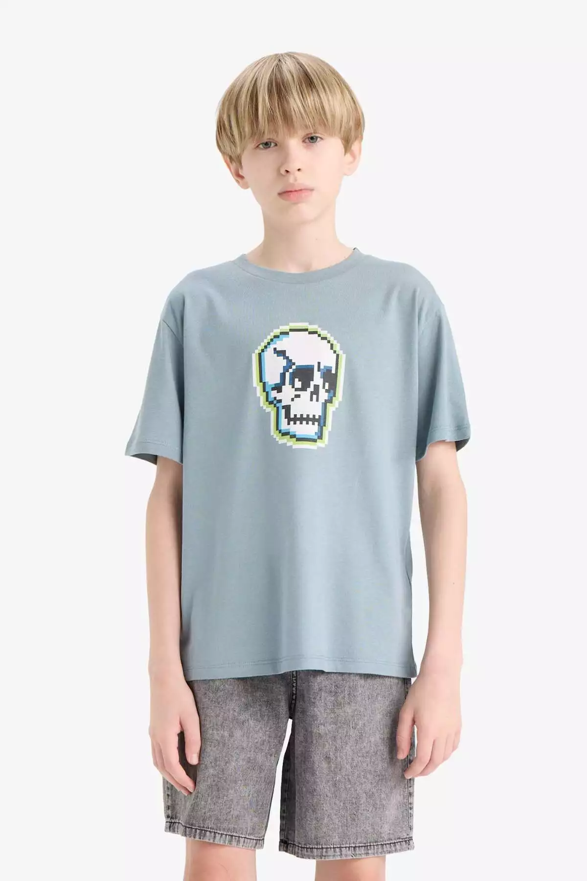 تیشرت کوتاه آستین با یقه دوچرخهای برای پسران با چاپ E4161A825SM برند Defacto