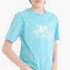 طرح چاپی روی این تیشرت، آن را به یک انتخاب جذاب برای استفاده روزمره تبدیل کرده است. رنگ فیروزهای آن نیز به راحتی با بسیاری از شلوارها و لباسها هماهنگ میشود.