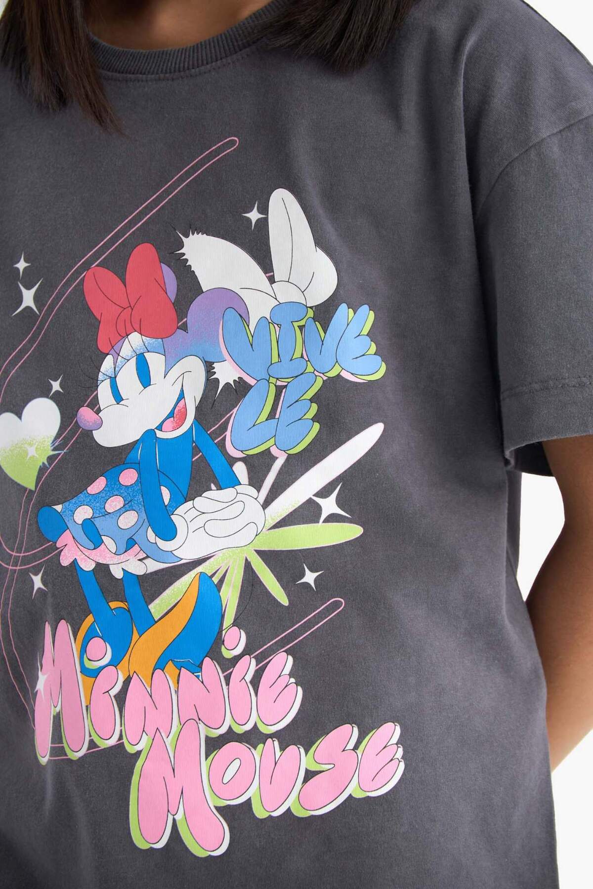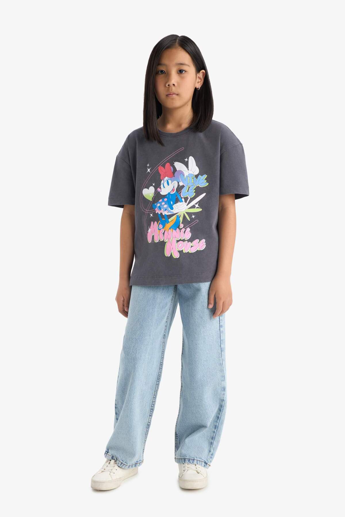 تیشرت کوتاه آستین دخترانه دیزنی میکی و مینی با یقه گرد و طراحی گشاد E2617A825SM برند Defacto