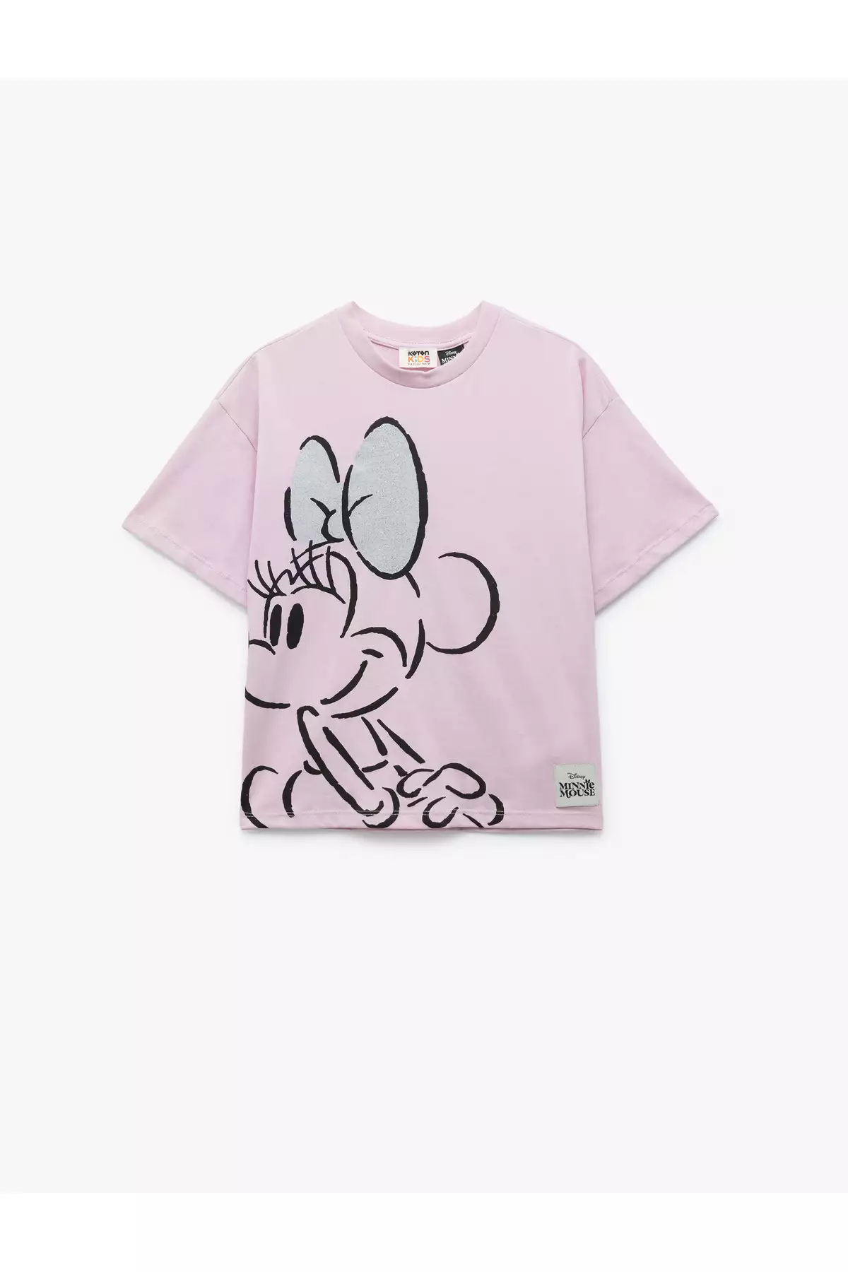 تیشرت کوتاهÂستین با طرح چاپی و پولکدار مینی موس با مجوز برند Koton
