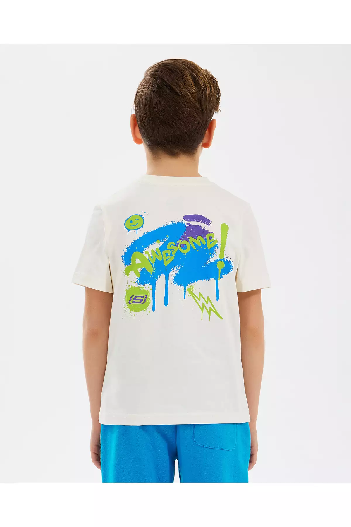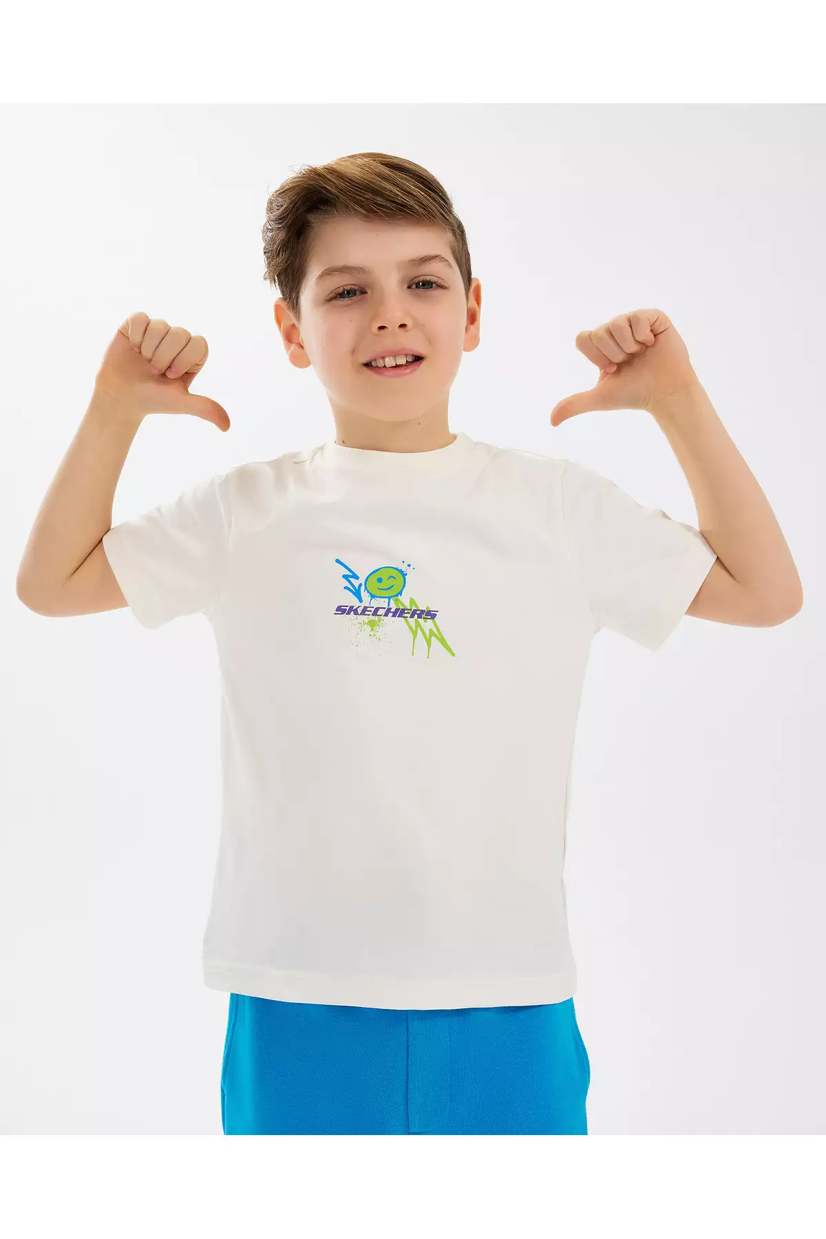 تیشرت گرافیکی بزرگ مردانه بچهگانه رنگ سفید روشن کد Sk2510030-102 برند Skechers