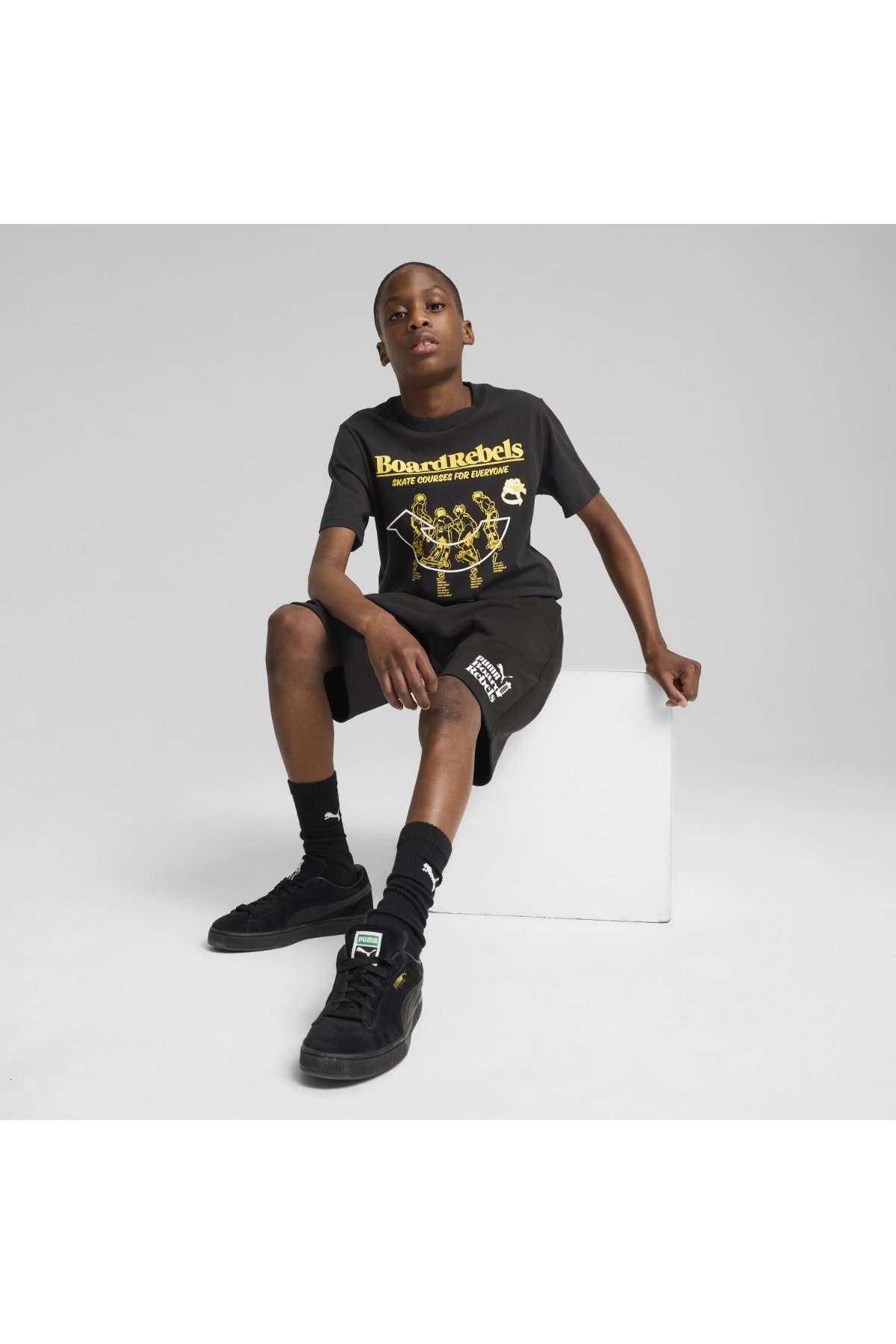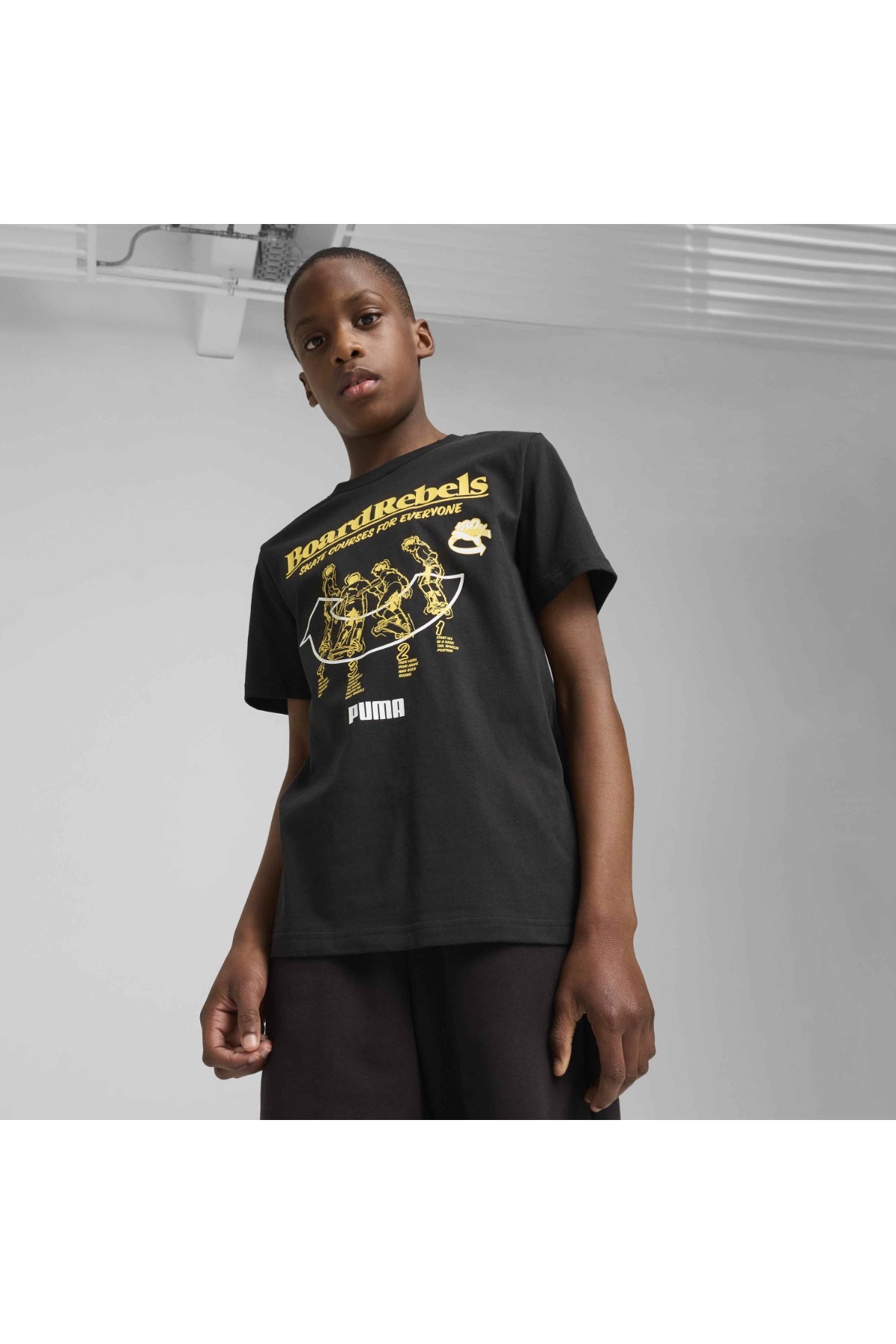 تیشرت گرد یقه مشکی با طرح گرافیکی دهه ۹۰ میلادی برای کودکان برند Puma