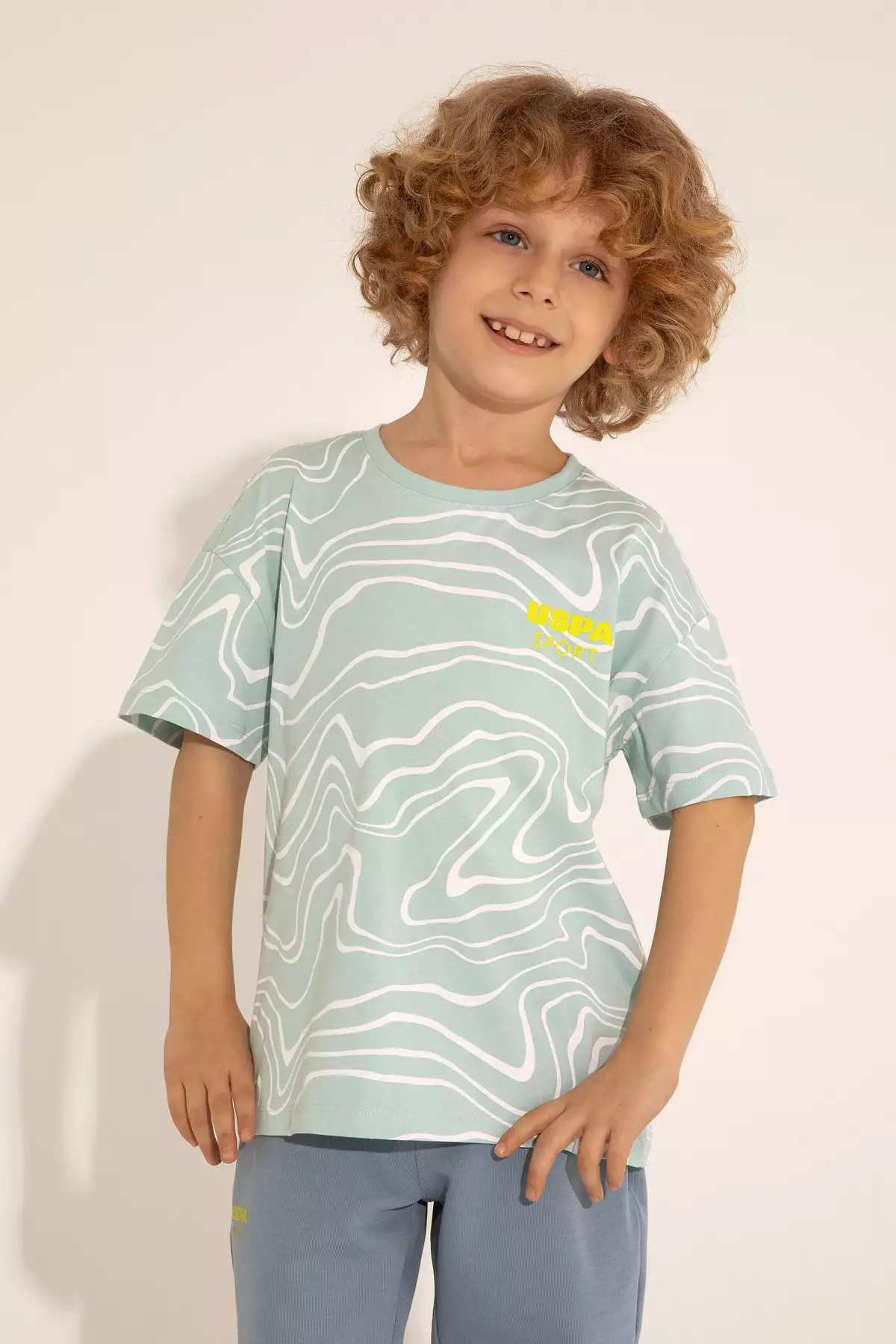 تیشرت یقه دوچرخهای به رنگ سبز آبی برای پسران 50281838-VR048 برند U.S. Polo Assn.