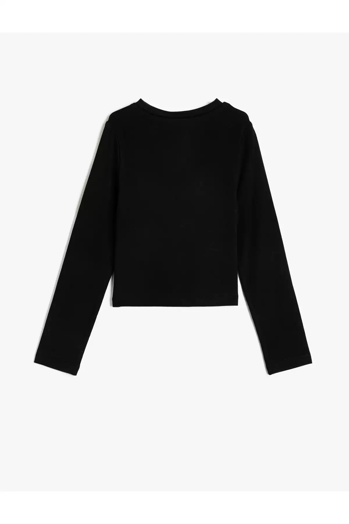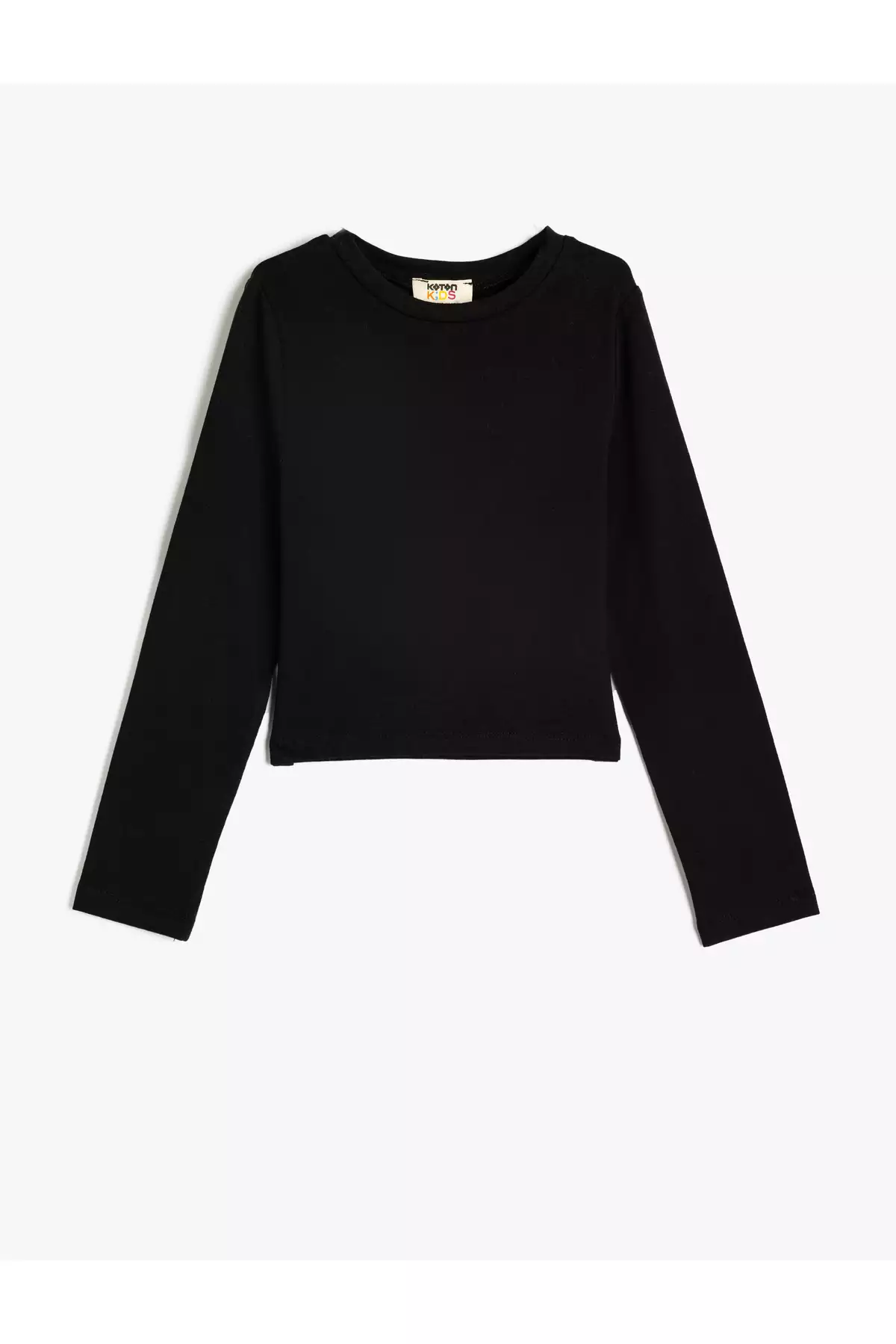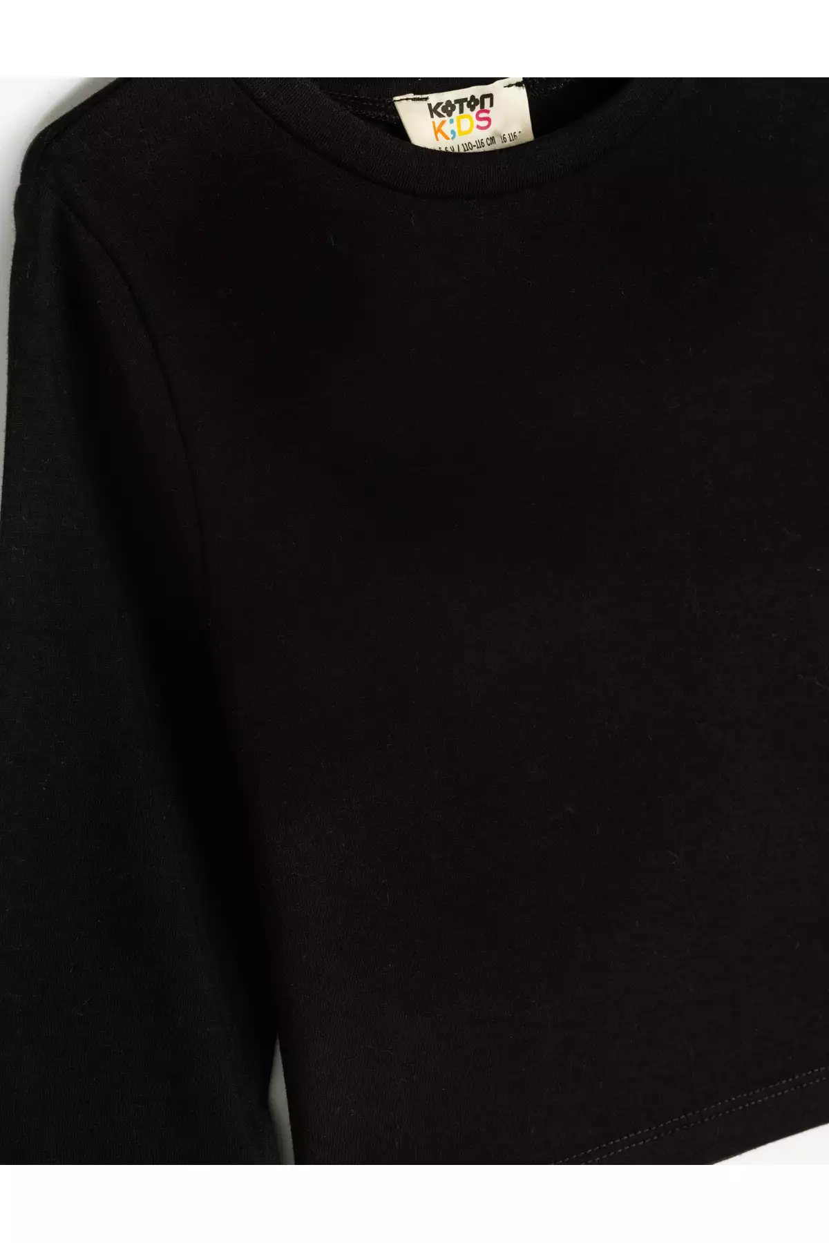 تیشرتBasic Crop با آستین بلند و پارچهی نخی برند Koton