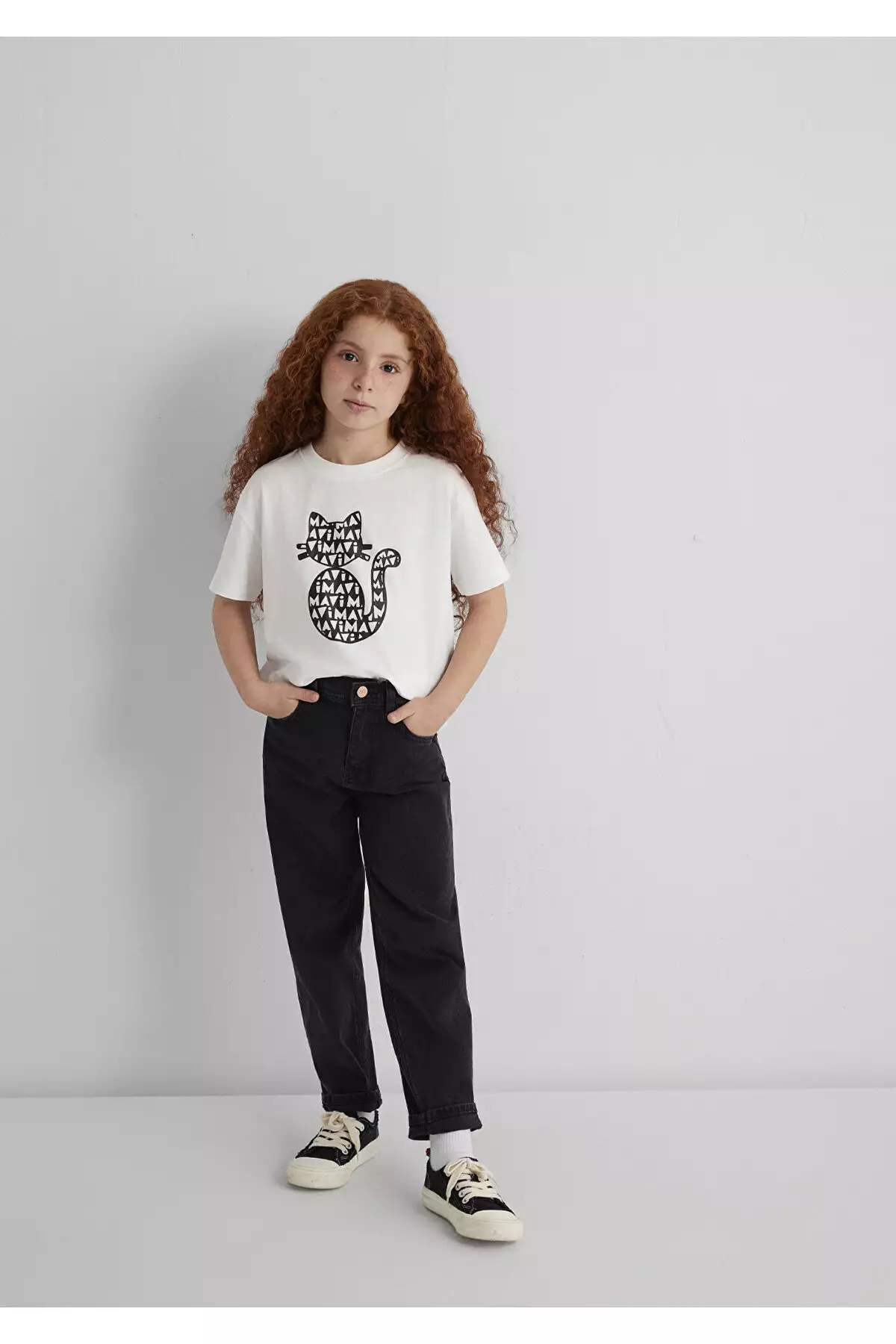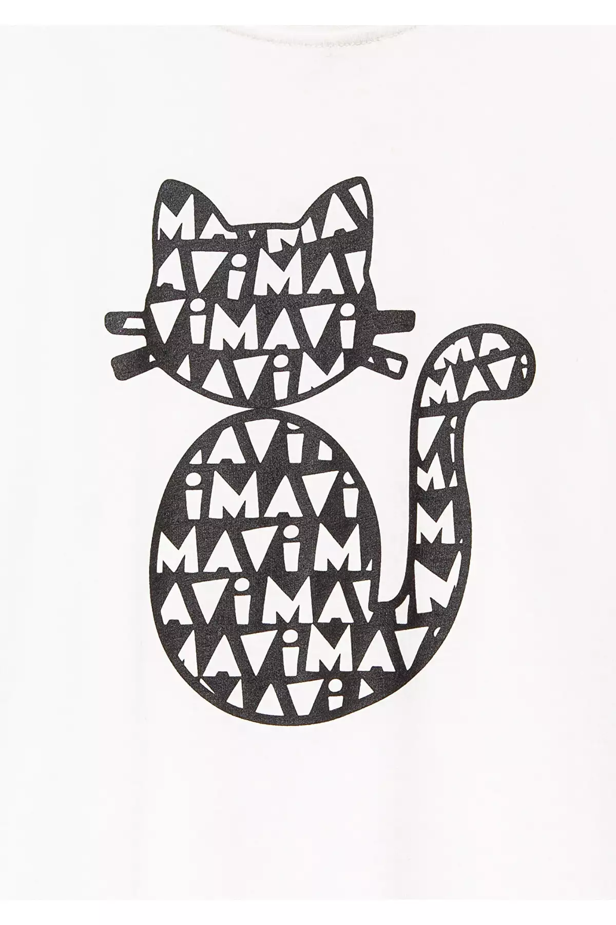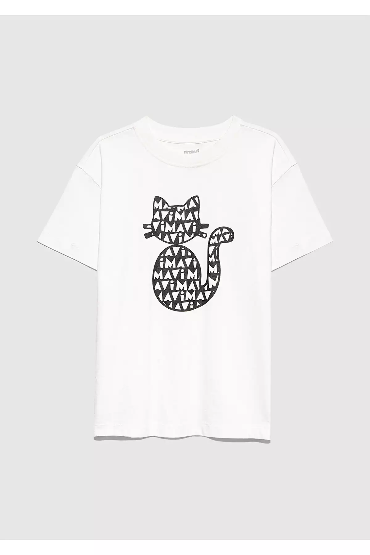 تی‌شirt کتان با طرح گربه‌ای رنگ کرم روشن / برش آسان و راحت 7610360-70057 برند Mavi – 968222265