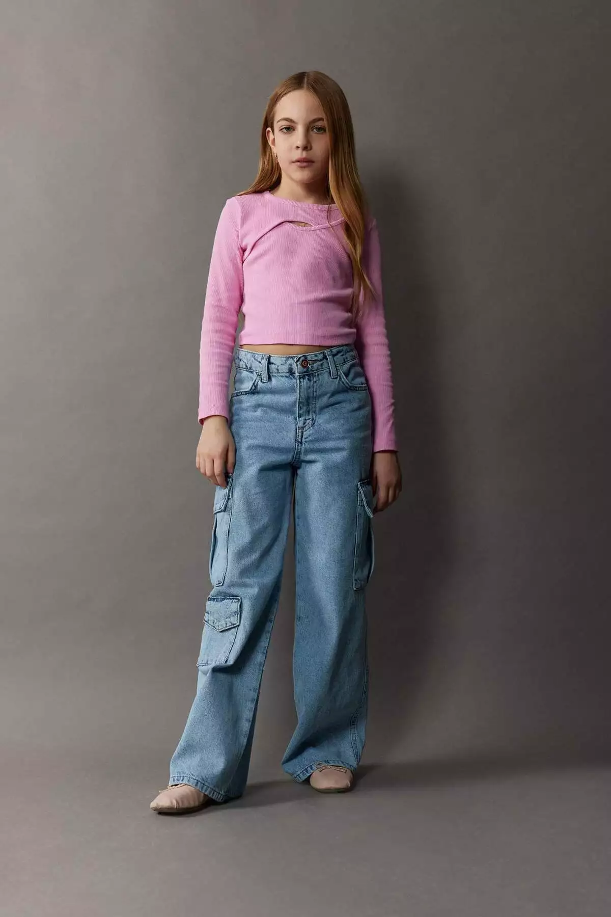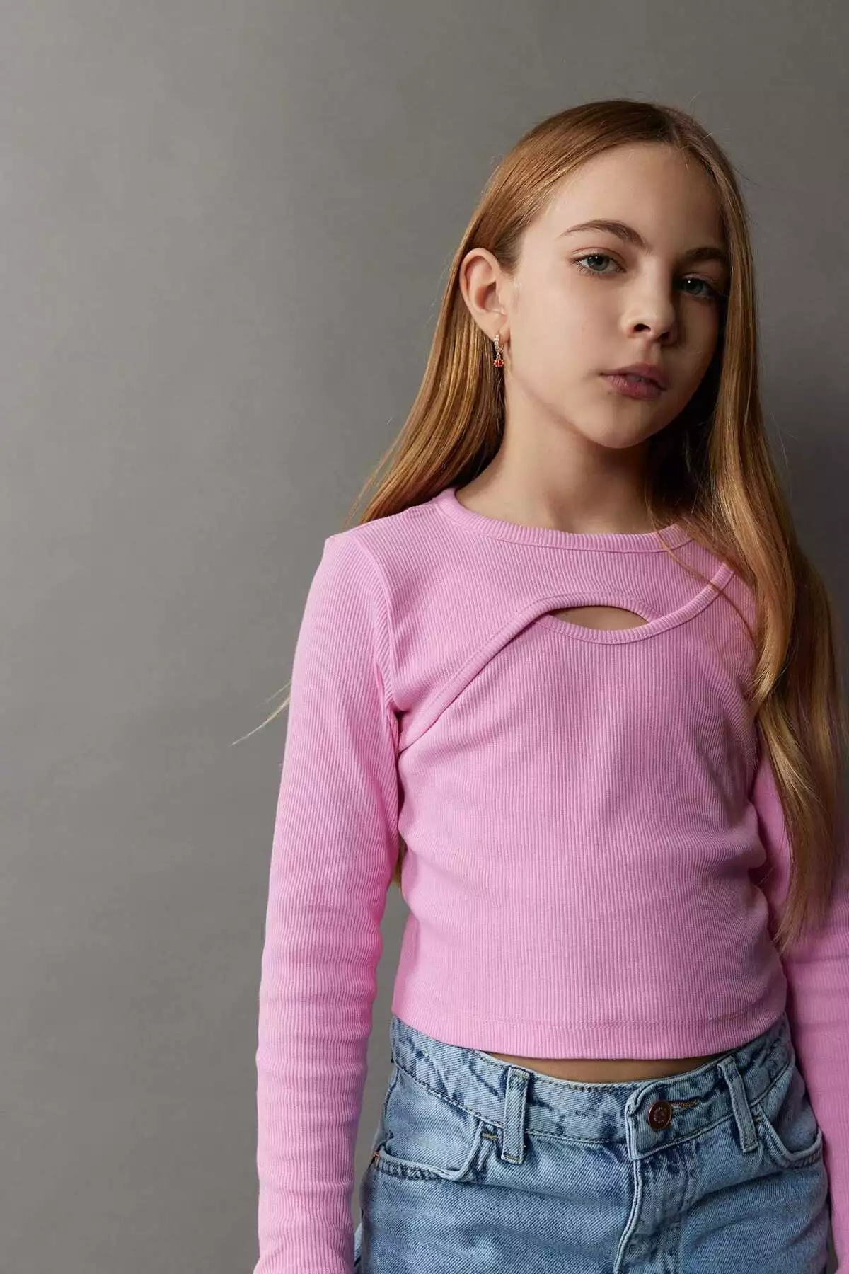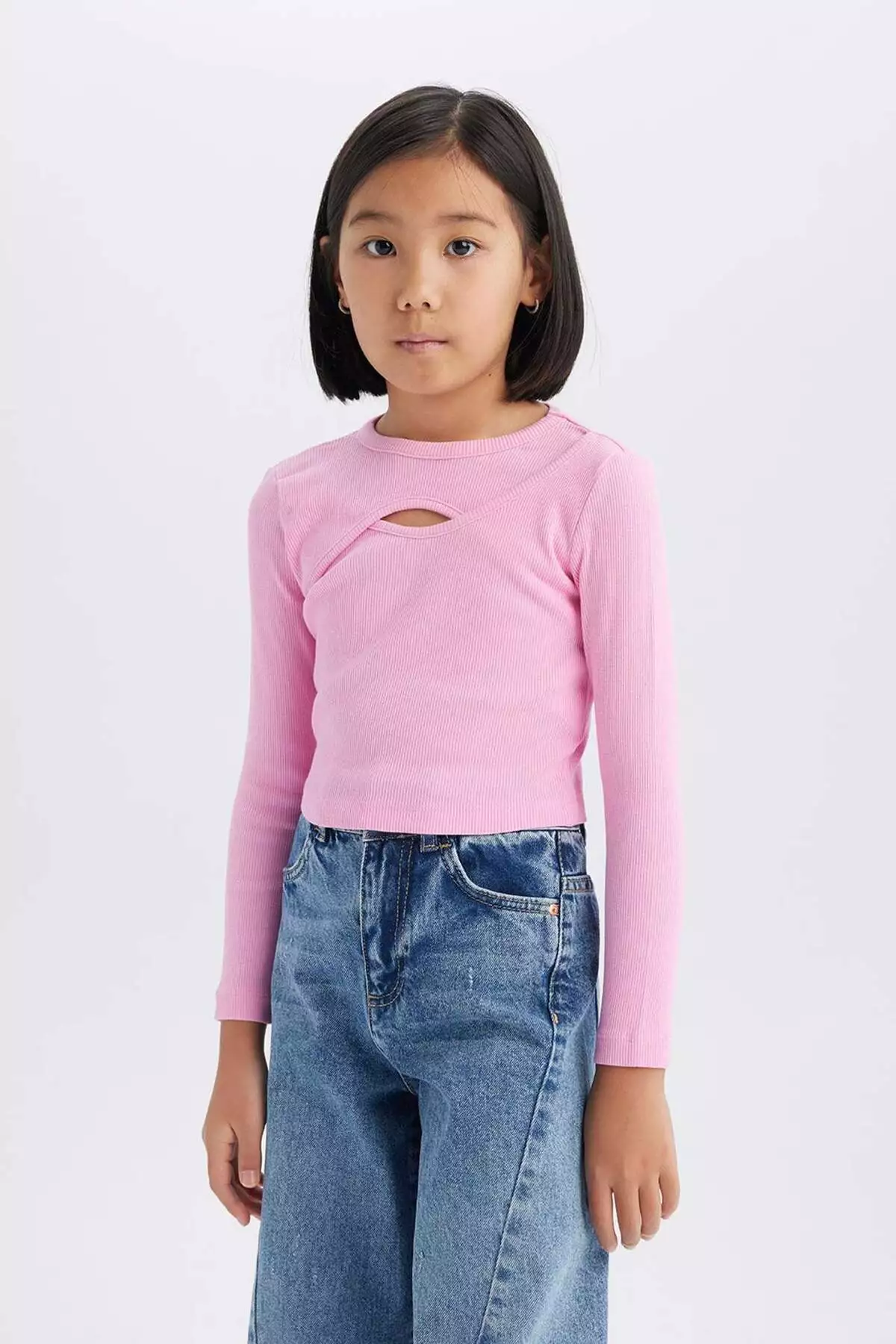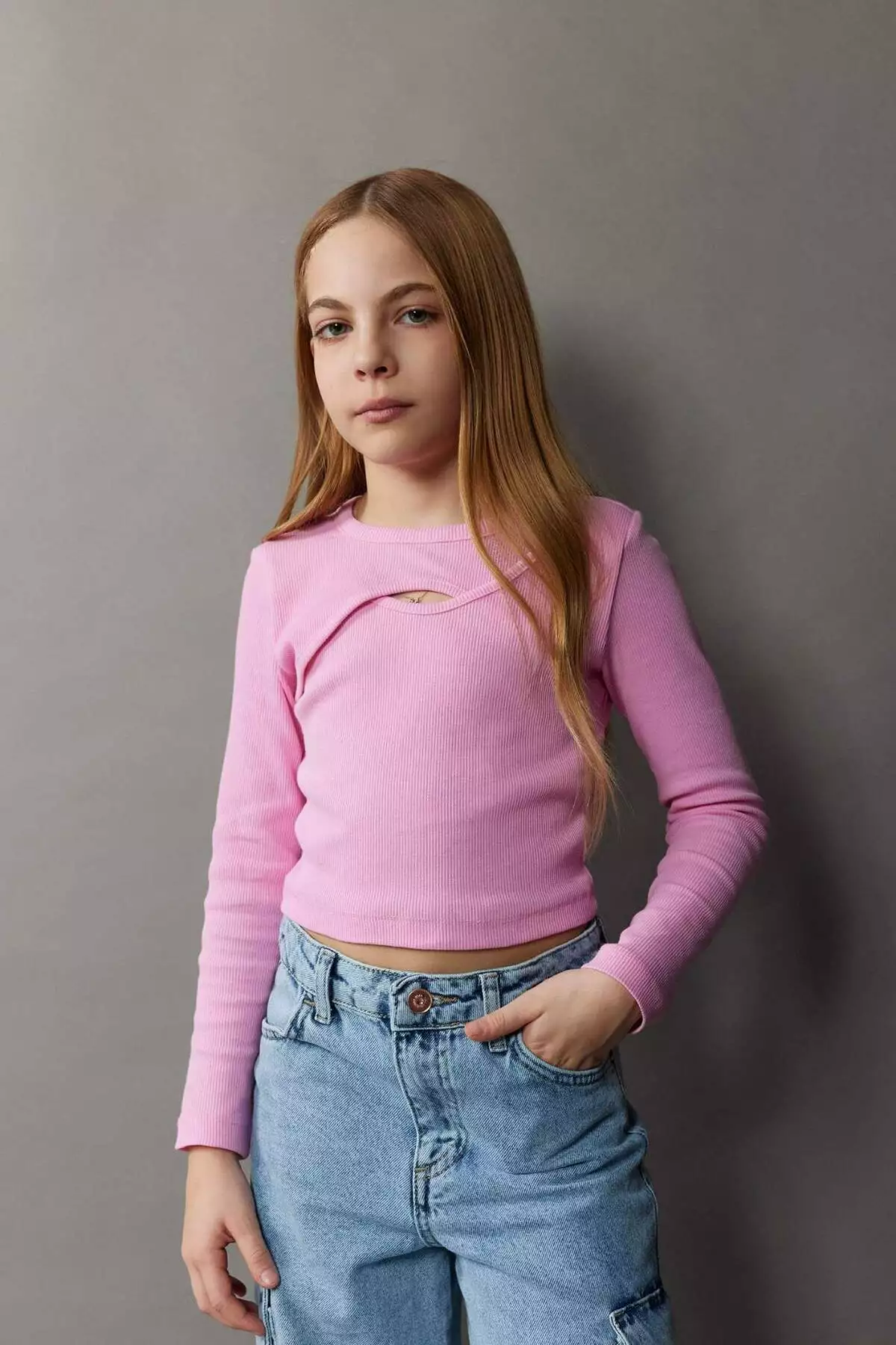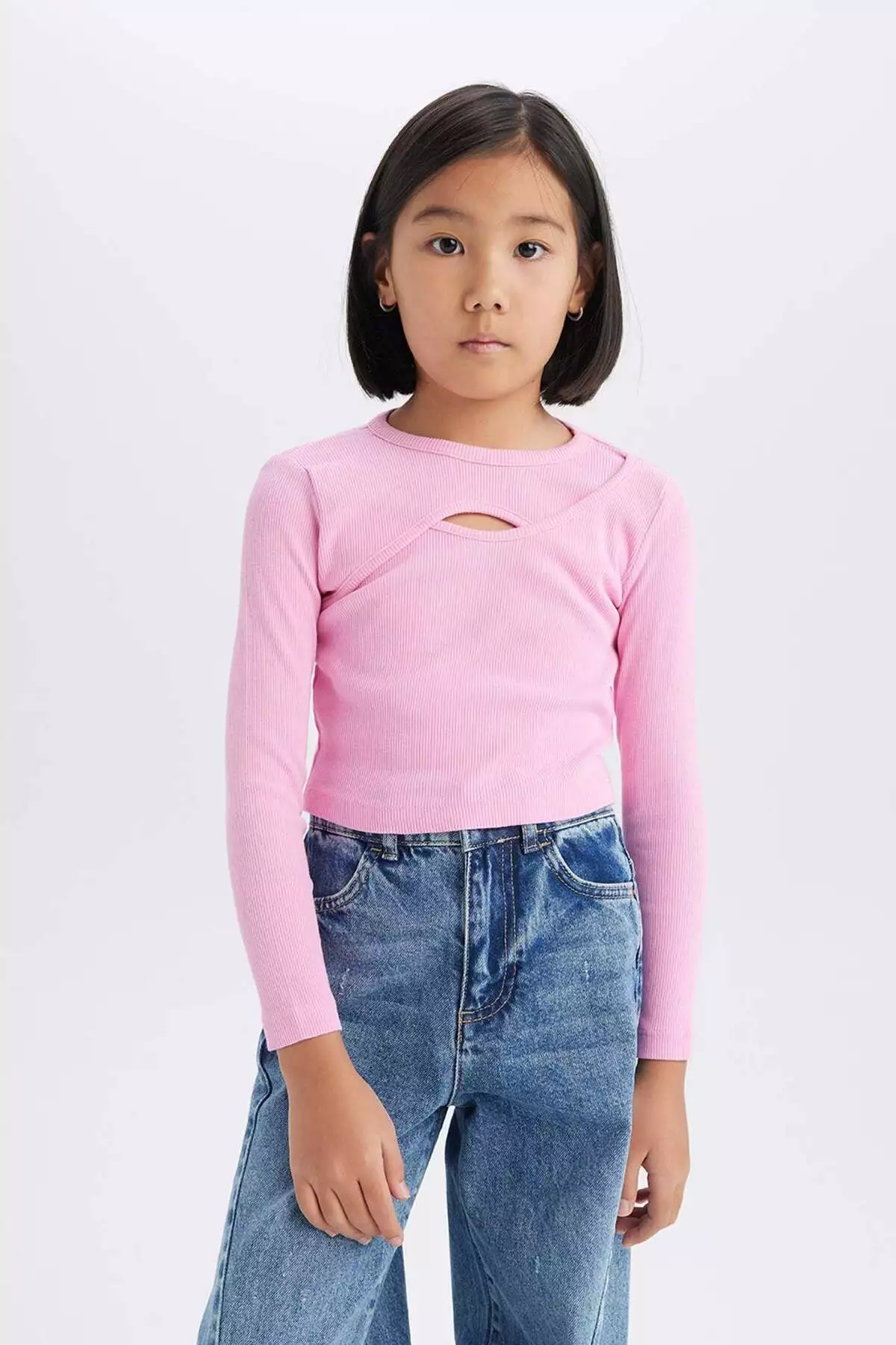تی شرت آستین بلند کشی یقه دوچرخهای برای دختران کودک E0463A825SP برند Defacto